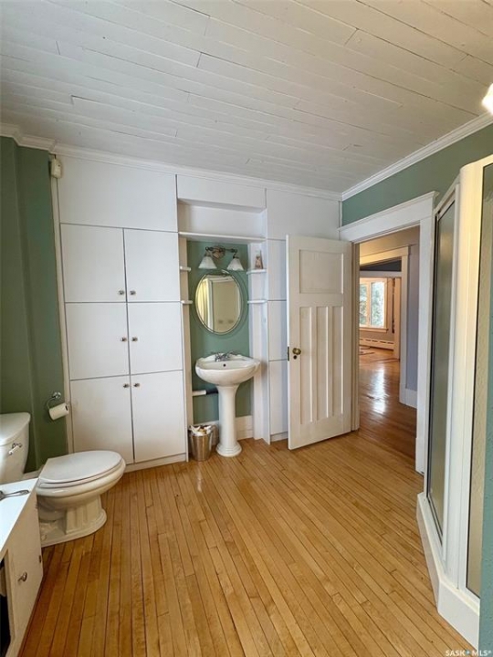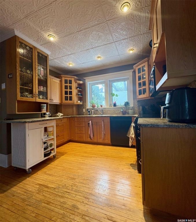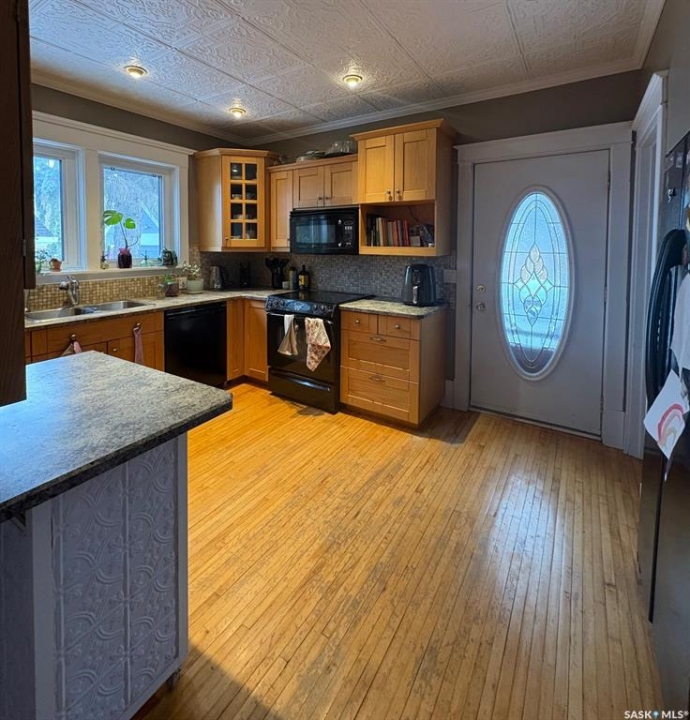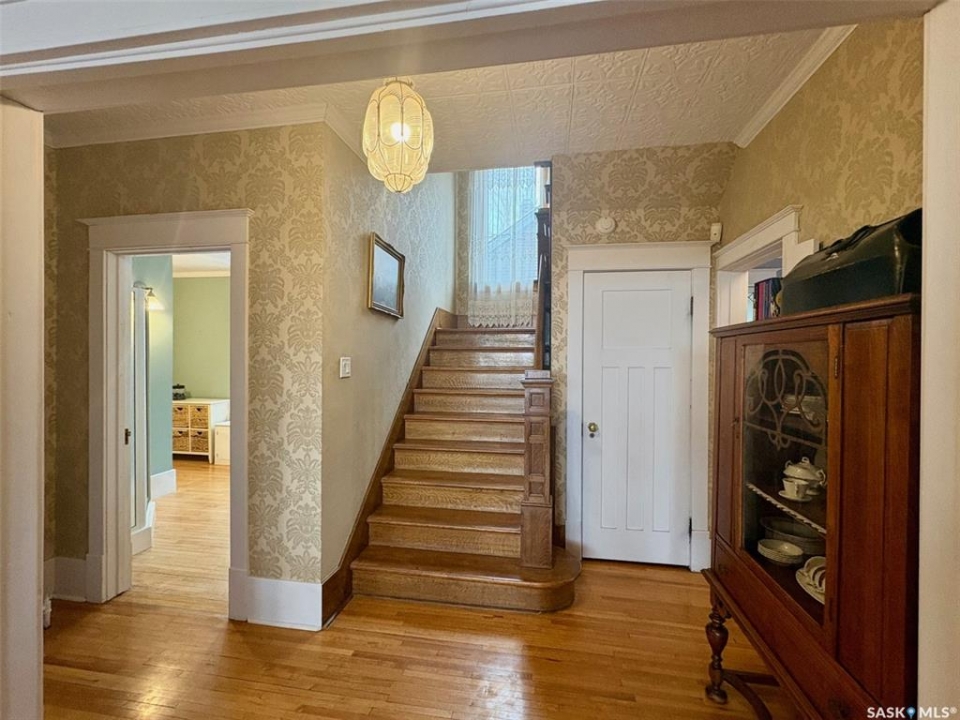One-of-a-Kind Character Home in Yorkton, Saskatchewan. Located on historic Third Avenue North, this stunning character home is overflowing with curb appeal and timeless charm. The home showcases beautiful original details throughout, including leaded glass windows, hardwood flooring, original trim, vintage doors. These classic features are thoughtfully blended with modern upgrades to kitchen & bathrooms. Set on a large newly fenced lot, the property offers both privacy and space. The welcoming entrance features a natural gas fireplace & leaded windows with natural light. A spacious, separate living room connects to dining room through elegant French doors, creating a perfect space for entertaining. The updated kitchen complements the home's character while offering ample counter space, cabinetry, pantry, and direct access to back deck. Main floor washroom has been updated and includes a renovated laundry area. A solid oak staircase filled with natural light leads to the second level to an updated 4-piece bathroom, three large bedrooms, each featuring large windows for natural light and walk-in closets. Additional features include European chandeliers, exposed beamed ceilings, crystal door knobs and many unique architectural details that must be seen to be appreciated. Basement level offers even more possibilities. It has a newly updated interior entrance from the main level as well as separate private exterior entrance, making it ideal for extended family or potential revenue generation. Basement also includes a large family room with space for a kitchen/dining area, living room area, spacious bedroom, an updated 4-piece bathroom and utility/storage room. The oversized lot also boasts a heated and insulated double garage, a single detached garage, and a newly fenced back yard, providing great privacy with deck and fire pit to enjoy outdoors . Truly one-of-a-kind property blends historic charm with modern comfort and offers exceptional space both inside and out.