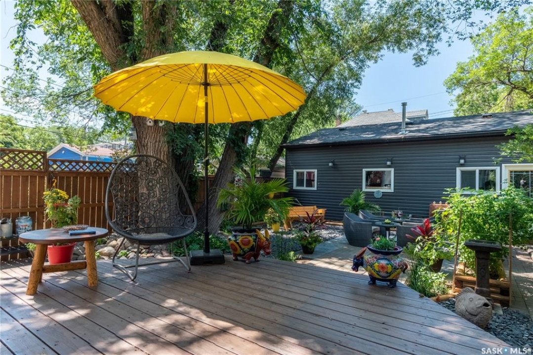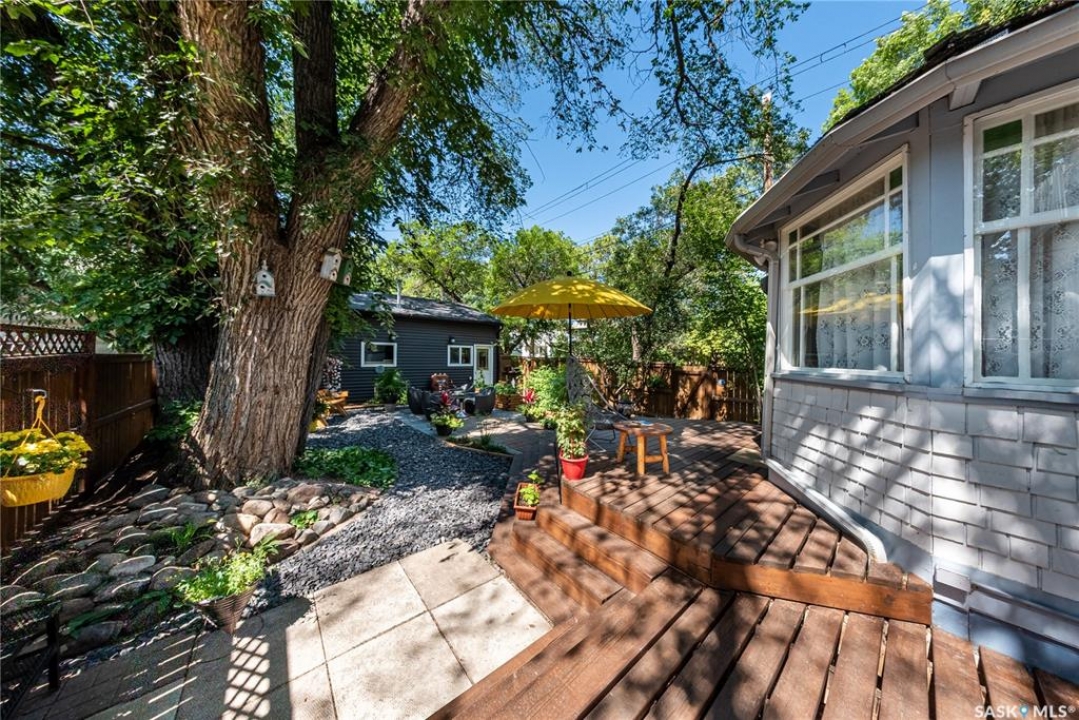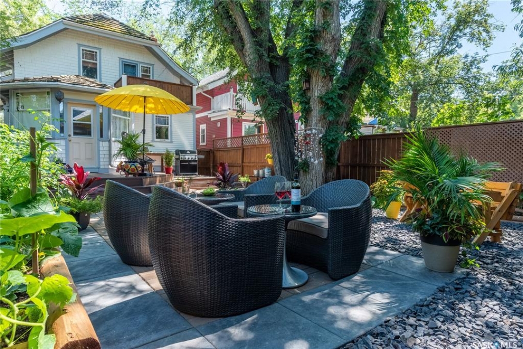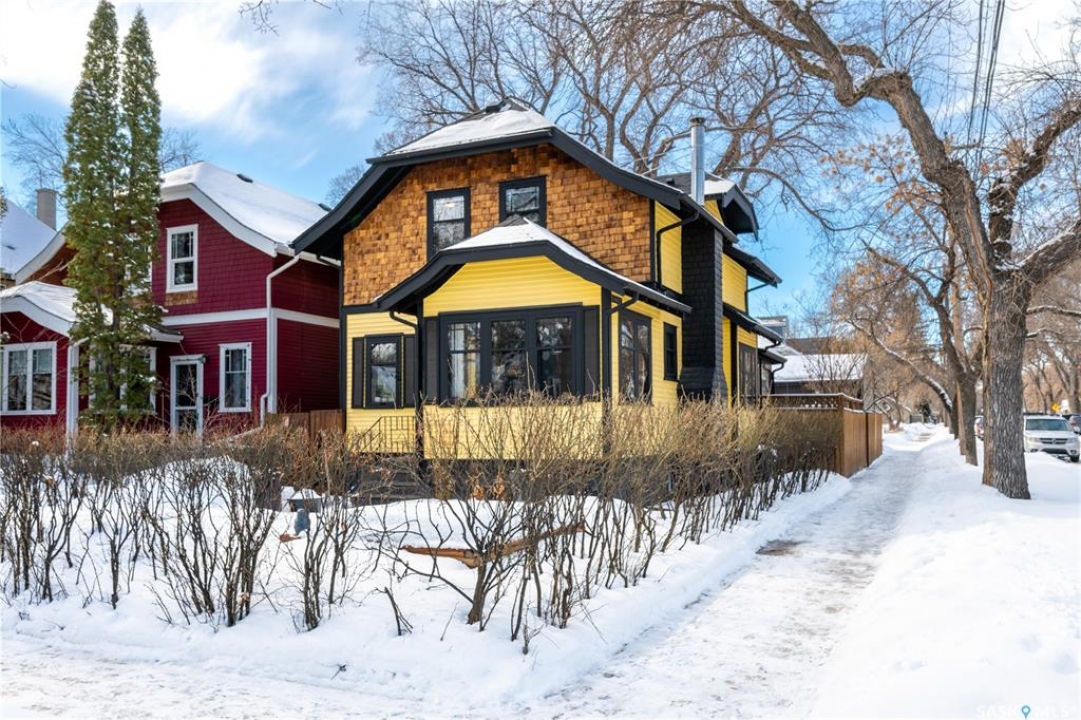 Perfectly positioned in the heart of Nutana, just steps from the riverbank and the vibrant energy of Broadway Avenue, this beautifully preserved character home blends timeless charm with thoughtful modern upgrades. Situated on a sun-drenched corner lot, the home is surrounded by windows that flood the interior with natural light throughout the day, creating a warm and inviting atmosphere rarely found in homes of this era. Offering 1,503 sq. ft. of living space, the residence showcases the craftsmanship and character that make Nutana homes so coveted. Original hardwood floors run throughout much of the home and remain in excellent condition, complementing the classic architectural details and elegant proportions of the rooms. The living room centers around a charming fireplace framed by custom-built bookshelves, creating a refined yet comfortable space for everyday living or entertaining. The kitchen has been thoughtfully refreshed while maintaining its character, featuring refinished cabinetry, new tile flooring (2022), and updated appliances (2021) providing a beautiful blend of classic design and modern function. Numerous mechanical and exterior improvements provide peace of mind for years to come, including a new high-efficiency furnace (2026), air conditioning (2022), new roof (2023), and exterior paint (2023). The home is also equipped with a 200-amp electrical panel, supporting modern living. A rare highlight for the neighbourhood is the oversized garage constructed in 2021, measuring 29'6” x 23'. Designed with both practicality and versatility in mind, it offers space for two vehicles along with extensive storage, mezzanine loft storage, a gas heater, and a dedicated 100-amp electrical panel, ideal for hobbyists, collectors, or those needing extra workspace. The 4,197 sq. ft. corner lot has been beautifully landscaped, creating charming outdoor spaces that enhance the home's curb appeal while providing inviting areas to relax and entertain.