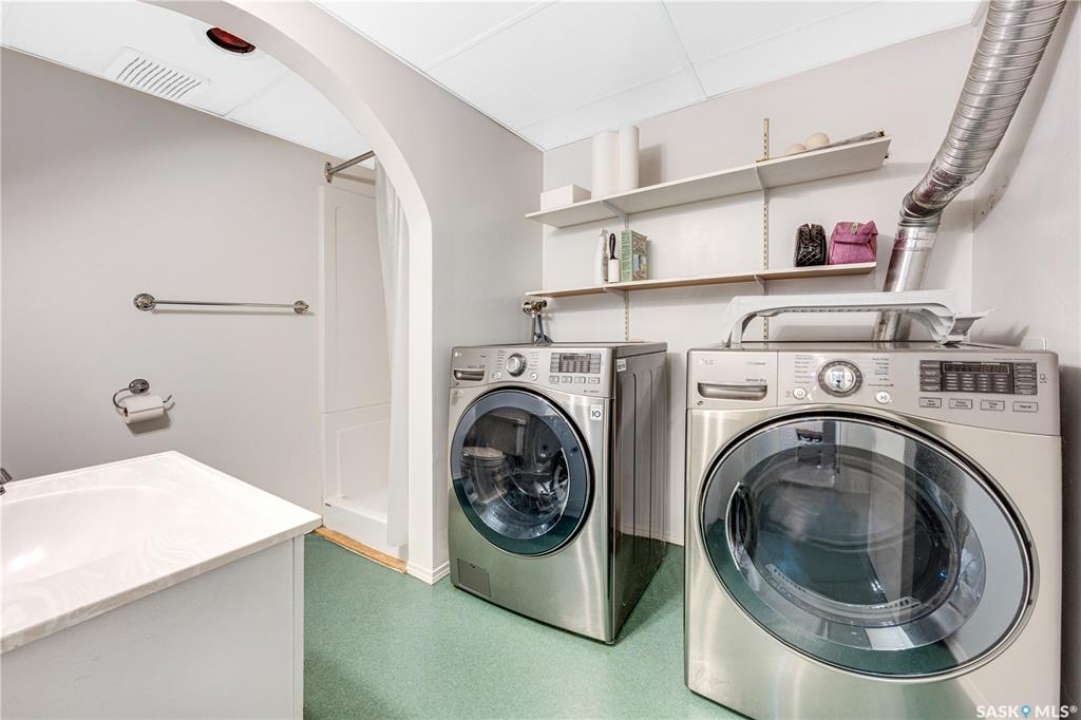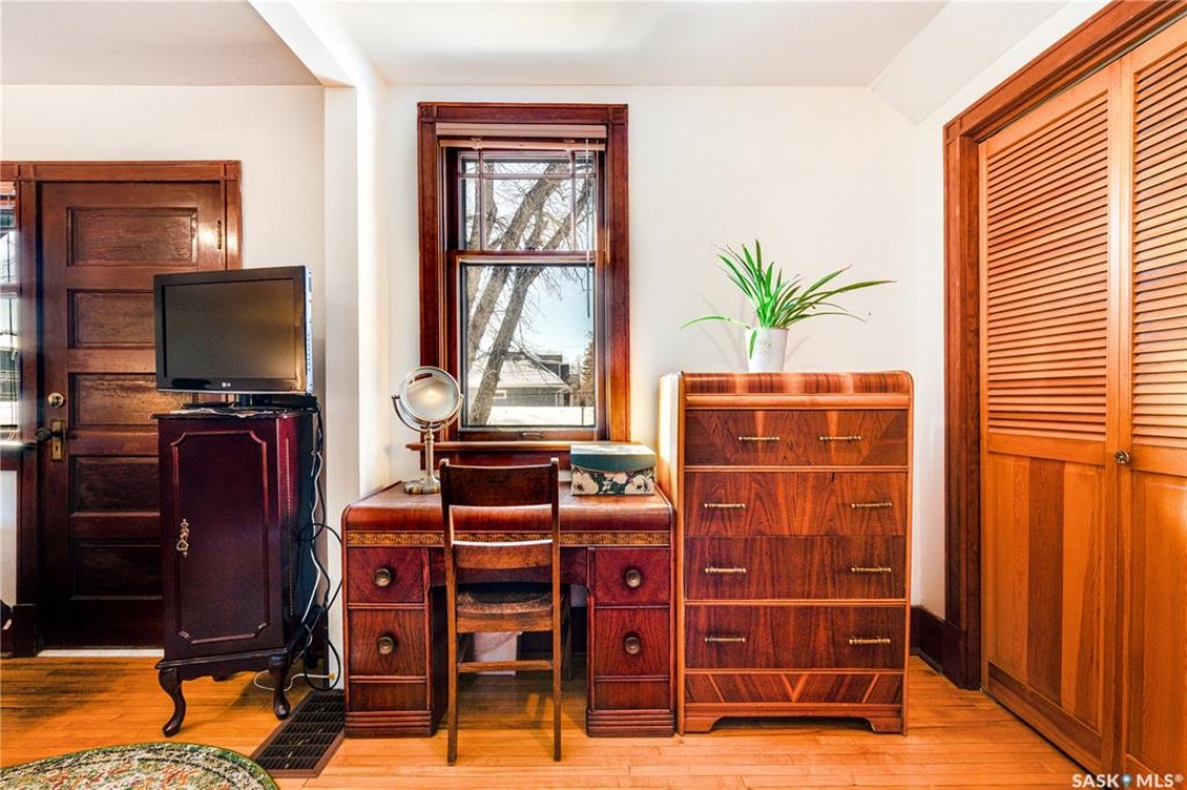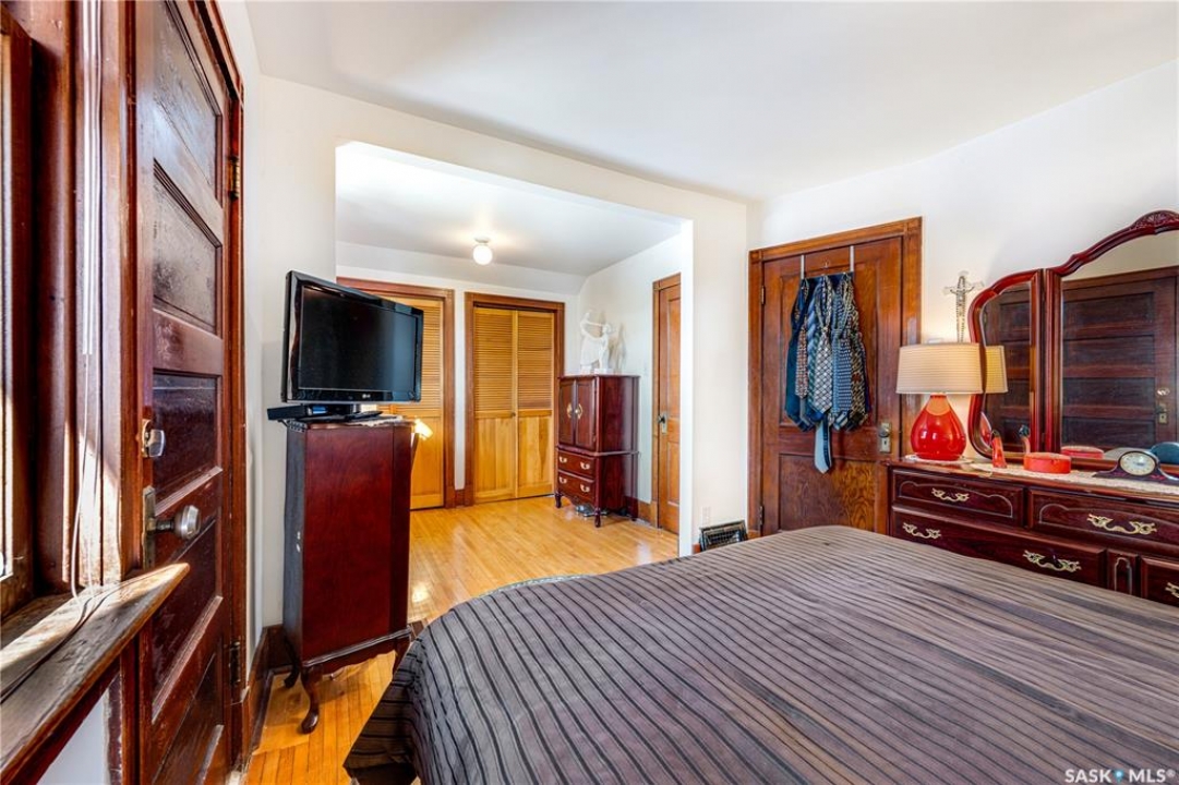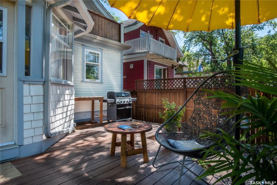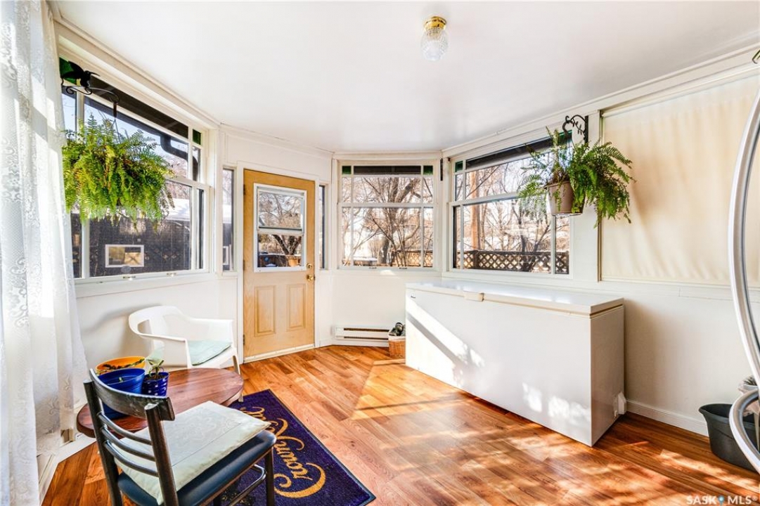 Perfectly positioned in the heart of Nutana, just steps from the riverbank and the vibrant energy of Broadway Avenue, this beautifully preserved character home blends timeless charm with thoughtful modern upgrades. Situated on a sun-drenched corner lot, the home is surrounded by windows that flood the interior with natural light throughout the day, creating a warm and inviting atmosphere rarely found in homes of this era. Offering 1,503 sq. ft. of living space, the residence showcases the craftsmanship and character that make Nutana homes so coveted. Original hardwood floors run throughout much of the home and remain in excellent condition, complementing the classic architectural details and elegant proportions of the rooms. The living room centers around a charming fireplace framed by custom-built bookshelves, creating a refined yet comfortable space for everyday living or entertaining. The kitchen has been thoughtfully refreshed while maintaining its character, featuring refinished cabinetry, new tile flooring (2022), and updated appliances (2021) providing a beautiful blend of classic design and modern function. Numerous mechanical and exterior improvements provide peace of mind for years to come, including a new high-efficiency furnace (2026), air conditioning (2022), new roof (2023), and exterior paint (2023). The home is also equipped with a 200-amp electrical panel, supporting modern living. A rare highlight for the neighbourhood is the oversized garage constructed in 2021, measuring 29'6” x 23'. Designed with both practicality and versatility in mind, it offers space for two vehicles along with extensive storage, mezzanine loft storage, a gas heater, and a dedicated 100-amp electrical panel, ideal for hobbyists, collectors, or those needing extra workspace. The 4,197 sq. ft. corner lot has been beautifully landscaped, creating charming outdoor spaces that enhance the home's curb appeal while providing inviting areas to relax and entertain.