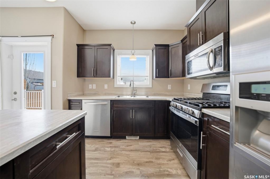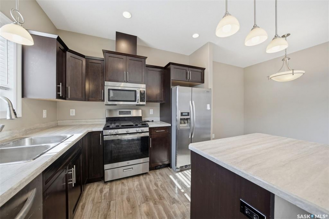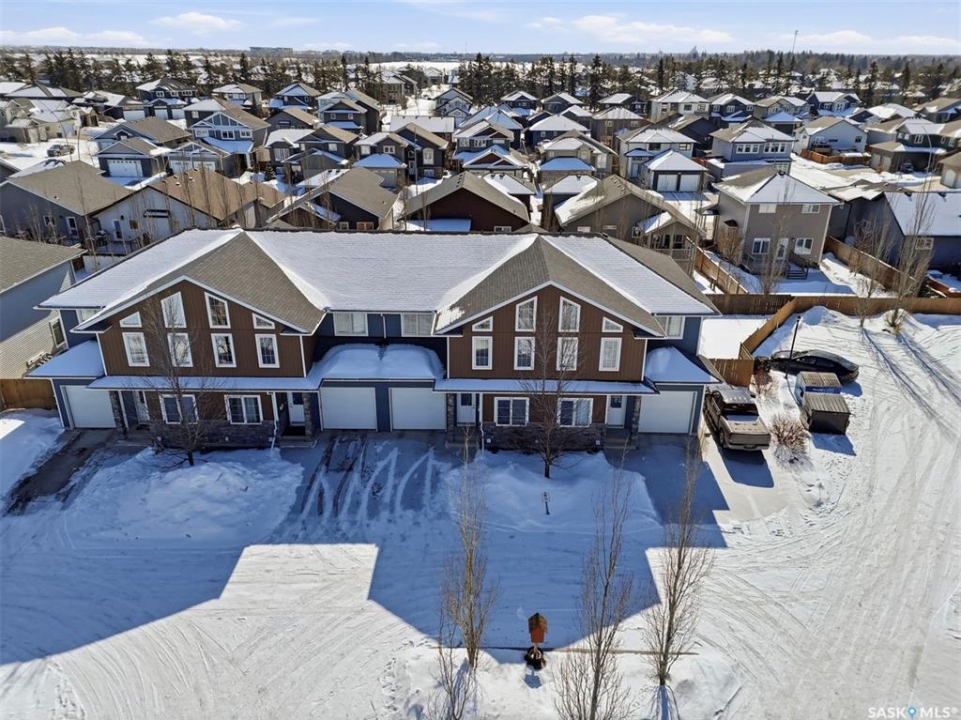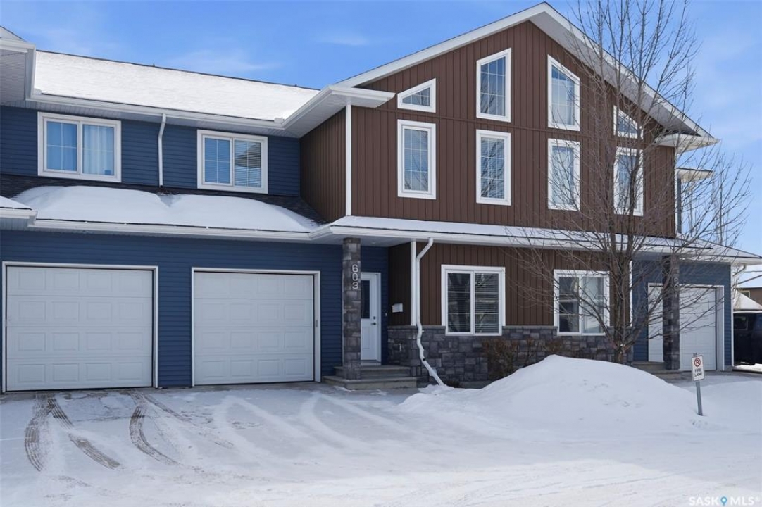 Welcome to Unit 603–315 Zary Road! This spacious 1,804 sq. ft. townhouse offers 3 bedrooms and 3 bathrooms and represents exceptional value in the highly sought-after community of Evergreen. Situated in a quiet residential neighborhood surrounded by single-family homes, this home provides the perfect blend of comfort and convenience. The main floor features 9-foot ceilings, a large office/den with laminate flooring, and a bright open-concept layout. The spacious south-facing living room is filled with natural light from the large windows, while the kitchen offers ample storage, abundant cupboard and counter space, a central island, and stainless steel appliance package including a gas stove and direct-vented range hood. On the second level, you will find a generous primary bedroom with large windows, a huge walk-in closet, and a 4-piece ensuite featuring double vanities, along with two additional bedrooms, including one with vaulted ceilings and abundant windows, which share a 3-piece bathroom. The basement is unfinished but offers excellent potential with high ceilings, large windows, and a future bathroom rough-in. Step outside to enjoy the large deck and fenced backyard, perfect for relaxing or entertaining. Additional features include an HRV system, an attached single-car garage, and a single driveway. This home is conveniently located near the University of Saskatchewan, Forestry Farm, the river, schools, banks, restaurants, shopping, walking paths, and the Swale. Shows well—book your showing today!