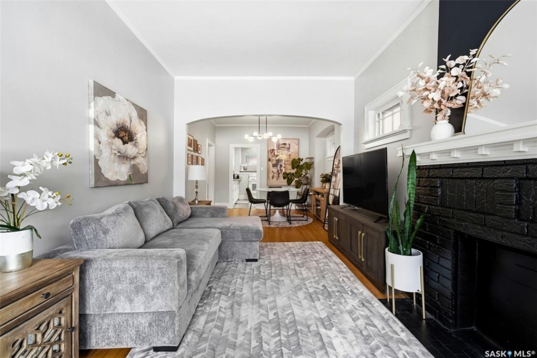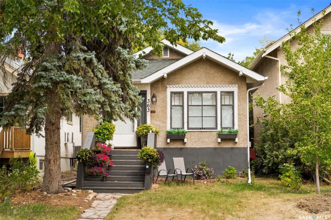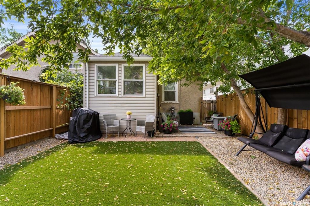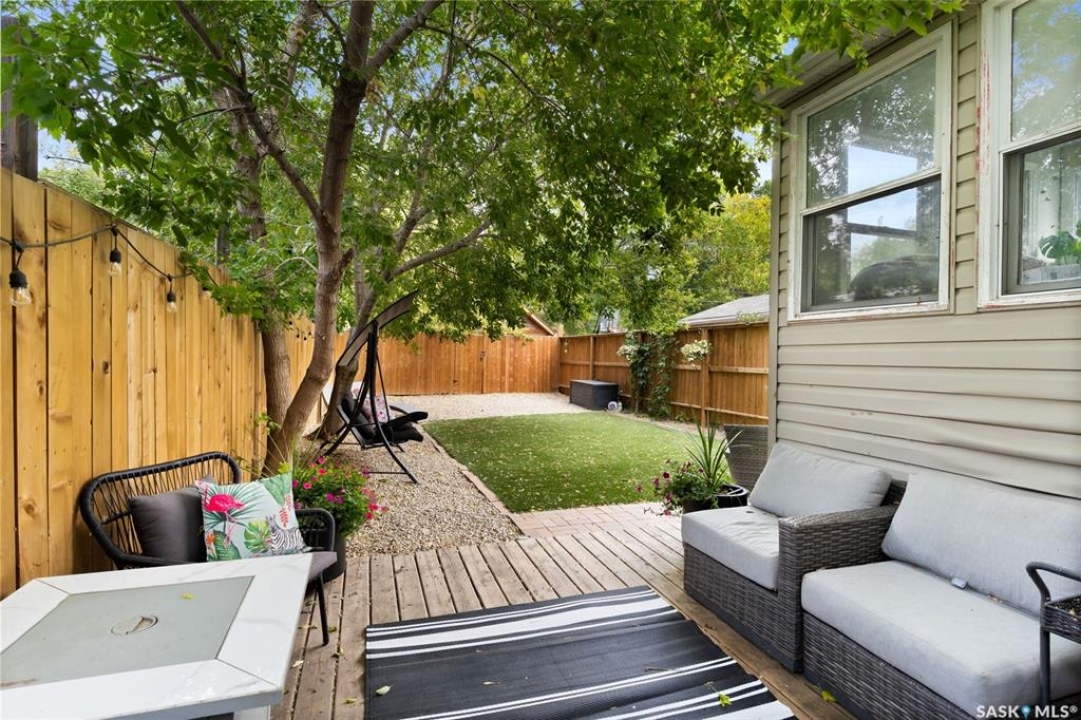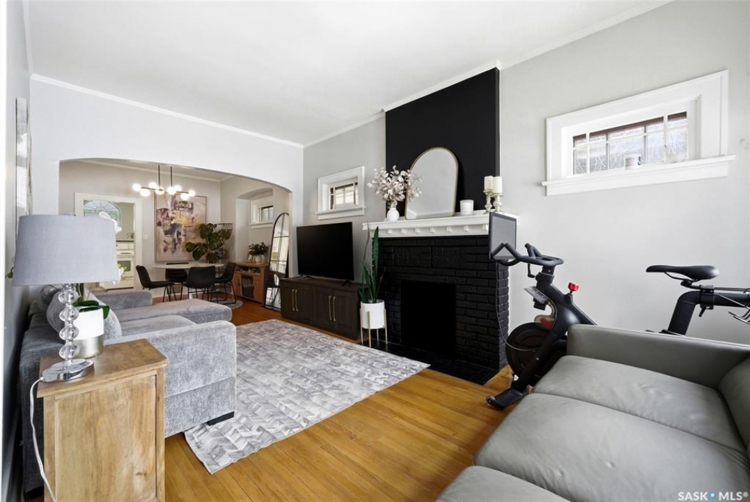 Welcome to 363 Leopold Crescent located in the heart of Regina's highly desirable Crescents neighbourhood. Known for its mature tree-lined streets, character homes, and close proximity to Wascana Park and downtown, this area offers a unique blend of charm, community, and convenience. This charming bungalow offers 967 sq ft on the main level plus a fully finished basement. The bright living room features beautiful hardwood floors, large windows that fill the space with natural light, and a striking fireplace feature wall. An elegant archway leads into the dining room creating a warm and inviting layout perfect for everyday living or entertaining. The main floor includes two bedrooms, a 4-piece bathroom, and a versatile office space ideal for working from home. The finished basement provides additional living space with a large recreation room, an additional bedroom, and flexible areas for hobbies, guests, or storage. Step outside to enjoy a beautifully designed backyard retreat featuring a private deck/patio, mature trees for natural shade, artificial turf for low-maintenance green space, and a gravel seating area perfect for relaxing or entertaining. Located close to parks, walking paths, schools, and downtown amenities, this home offers the perfect opportunity to enjoy the lifestyle that makes the Crescents one of Regina's most sought-after neighbourhoods.