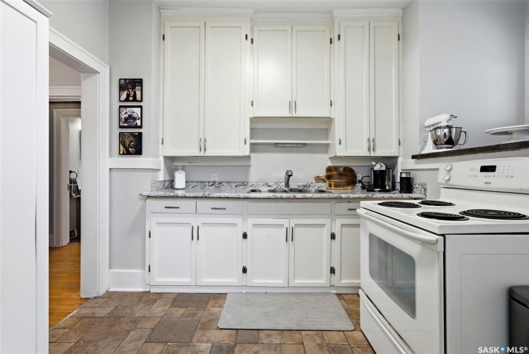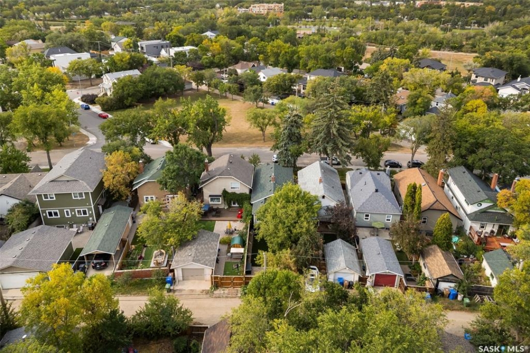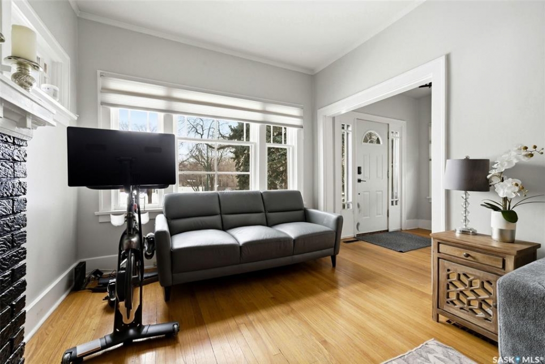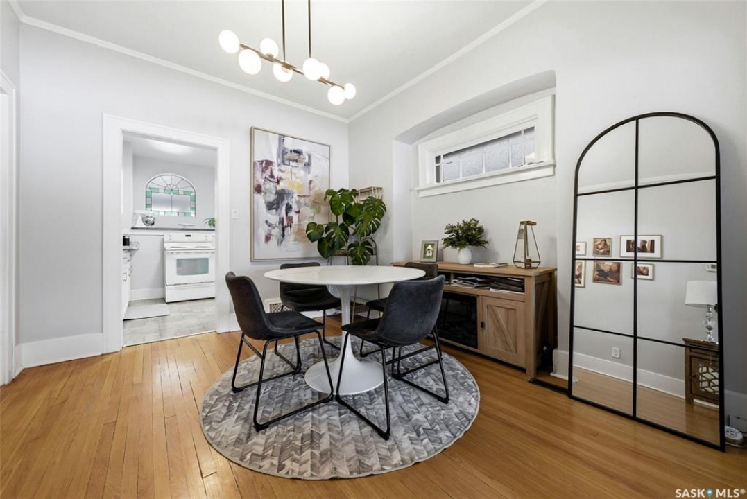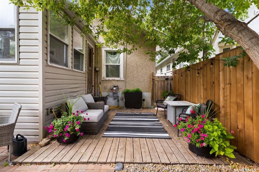 Welcome to 363 Leopold Crescent located in the heart of Regina's highly desirable Crescents neighbourhood. Known for its mature tree-lined streets, character homes, and close proximity to Wascana Park and downtown, this area offers a unique blend of charm, community, and convenience. This charming bungalow offers 967 sq ft on the main level plus a fully finished basement. The bright living room features beautiful hardwood floors, large windows that fill the space with natural light, and a striking fireplace feature wall. An elegant archway leads into the dining room creating a warm and inviting layout perfect for everyday living or entertaining. The main floor includes two bedrooms, a 4-piece bathroom, and a versatile office space ideal for working from home. The finished basement provides additional living space with a large recreation room, an additional bedroom, and flexible areas for hobbies, guests, or storage. Step outside to enjoy a beautifully designed backyard retreat featuring a private deck/patio, mature trees for natural shade, artificial turf for low-maintenance green space, and a gravel seating area perfect for relaxing or entertaining. Located close to parks, walking paths, schools, and downtown amenities, this home offers the perfect opportunity to enjoy the lifestyle that makes the Crescents one of Regina's most sought-after neighbourhoods.