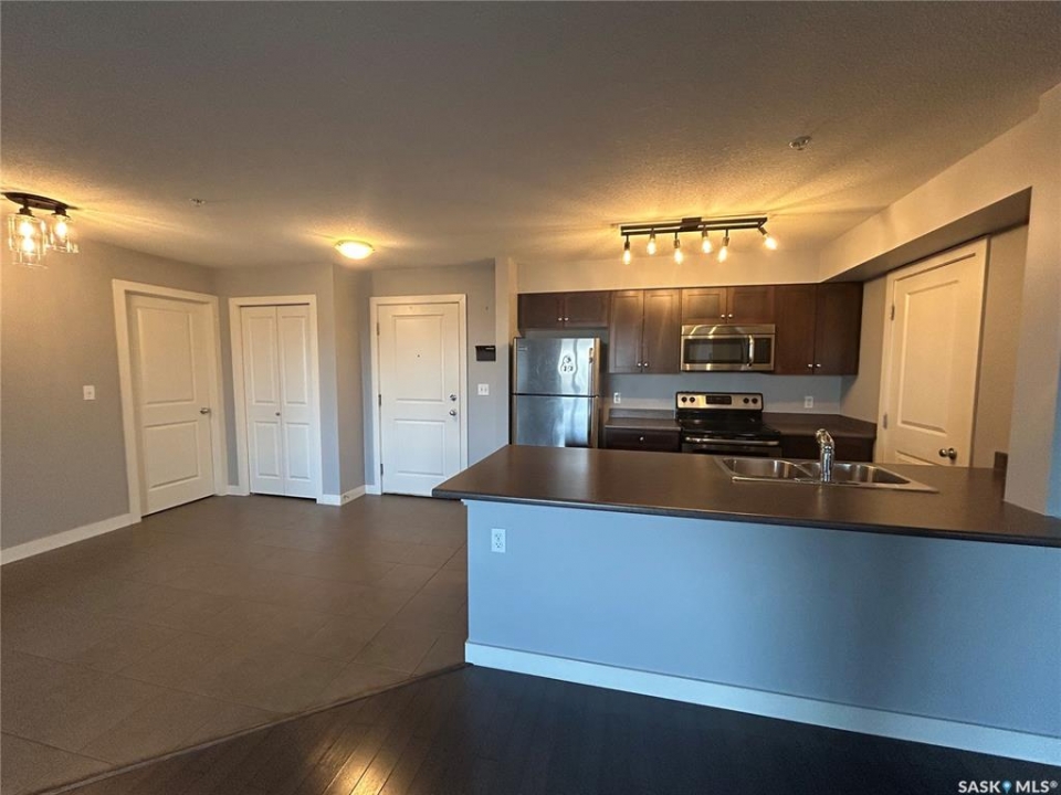 Easy condo living in this 907 sq. ft. 2 bedroom/2 bath home in Petterson Point. Kitchen features a large island and walk in pantry. On the third floor, this unit has an open view to the north. All kitchen appliances included and a stackable washer dryer in suite. One underground parking spot will keep the chill off in the winter. Conveniently located a block from shopping, restaurants and 3 blocks from K- 8 Spruce Ridge School and the Comprehensive High School. Priced to sell!