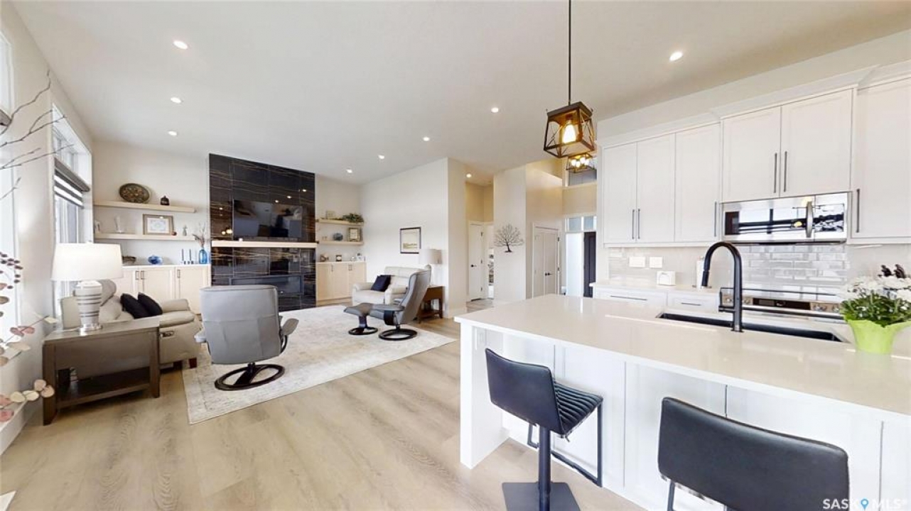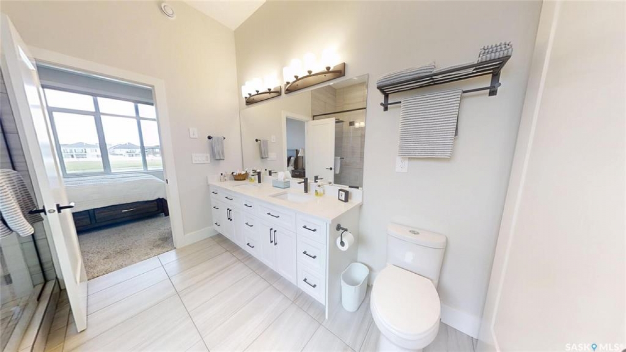 A rare opportunity to build a luxury custom home with Taj Homes on a premium south-backing lot overlooking the Legends Golf Course, located in one of Warman's most sought-after areas. Step into a grand 14' entryway that sets the tone for the upscale finishes throughout. The main floor features tall 10' ceilings and a sunlit open-concept design, anchored by a chef-inspired kitchen with custom cabinetry, quartz countertops, under-cabinet lighting, and a full stainless steel appliance package. Oversized windows frame the breathtaking golf course views in the dining and living areas, which are complete with a cozy fireplace with built in cabinetry. The luxurious primary suite offers peaceful golf course views, a spa-like ensuite with dual vanities, tiled shower, freestanding soaker tub, and direct access to a spacious walk-in closet. A second main-floor bedroom or home office is conveniently located near a 4-piece guest bath. The massive triple-car garage —primed, heated, and equipped with wall-mounted openers and tall ceilings for an optional lift install —leading into a well-designed mudroom/laundry area with tall cabinetry, quartz counters, and built-in storage. Heading downstairs, the fully developed basement offers three more spacious bedrooms, a full 4-piece bath, and a large open-concept living space featuring a wet bar with sink and a bar fridge, second fireplace with custom cabinetry, and a dedicated games area—perfect for entertaining or relaxing. Additional features include: one of the last south backing Legends Golf Course lots, Large covered Duradek deck, lighting/flooring allowance, Triple-pane windows, High-end millwork and cabinetry throughout, Energy-efficient construction and a on demand water heater. Dont miss out on this property with customization potential!! Note: Photos are from a previous build. Finishes, specs may vary. Basement is not a walkout. Estimated possession is August.