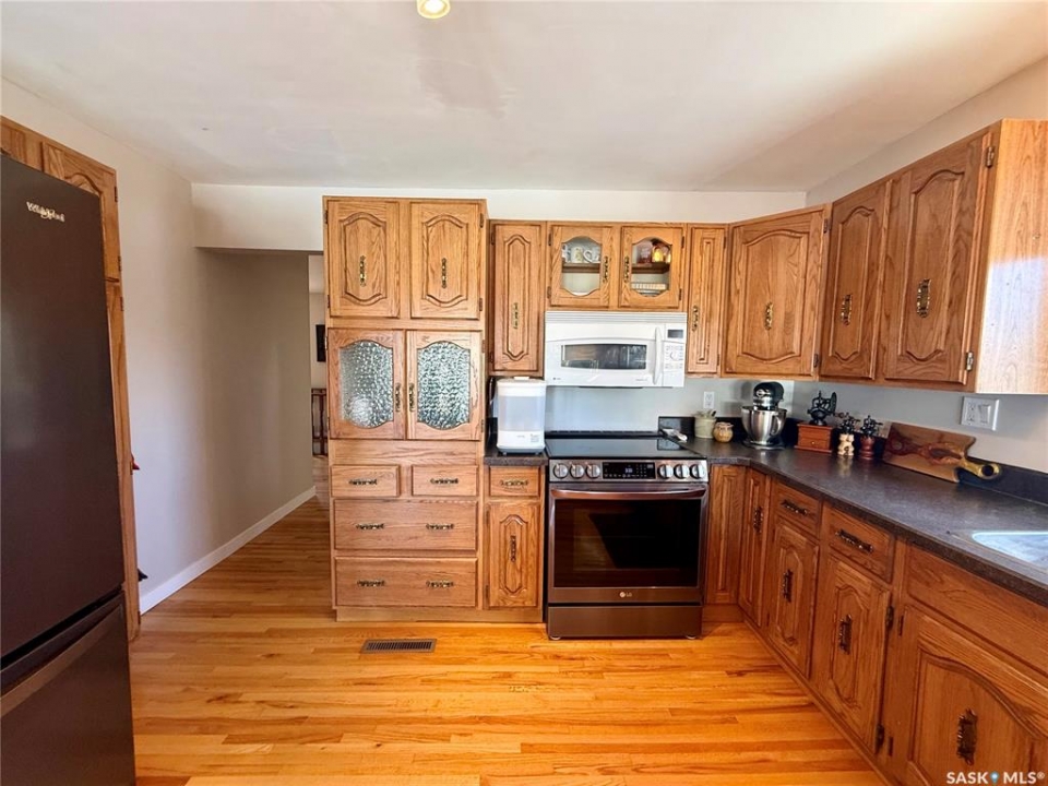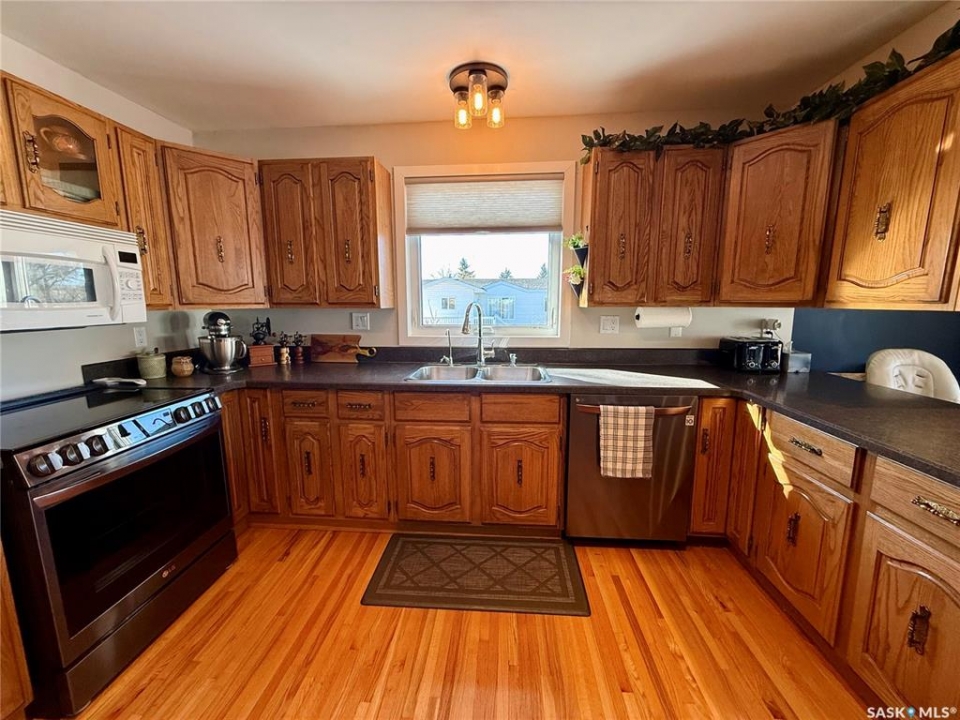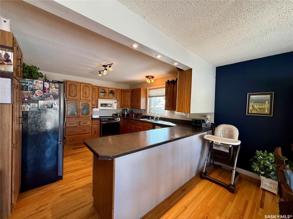 Welcome to this well-maintained 1,634 sq ft three-level split home with a 1,028 sq ft basement, offering plenty of space for the whole family. With 4 bedrooms and 3 bathrooms, numerous updates, and a large backyard, this home is perfect for comfortable family living. The front entry welcomes you into the home with access to the spacious living room on the left or the dining area to the right, which flows nicely into the kitchen. The bright dining area is filled with natural light, creating a warm and inviting space for family meals and entertaining. The kitchen offers plenty of cabinetry and counter space, making meal preparation easy and functional. Appliances have been recently updated, including the fridge (2025) and dishwasher and stove (2024). Down the hall from the kitchen you'll find a large laundry room, a 3-piece bathroom, and a convenient back entrance with a generous walk-in closet, providing excellent storage and functionality for busy households. Just a few steps down is the cozy family room, featuring a wood-burning fireplace and garden doors leading to the large deck, creating a great space for relaxing or entertaining. This level also provides direct access to the attached garage. Back on the main level, the living room is bright and spacious and is located near the updated 4-piece bathroom. Upstairs you'll find 3 comfortable bedrooms, perfect for family members or guests. The basement adds even more living space with a large family room, one bedroom, office, 2-piece bathroom, storage room, cold room, and utility area. This home has seen several important updates over the years including: Shingles (2018), Water heater and water softener (2023), Deck (2019) with storage underneath, most windows updated, exterior doors updated, main bath updated, and most light fixtures updated. Outside, you'll appreciate the large backyard, perfect for kids, pets, gardening, or summer entertaining. Move in ready home offers plenty of living space.