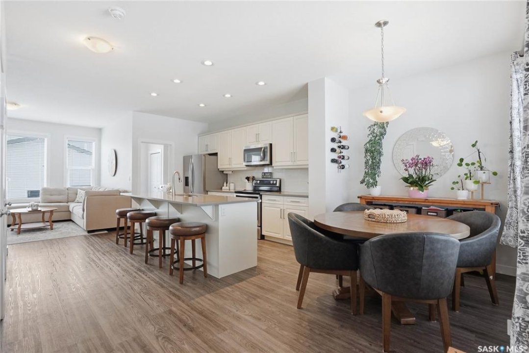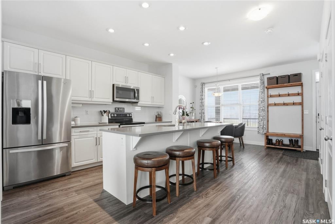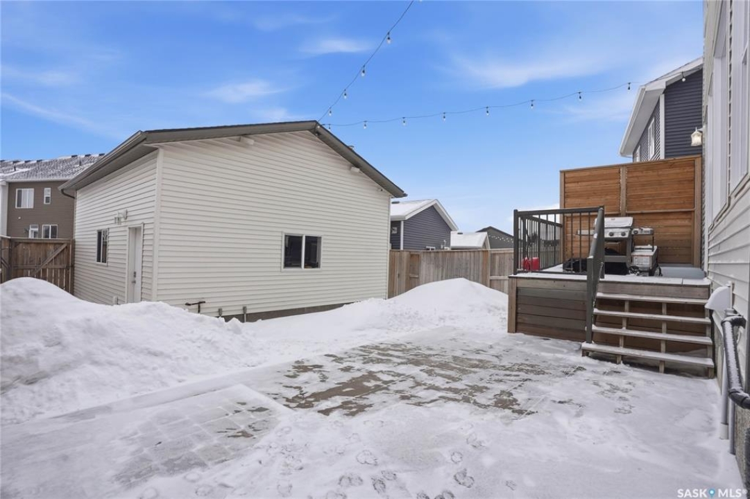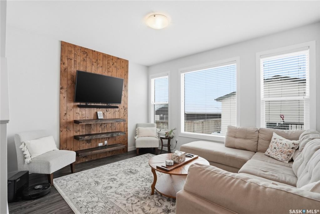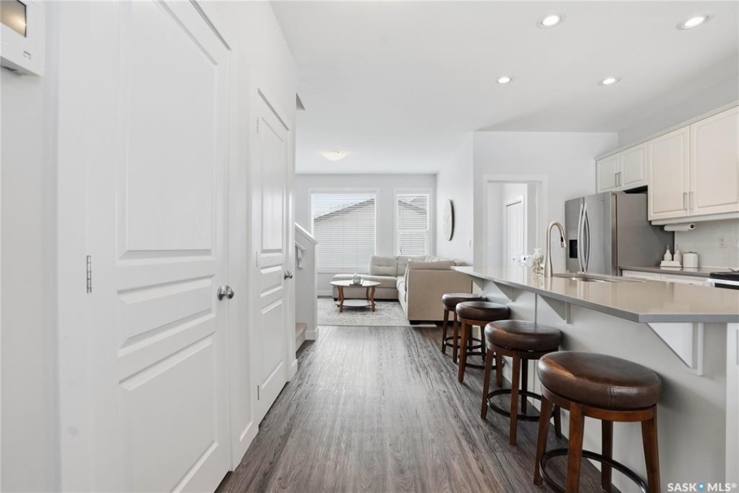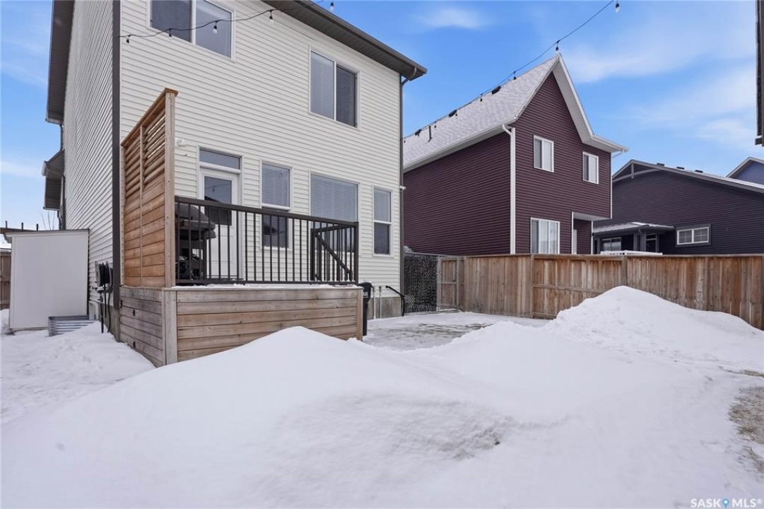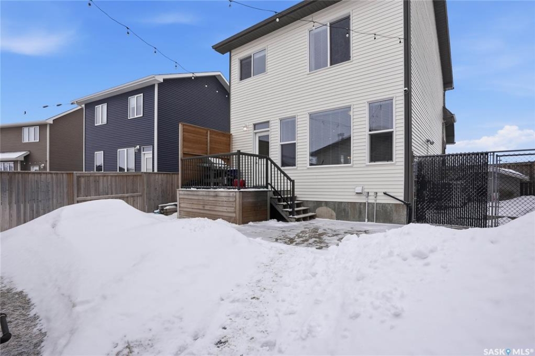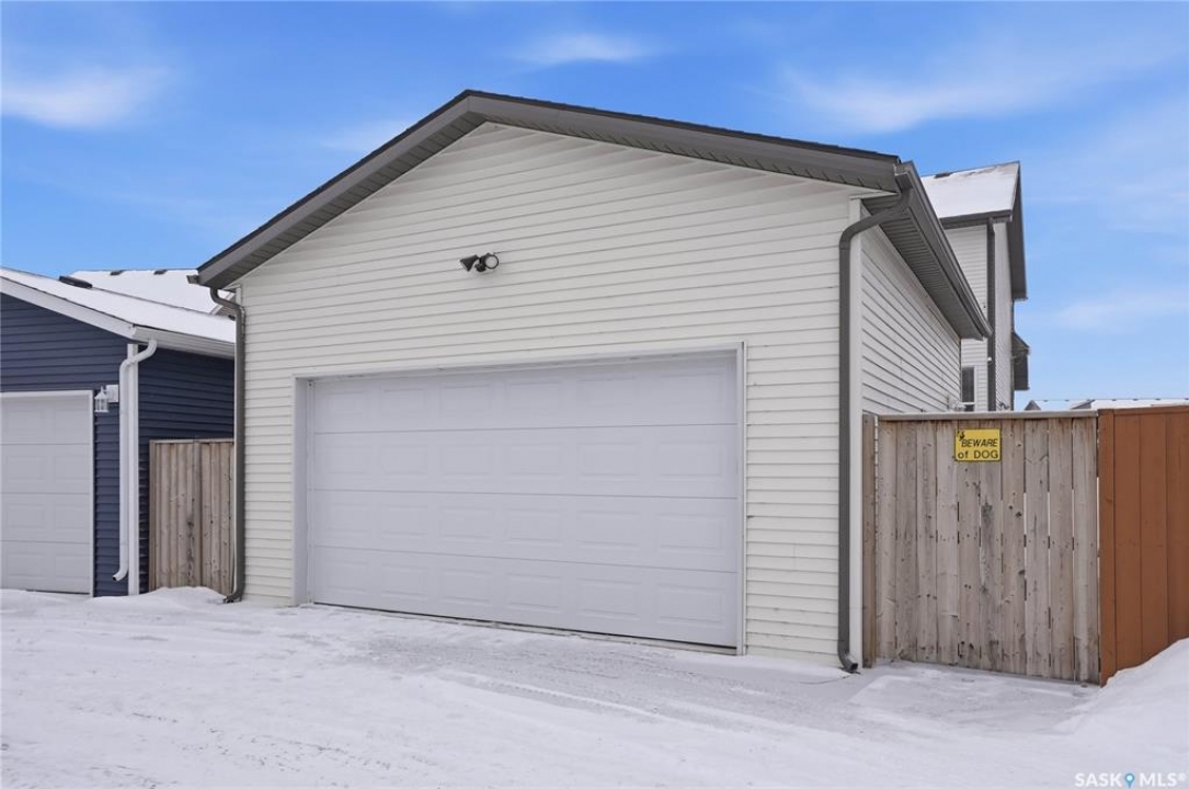 Brighton homes are great - but finding one facing green space with a garage big enough for a full-size truck? That's rare. Welcome to this impeccably maintained 1,501 sq. ft. two-storey in one of Saskatoon's most popular neighbourhoods. The home offers a bright and functional layout with 9 ft ceilings on the main floor, vinyl plank flooring, and a modern kitchen featuring pot lights, a generous island with breakfast bar, and a full appliance package. The spacious primary suite includes a walk-in closet and a luxurious ensuite with soaker tub, separate glass shower, and double sinks. A practical mudroom with main floor laundry adds everyday convenience. The professionally developed basement features soundproofing insulation and offers excellent additional living space with a comfortable family room, an extra bedroom, and a tiled 3-piece bathroom. The home shows in impeccable condition throughout. Outside, the yard is already landscaped and includes extensive stamped concrete work in the backyard (currently under the snow), creating a fantastic space for entertaining in the warmer months. Along the side of the house is a large additional area currently used as a dog run, offering great flexibility for pet owners or extra storage space. The oversized 22' x 26' heated garage is a standout feature with 12' ceilings and an 8' overhead door, making it ideal for larger vehicles and capable of fitting a 3/4-ton truck - something that's surprisingly hard to find in many newer homes today. Located close to parks, walking paths, and Brighton's growing amenities, this home offers the perfect balance of location, space, and thoughtful upgrades.