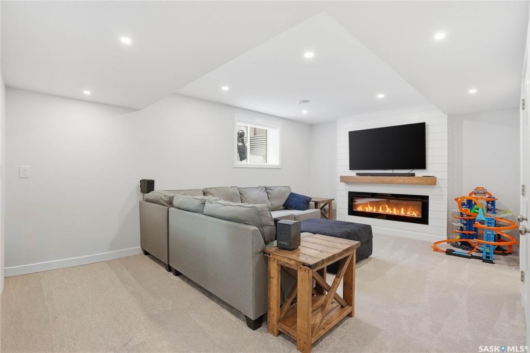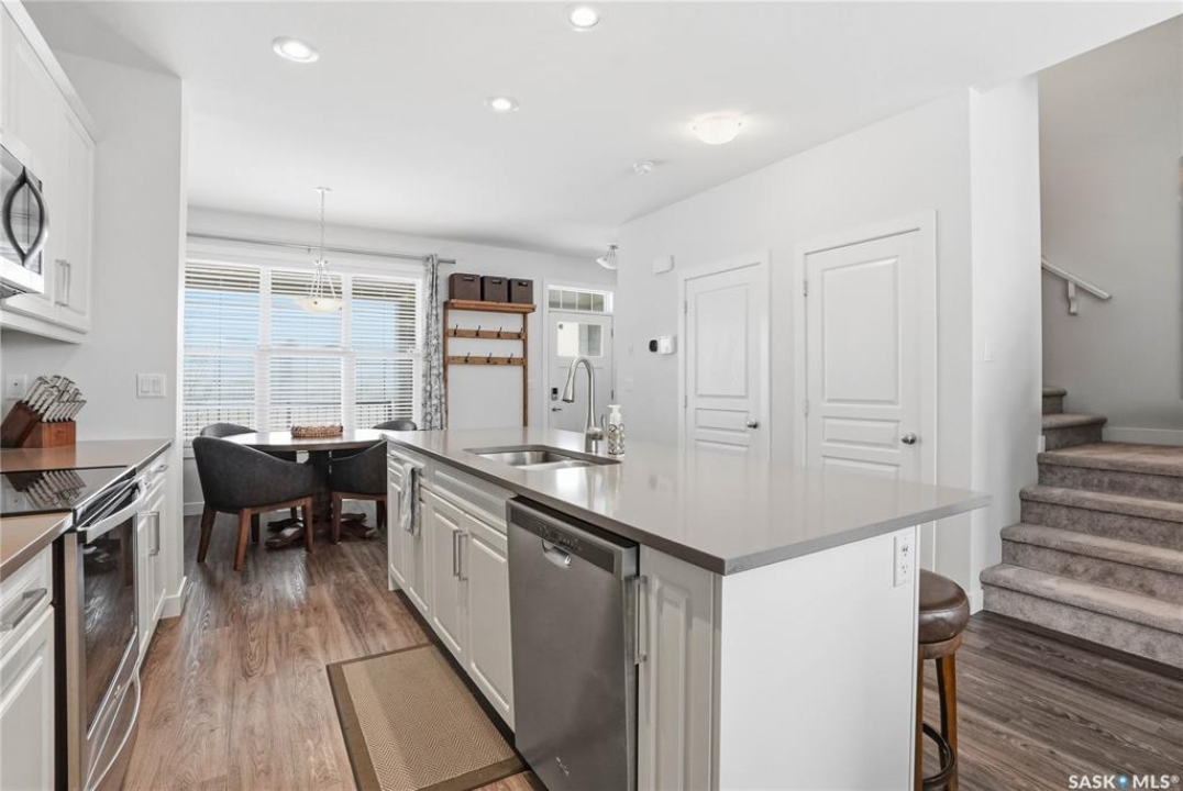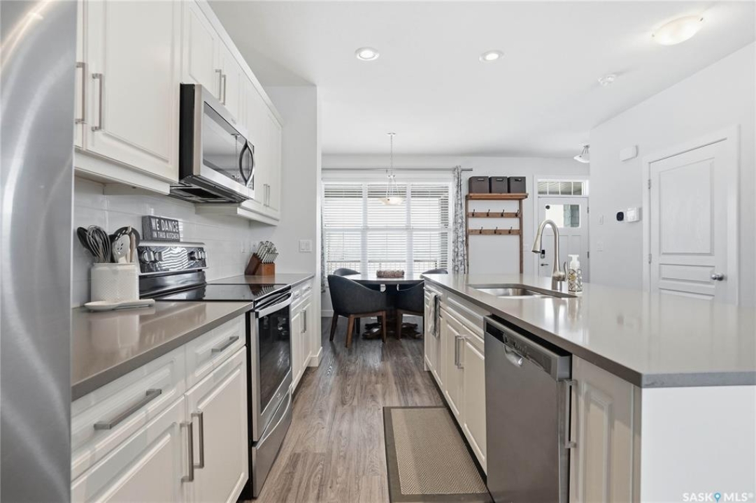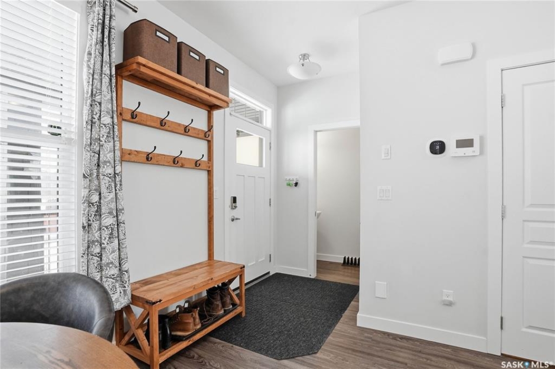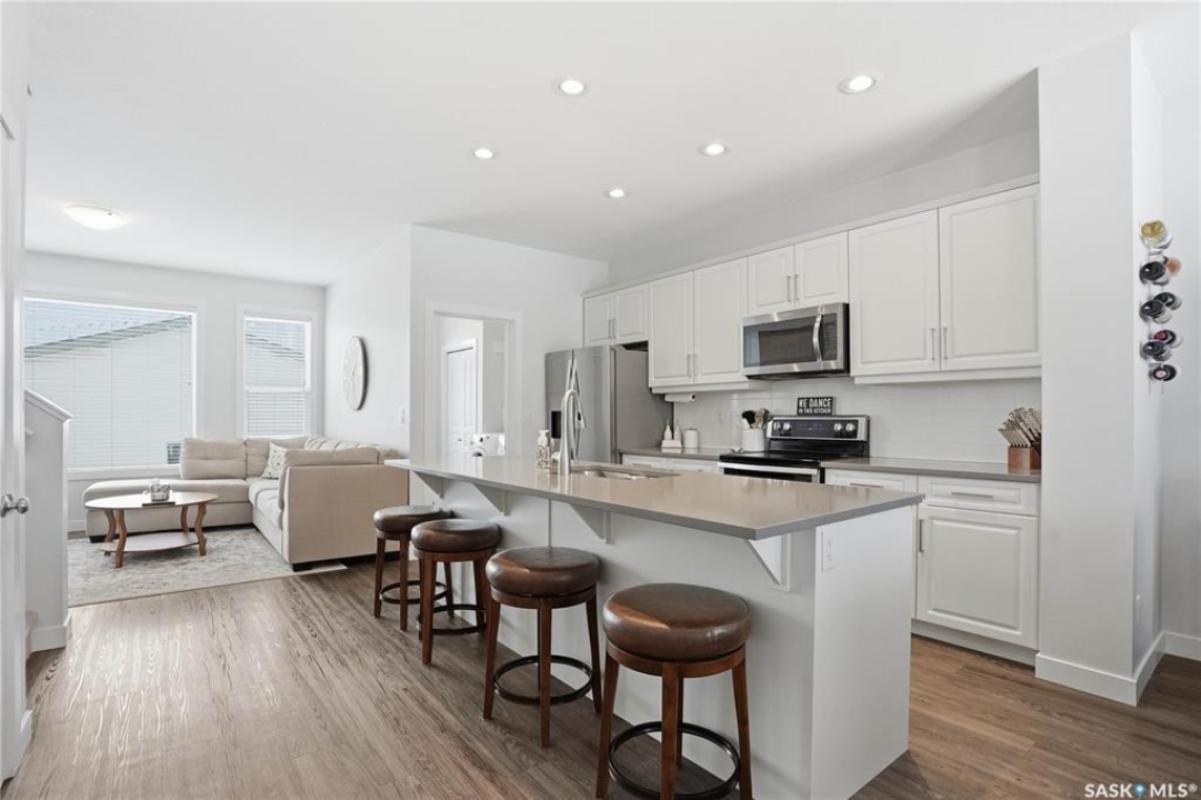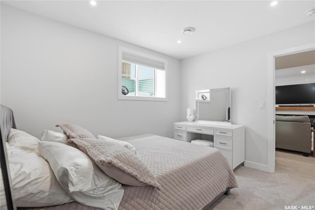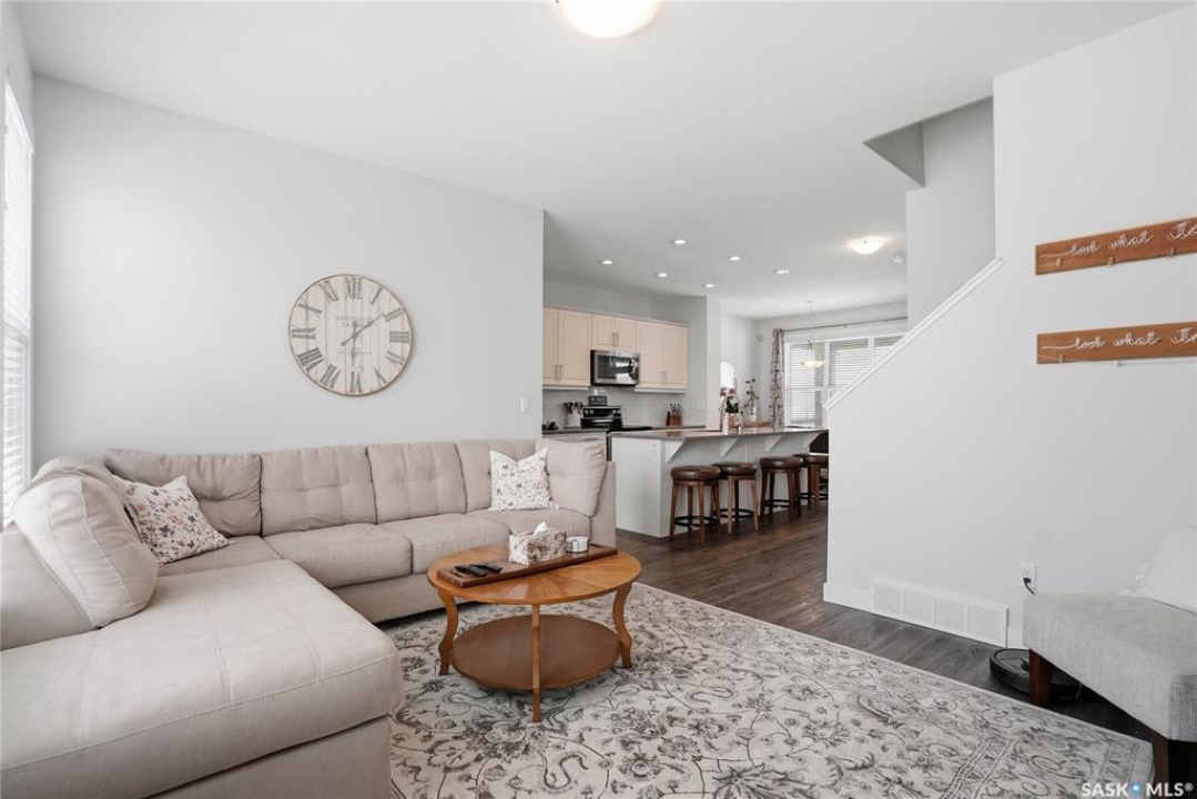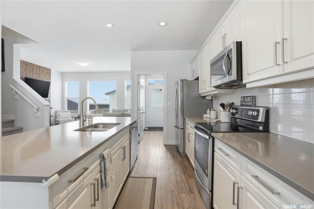 Brighton homes are great - but finding one facing green space with a garage big enough for a full-size truck? That's rare. Welcome to this impeccably maintained 1,501 sq. ft. two-storey in one of Saskatoon's most popular neighbourhoods. The home offers a bright and functional layout with 9 ft ceilings on the main floor, vinyl plank flooring, and a modern kitchen featuring pot lights, a generous island with breakfast bar, and a full appliance package. The spacious primary suite includes a walk-in closet and a luxurious ensuite with soaker tub, separate glass shower, and double sinks. A practical mudroom with main floor laundry adds everyday convenience. The professionally developed basement features soundproofing insulation and offers excellent additional living space with a comfortable family room, an extra bedroom, and a tiled 3-piece bathroom. The home shows in impeccable condition throughout. Outside, the yard is already landscaped and includes extensive stamped concrete work in the backyard (currently under the snow), creating a fantastic space for entertaining in the warmer months. Along the side of the house is a large additional area currently used as a dog run, offering great flexibility for pet owners or extra storage space. The oversized 22' x 26' heated garage is a standout feature with 12' ceilings and an 8' overhead door, making it ideal for larger vehicles and capable of fitting a 3/4-ton truck - something that's surprisingly hard to find in many newer homes today. Located close to parks, walking paths, and Brighton's growing amenities, this home offers the perfect balance of location, space, and thoughtful upgrades.