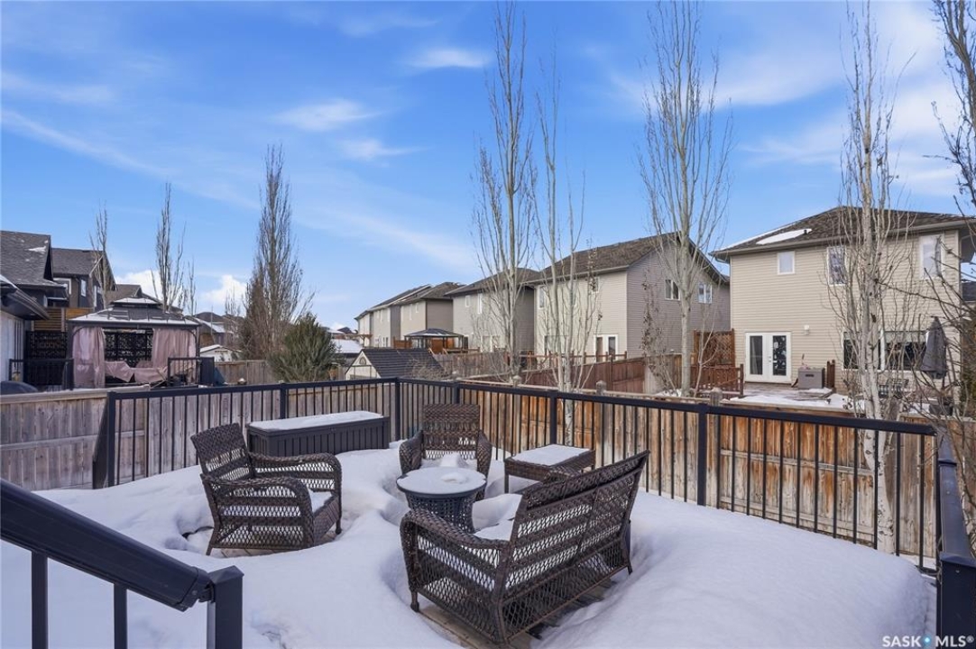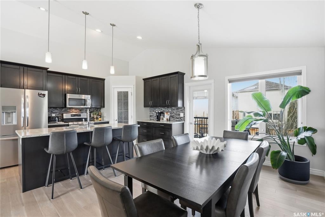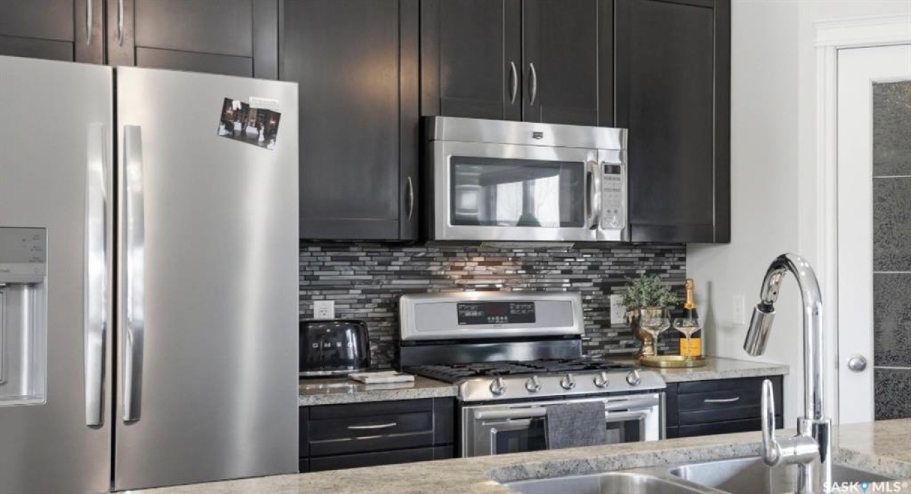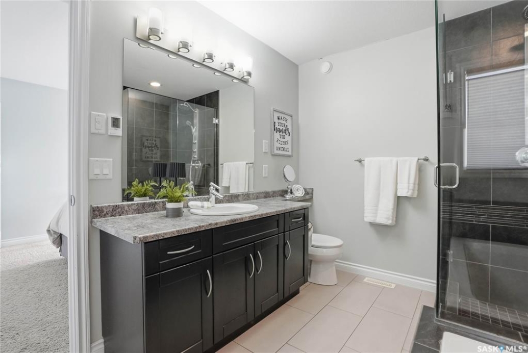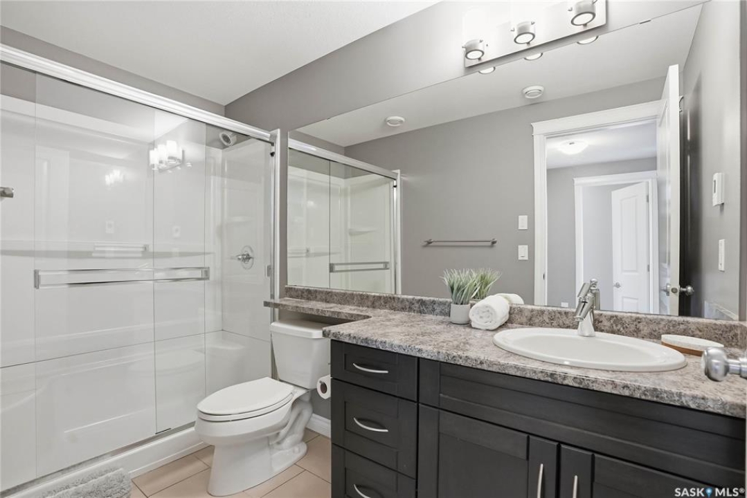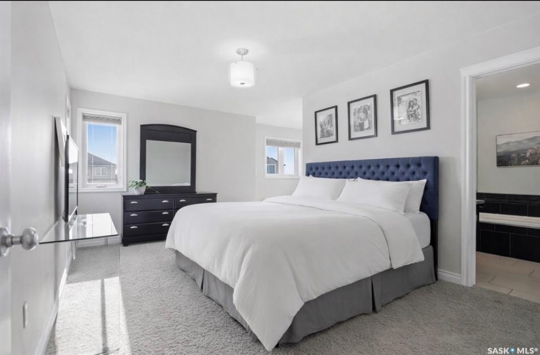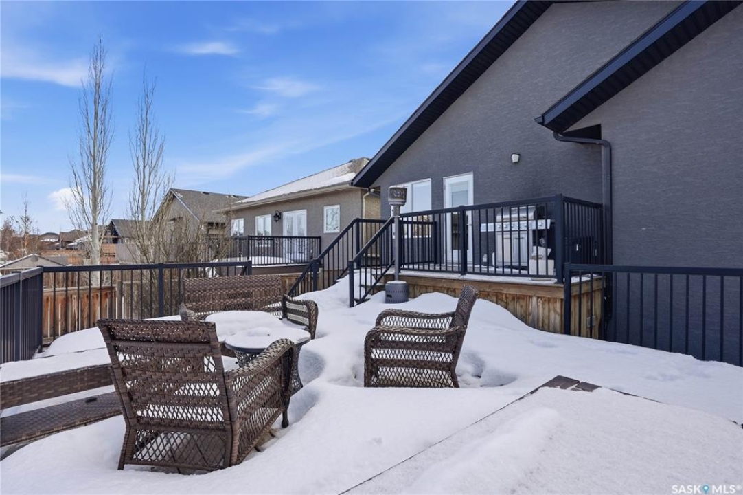 Stonebridge modified bi-level offering 1,455 sq. ft., 4 bedrooms, and 3 full bathrooms, ideally located on one of the neighbourhood's most desirable crescents — with all the features you could hope for! Step into a welcoming vaulted foyer. Just ahead is a bright, open great room featuring gorgeous newer genuine modern hardwood floors, a large picture window, a 3-sided fireplace, and soaring vaulted ceilings that continue throughout the main living space. The great room connects to a spacious dining area and a modern kitchen complete with stainless steel appliances, a central island with granite counters, tile backsplash, and a corner pantry — an exceptional layout for family living and entertaining. The main floor also offers a functional laundry room, 2 bedrooms, and a 4-piece bathroom with granite counters and tile flooring. The second level is a luxurious primary suite, featuring an oversized bedroom with a connected sitting room. The 5-piece ensuite includes a jetted soaker tub, glass shower with tile surround, double sink vanity, and a customized walk-in closet with drawers and built-in storage. The fully developed basement provides even more living space with a very spacious family room featuring a 2nd gas fireplace, a four-piece bathroom, and a connected games area or gym. This level also includes a lrg 4th bedroom with walk-in closet, plus utility and storage space. Outdoor living is accessed from the great room, leading to a fantastic double-tiered deck — truly an entertainer's dream. The yard offers tall trees for privacy and complete landscaping, plus shed storage. Additional upgrades include a heated double garage, heated floors in bathrooms, newer high-end hardwood throughout the entire main floor, central air, u/g sprinklers, nat gas BBQ hookup, customized closets, central vac, and two gas fireplaces. Located just a short distance to parks, schools, and shopping, this home sits on one of Stonebridge's most sought-after streets.
