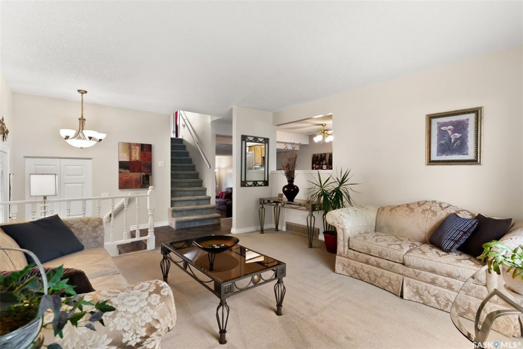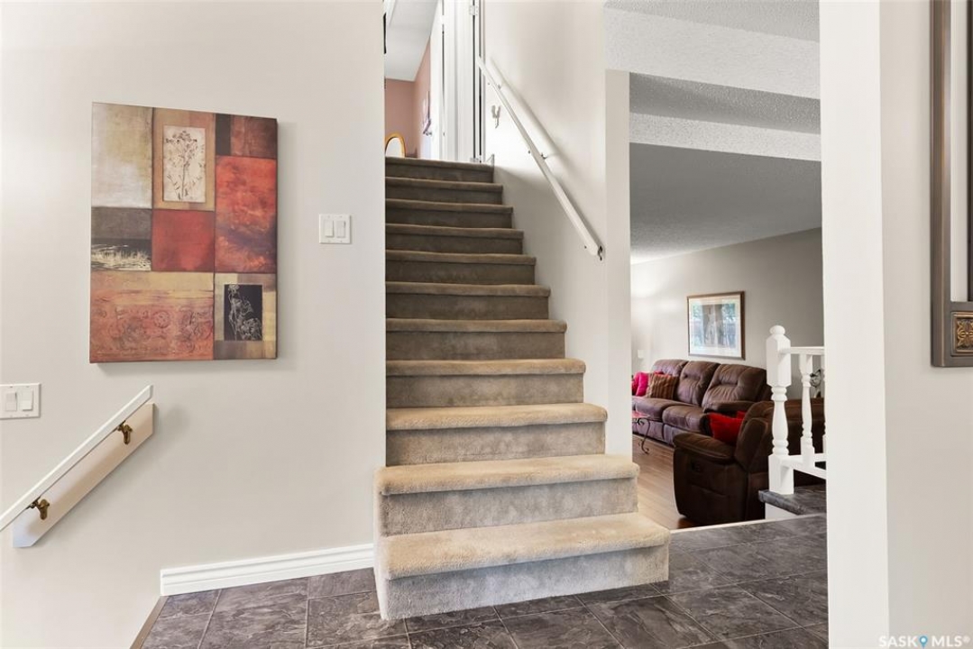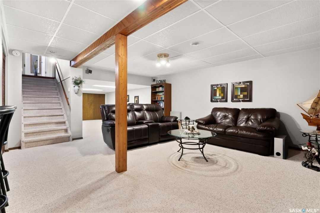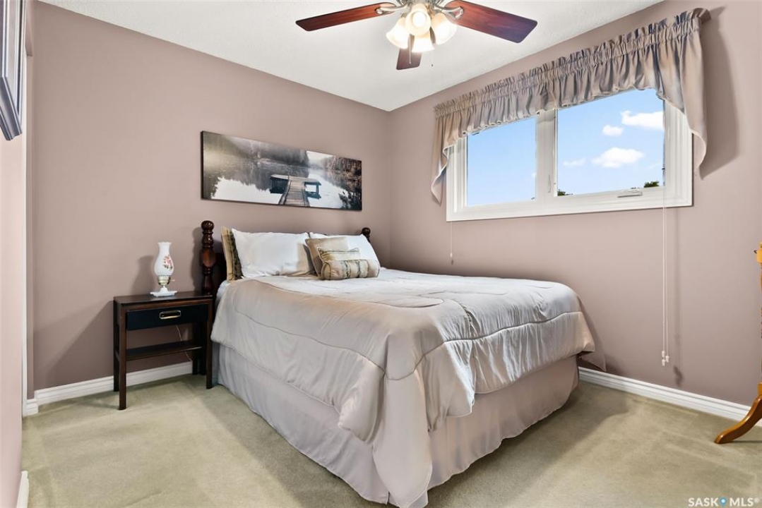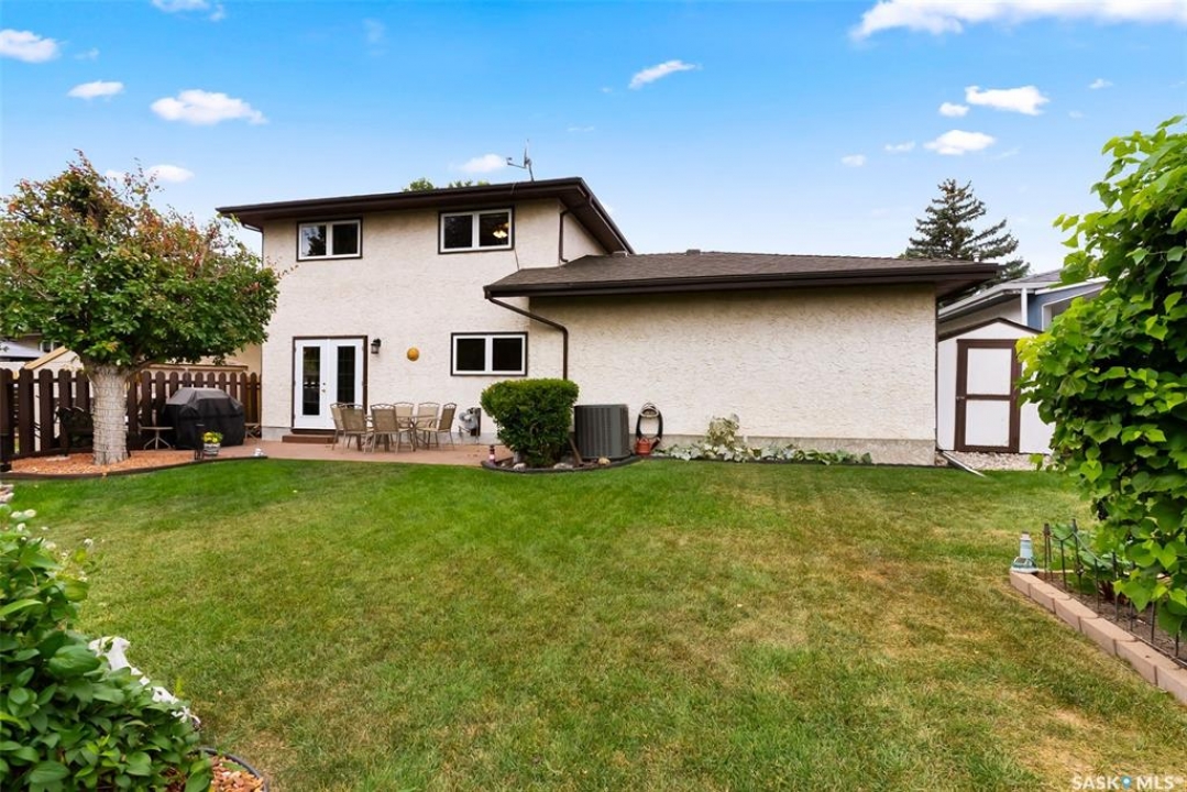 Welcome to 927 Cole Street N, located in the desirable McCarthy Park neighbourhood in Regina's northwest. This well maintained 1,440 sq. ft. two storey split home offers 3 bedrooms and 2 bathrooms and sits on a 6,050 sq. ft. lot with a beautifully established yard. The main floor features a bright living room, perfect sized kitchen, designated family dining area, and a cozy family room with French doors leading to the backyard. The main floor also has the first of three bedrooms, a convenient 2 piece bathroom, and direct access to the double attached insulated garage. Heading upstairs you'll find the spacious primary bedroom with double closets, an additional bedroom, and a 4 piece main bathroom. The lower level offers a great sized family room, wet bar area, den, laundry, and plenty of storage in the utility room. Outside, enjoy the fully fenced yard with mature trees, shrubs, patio, garden space, shed, and underground sprinklers in both the front and back. The home also features newer shingles, vinyl siding, and PVC windows, along with a beautifully landscaped front yard filled with established perennials.