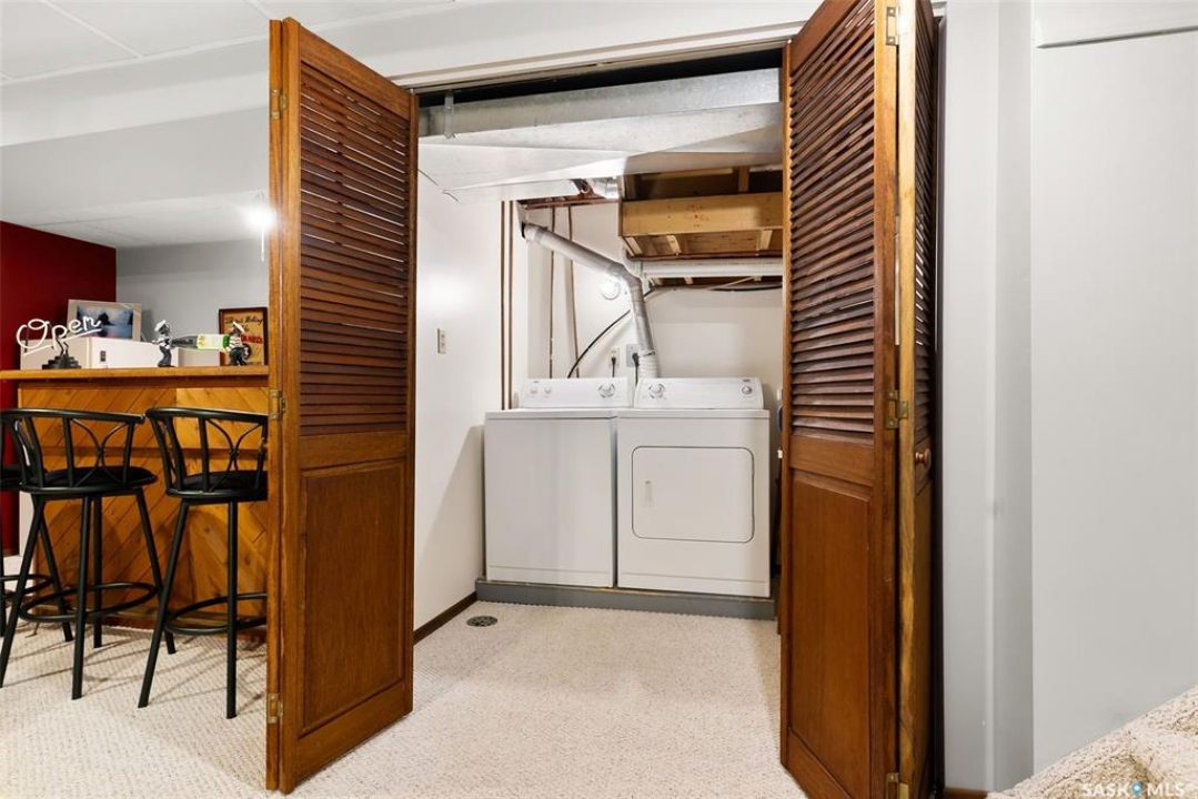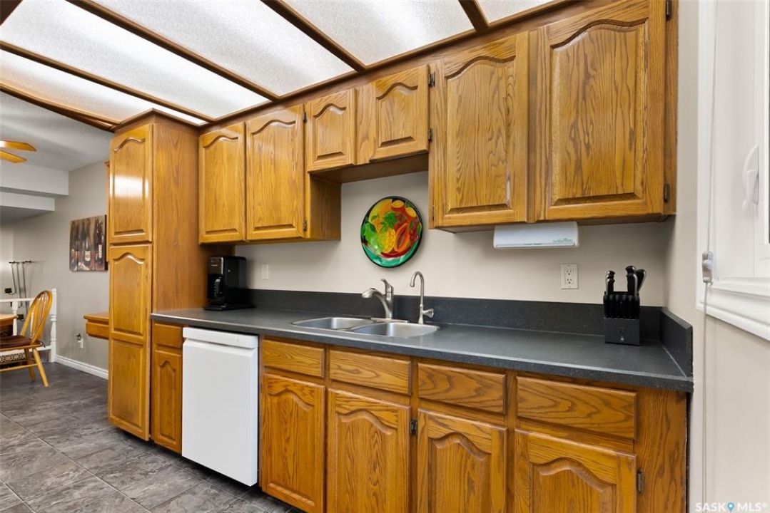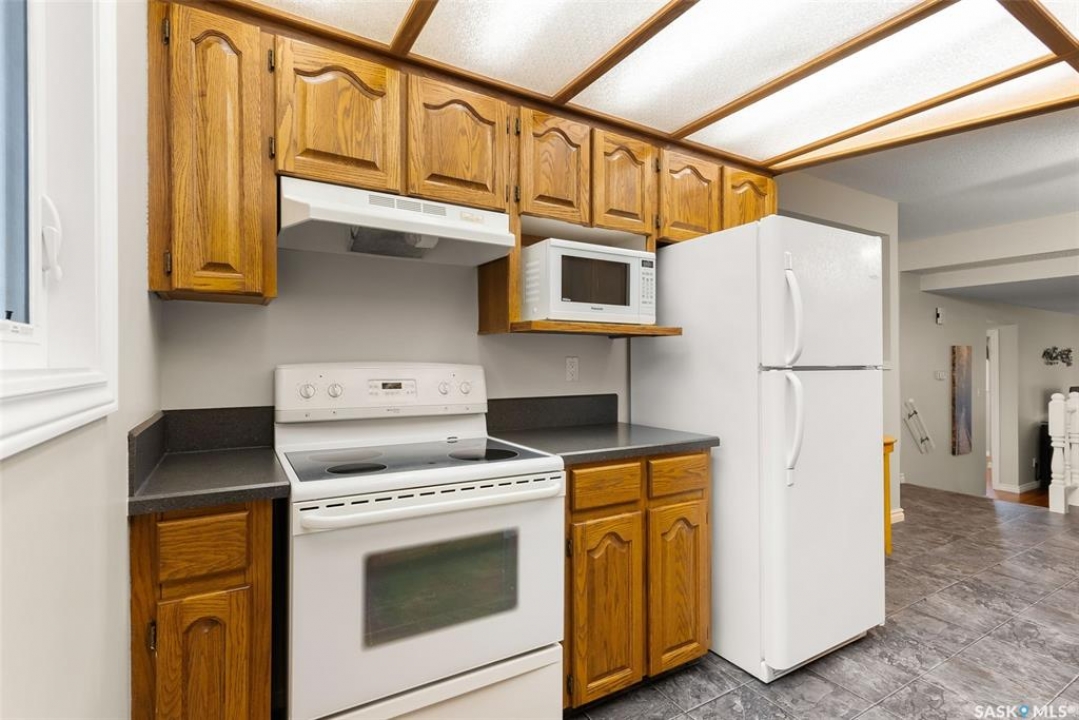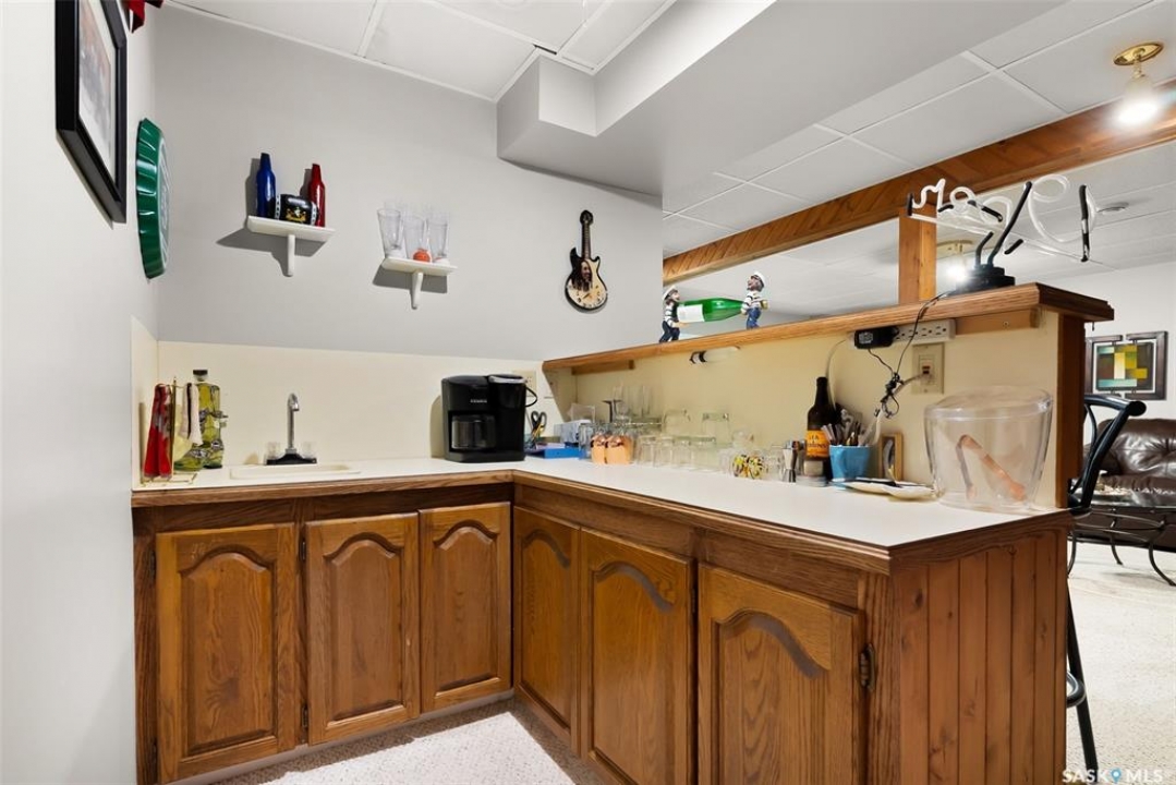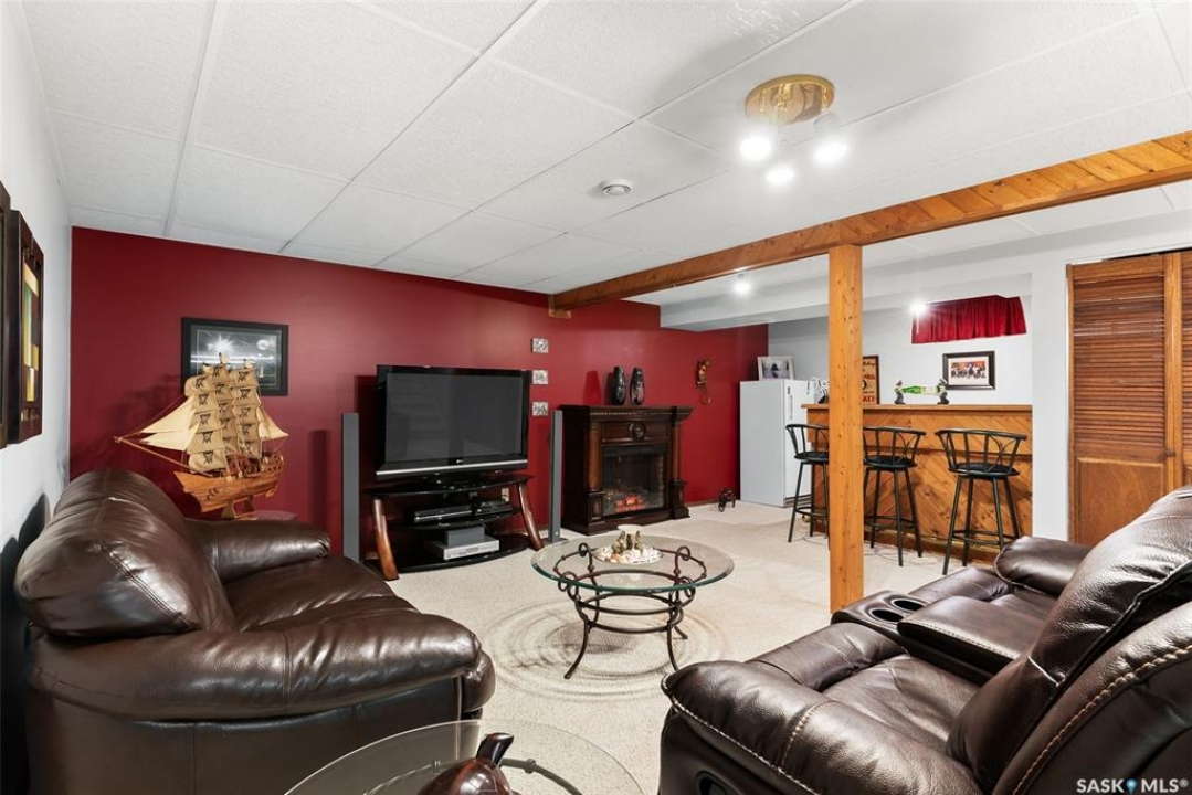 Welcome to 927 Cole Street N, located in the desirable McCarthy Park neighbourhood in Regina's northwest. This well maintained 1,440 sq. ft. two storey split home offers 3 bedrooms and 2 bathrooms and sits on a 6,050 sq. ft. lot with a beautifully established yard. The main floor features a bright living room, perfect sized kitchen, designated family dining area, and a cozy family room with French doors leading to the backyard. The main floor also has the first of three bedrooms, a convenient 2 piece bathroom, and direct access to the double attached insulated garage. Heading upstairs you'll find the spacious primary bedroom with double closets, an additional bedroom, and a 4 piece main bathroom. The lower level offers a great sized family room, wet bar area, den, laundry, and plenty of storage in the utility room. Outside, enjoy the fully fenced yard with mature trees, shrubs, patio, garden space, shed, and underground sprinklers in both the front and back. The home also features newer shingles, vinyl siding, and PVC windows, along with a beautifully landscaped front yard filled with established perennials.
