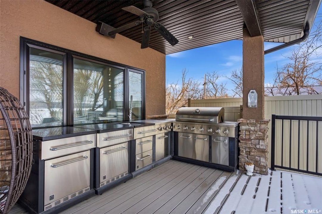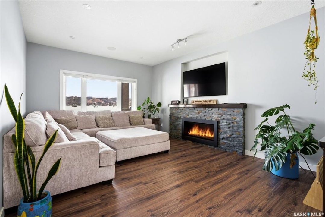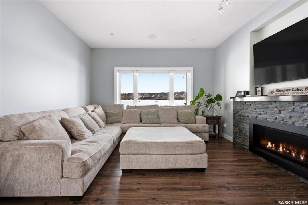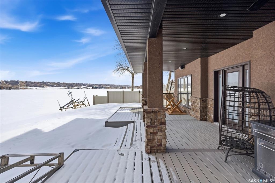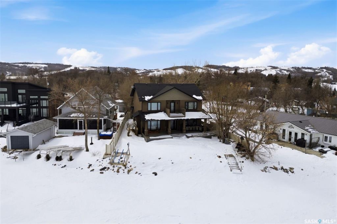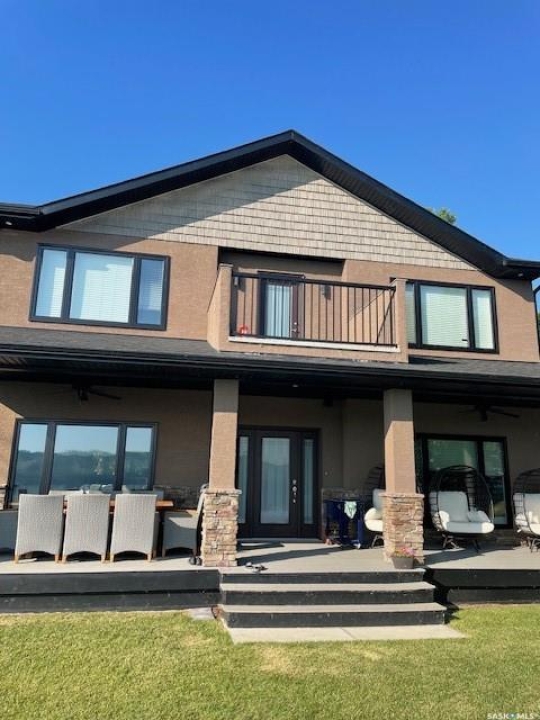 Stunning 2-storey lakefront home in the desirable Maples area of Katepwa Lake offering 4 bedrooms, 3 bathrooms and 2,524 sq ft of living space on a beautifully landscaped lot with 86 feet of waterfront. The main floor features a bright open-concept layout with 9 ft ceilings, oversized windows, a spacious foyer, upgraded lighting, a 2-piece bath, and a bedroom with lake views. The kitchen includes stainless steel appliances, wood cabinetry, pantry, granite countertops, glass-tiled backsplash, and a large sit-up island open to the dining area. The living room offers stunning lake views and a cozy fireplace. Upstairs you'll find a large recreation room with balcony access, two additional bedrooms, a 4-piece bath, convenient second-floor laundry, and a spacious primary suite with walk-in closet and 3-piece ensuite. Enjoy outdoor living on the huge covered deck overlooking the park-like yard and lake. Built in 2015, the home features Trex and DuraDeck decking, Regal railings, built-in sound system, on-demand hot water, underground sprinklers, and a fully landscaped yard. The property also includes an insulated double detached garage with plenty of additional parking. 2023 upgrades include a state-of-the-art stereo system, asphalt driveway, garage heater, fencing, Orbit irrigation system, reverse osmosis water system, water softener, and front deck extension. Located just steps from Breeze Park with playground, pickleball, tennis and basketball courts, ball diamond and sand volleyball. Minutes from Katepwa Provincial Park, golf course, trails, store, gas and dining, and only 15 minutes to Indian Head with K–12 schools, hospital, grocery, restaurants and shopping. Lot dimensions as per ISC. Contact the listing agent to schedule your private showing.