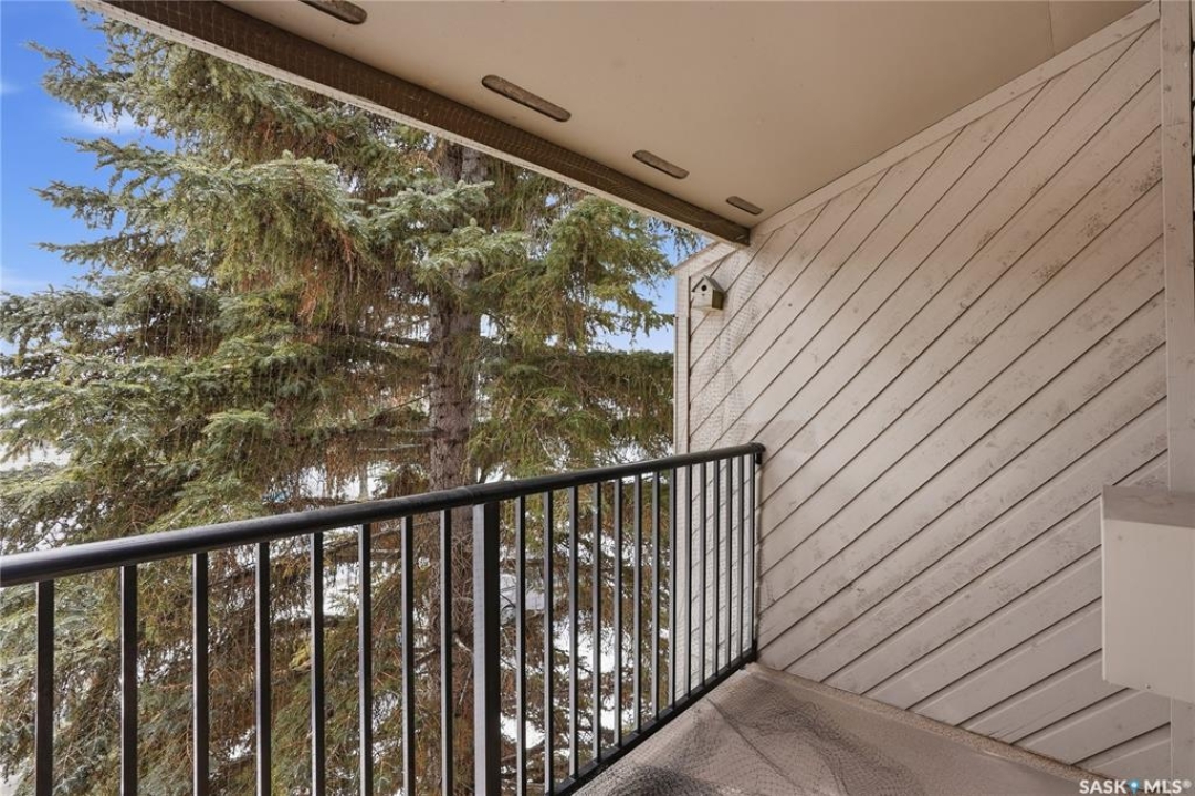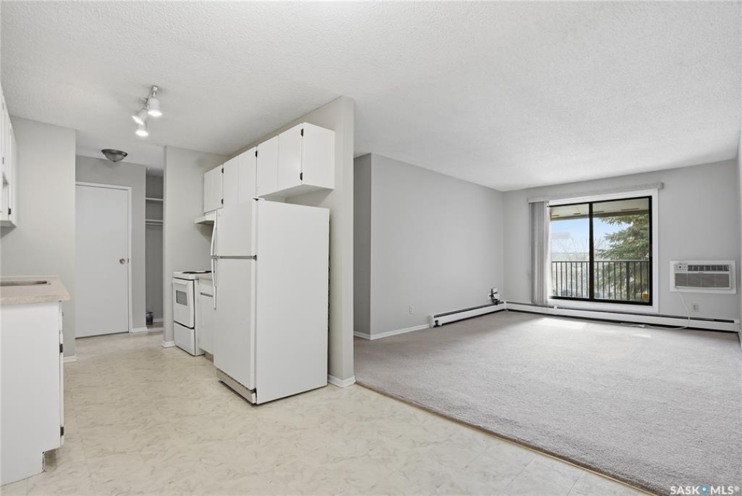 This is a bright & well-kept 2-bedroom, 1 bath, a large storage room, a white galley kitchen with a dinette area. The Open living room is filled with sunshine, patio doors to a south-facing balcony with a beautiful spruce tree for privacy. Wall-mounted AC to keep your area cool. Located in East College, a desirable area close to shopping & U of S, with an excellent bus route. Make your appointment today.