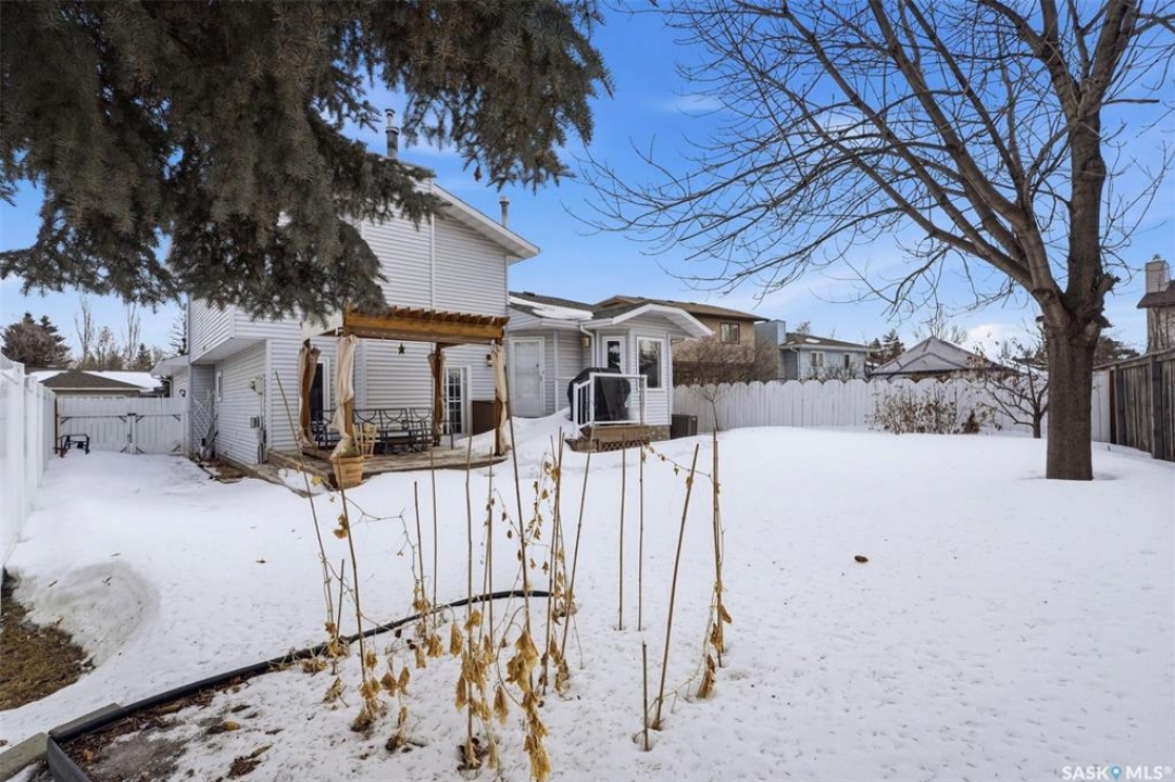 Welcome to this beautifully maintained 2-storey split offering space, comfort, and an unbeatable location. Featuring 4 bedrooms and 3 bathrooms, this home is ideal for families looking for both functionality and style. The floor plan is perfect with living room, dining room and kitchen on the main level, 3 bedrooms with full bath and ensuite on the second level and a warm and inviting family room with a cozy fireplace and patio doors that lead directly to the backyard, additional.bedroom/den and bath on the 3rd level.. The fully finished basement provides additional living space for a rec room, home office, or gym. Step outside to enjoy the nicely landscaped yard, featuring a spacious deck, patio, and pergola—ideal for entertaining or relaxing in your own private retreat. The attached double garage offers convenient direct entry into the home, making everyday living easy and efficient. Situated on a quiet street in a highly desirable neighborhood, this home is just a short walk to K–8 public, separate, and French immersion schools, as well as Centennial Collegiate. Enjoy a quick commute to the University of Saskatchewan, city centre, and all amenities, with the Forestry Farm and Zoo just minutes away. This is a fantastic opportunity to own a move-in ready home in a prime location—don't miss out! Check it out at the open house on Saturday and Sunday, March 21st and 22nd from 1 -3 pm!