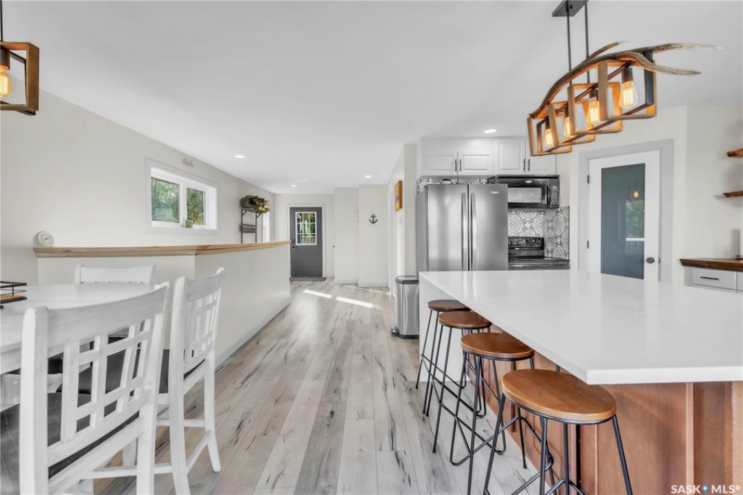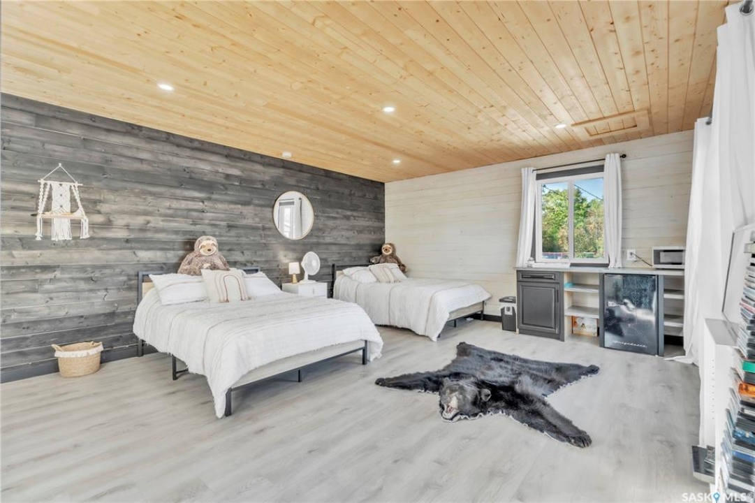 Tucked into a quiet subdivision on Murphy Lake, this stunning year-round home offers the perfect blend of comfort, privacy, and lake life. With three bedrooms, two bathrooms, and a separate bunkhouse for guests, this property was designed for making memories. The main floor features the primary bedroom with access to a four-piece bathroom and laundry. The bright open kitchen is the heart of the home, showcasing live-edge wood shelving, a large quartz island, and expansive windows with lake views and fill the space with natural light. The walkout basement adds two additional bedrooms, a three-piece bathroom, a thoughtfully designed bar area, and a spacious family room centered around a cozy wood stove, perfect for chilly mornings or a winter escape. Outside, the beautifully landscaped yard invites you to relax and entertain. A custom stamped concrete walkway leads to a fire pit area and outdoor kitchen ready for your BBQ and big screen TV. The 15' x 19' bunkhouse creates a private retreat for overnight guests or teenagers, while mature trees on both sides of the property provide exceptional privacy. A private path leads directly from the home to Murphy Lake, where you can easily launch your boat off your very own dock or spend the day fishing, cruising, or paddle boarding. Serviced by a cistern and septic system, this property is located approximately 1.5 hours north of Lloydminster and just over an hour southeast of Cold Lake. The town of Loon Lake is only 15 minutes away and offers groceries, restaurants, a medical clinic, and a golf course, with many additional lakes and parks nearby to explore.