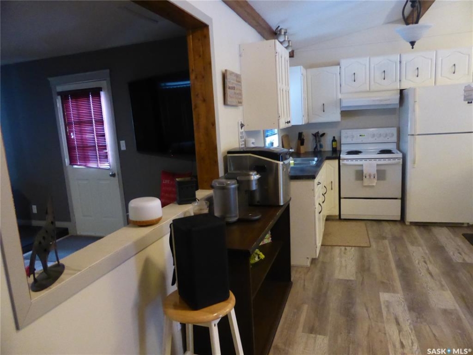 Don't let this one slip away—this hidden gem is truly move-in ready! Located at Kivimaa in Moonlight Bay, this inviting cabin sits in a private spot on a quiet one-way road in and out, meaning very little traffic and a peaceful setting. Warm, cozy, cute, clean, and surprisingly spacious, this charming cabin offers a layout that feels both comfortable and functional. The large kitchen and dining area flows with a slight open concept into the living room, so you can stay connected with family and friends while still enjoying defined spaces. The overall feel is bright, open, and welcoming—perfect for relaxing weekends or extended stays at the lake. Step outside and enjoy the large deck complete with a pergola that can be opened to the sunshine or closed for extra shade and comfort. The peaceful front yard features a fire pit area where you can gather with friends and family while taking in the beautiful view of the surrounding evergreen trees. It truly feels like being tucked away in the bush, enjoying the quiet and serenity of lake life. A convenient walkway located right behind the property leads you closer to the lake, making it easy to enjoy the water whenever the mood strikes. You'll also appreciate that playgrounds, boat launches, mini golf, and pickleball courts are all nearby, offering plenty of activities for families and guests of all ages.
