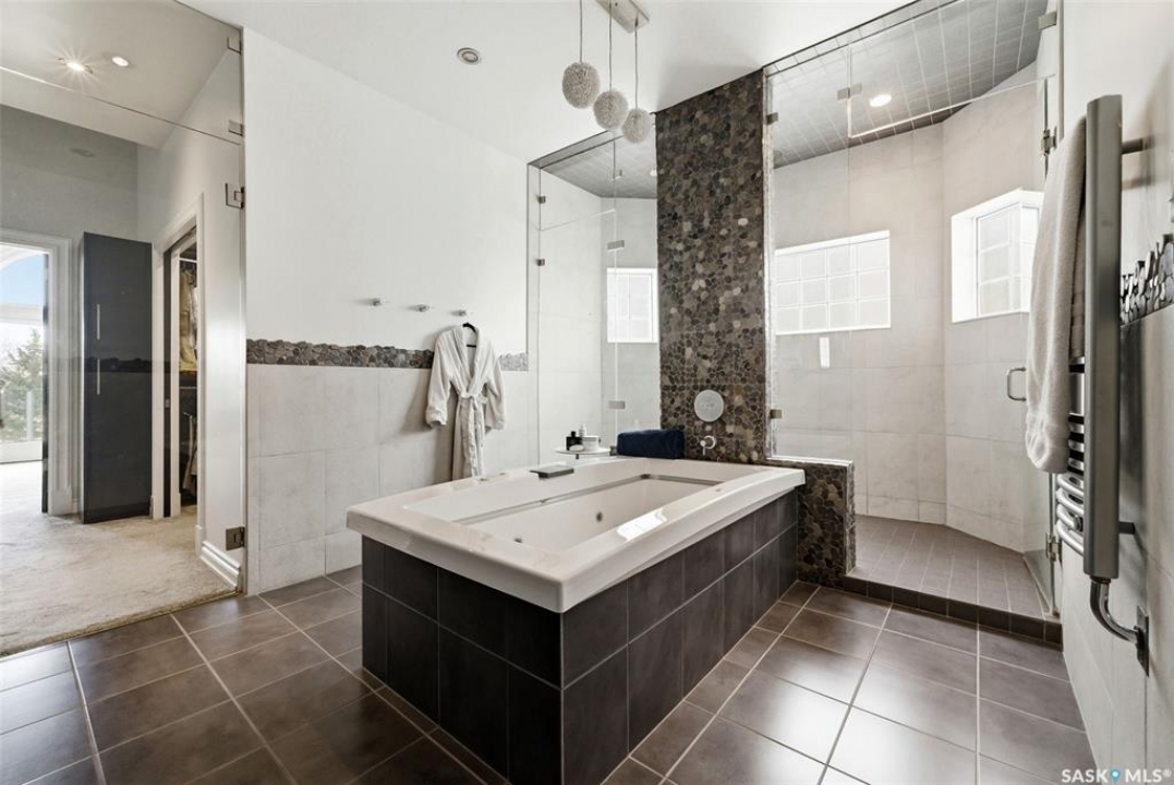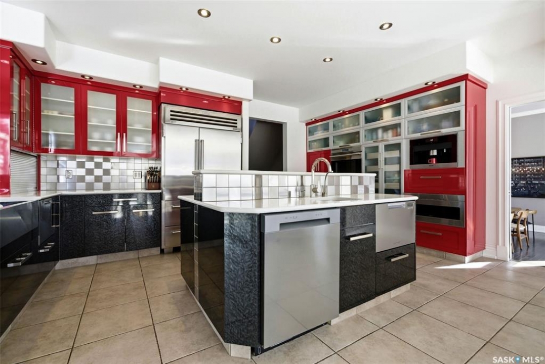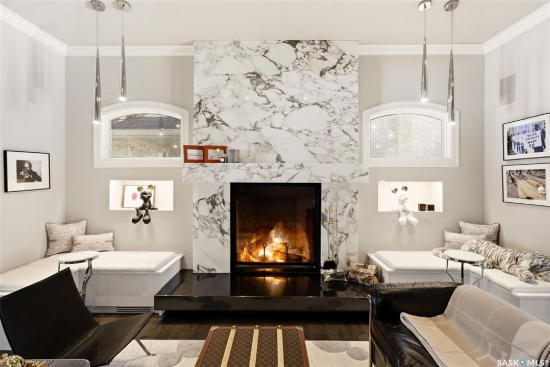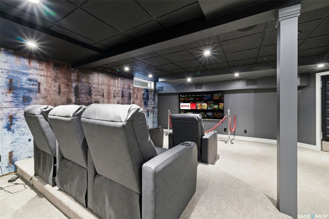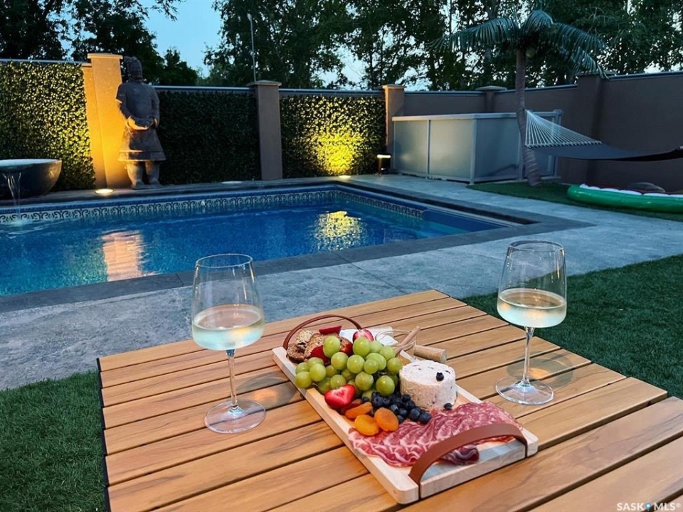 This extraordinary executive residence, masterfully crafted by Sunwest Homes, offers 3,487 sq. ft. of refined living with breathtaking unobstructed views. A striking Tyndall stone façade welcomes you into a grand foyer and elegant living room anchored by a Renaissance Rumford wood-burning fireplace adorned with exquisite Italian marble from Florence. The main level features a sophisticated private office with wet-bar rough-in, a formal dining room highlighted by a dramatic 12-foot reverse tapered ceiling overlooking the resort-style backyard, and a spectacular custom kitchen by Pilandri Bros. showcasing bold Ferrari-red cabinetry and premium appliances including Sub-Zero refrigeration, dual Wolf built-in ovens, a Fisher & Paykel gas range, dual dishwashers, and a built-in Miele espresso system. The inviting family room with gas fireplace opens through impressive Nano doors to a private outdoor sanctuary complete with a fully equipped kitchen, tiki bar, gas BBQ, hot tub, outdoor fireplace, and a sparkling salt-water in-ground pool (approx. 16×32) has waterfall features and with potential to reinstall elegant laminar jets, heated by natural gas. Additional conveniences include main floor laundry, a practical boot room, and direct access to a heated 24×23 garage with a dog wash station. The 2 floor has 4-bedrooms including a luxurious primary retreat with a private deck overlooking the manicured yard, park, and environmental reserve, along with a spa-inspired ensuite featuring a deep soaker tub, steam shower, and recently replaced Grohe toilet and faucets.The fully finished lower level enhances the home with a private theatre room, expansive craft studio, fifth bedroom, full bath, fitness room with ballet bar, relaxing infrared sauna, and ample storage. Completing this remarkable residence is a whole-home audio/visual system and a reliable standby generator by Cummins—an exceptional and rare offering designed for luxurious living and unforgettable entertaining.