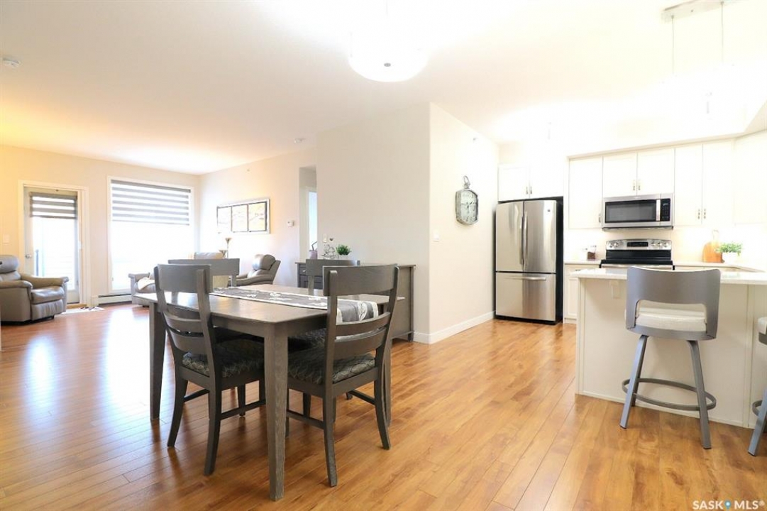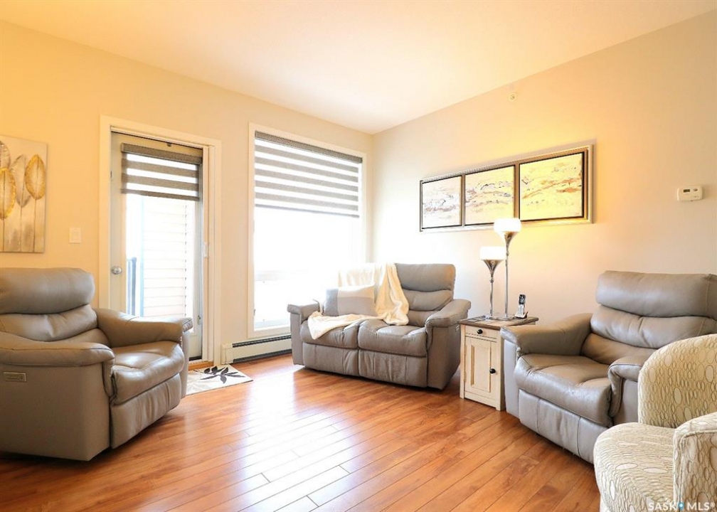Welcome to refined, low-maintenance living in one of Yorkton's most desirable and modern condominium developments. Built in 2015 and ideally located in the city's newest residential area, this beautifully maintained 987 sq. ft. residence offers 2 bedrooms and 2 full bathrooms, thoughtfully designed for both comfort and style. Inside, the home features an inviting open-concept layout enhanced by elegant white cabinetry, designer window treatments, and bright, contemporary finishes that create a space that feels both modern and timeless. The kitchen offers excellent functionality with a built-in dishwasher and generous workspace, making everyday living and entertaining effortless. Step outside and enjoy the convenience of a natural gas BBQ connection on the balcony, eliminating the need for propane tanks and making outdoor cooking simple and enjoyable. An additional stand-alone freezer provides extra storage flexibility, while the reverse osmosis (RO) water system adds another layer of comfort and quality to the home. Residents of this well-appointed building enjoy a range of desirable amenities, including an elevator, fitness area, and welcoming amenity room—perfect for gatherings and social events. The building is also wheelchair accessible, offering ease and accessibility for all lifestyles. One of the standout features is the underground-style parking (above ground but fully enclosed), providing a protected space for your vehicle—a welcome luxury during Yorkton's long, cold winters. Condo fees offer exceptional value and peace of mind, covering common area maintenance, exterior building upkeep, garbage service, heat, common insurance, lawn care, reserve fund contributions, sewer, snow removal, and water. Whether you are looking to downsize in style, simplify your lifestyle, or invest in a quality property, this elegant condominium offers comfort, convenience, and modern living in an exceptional location!