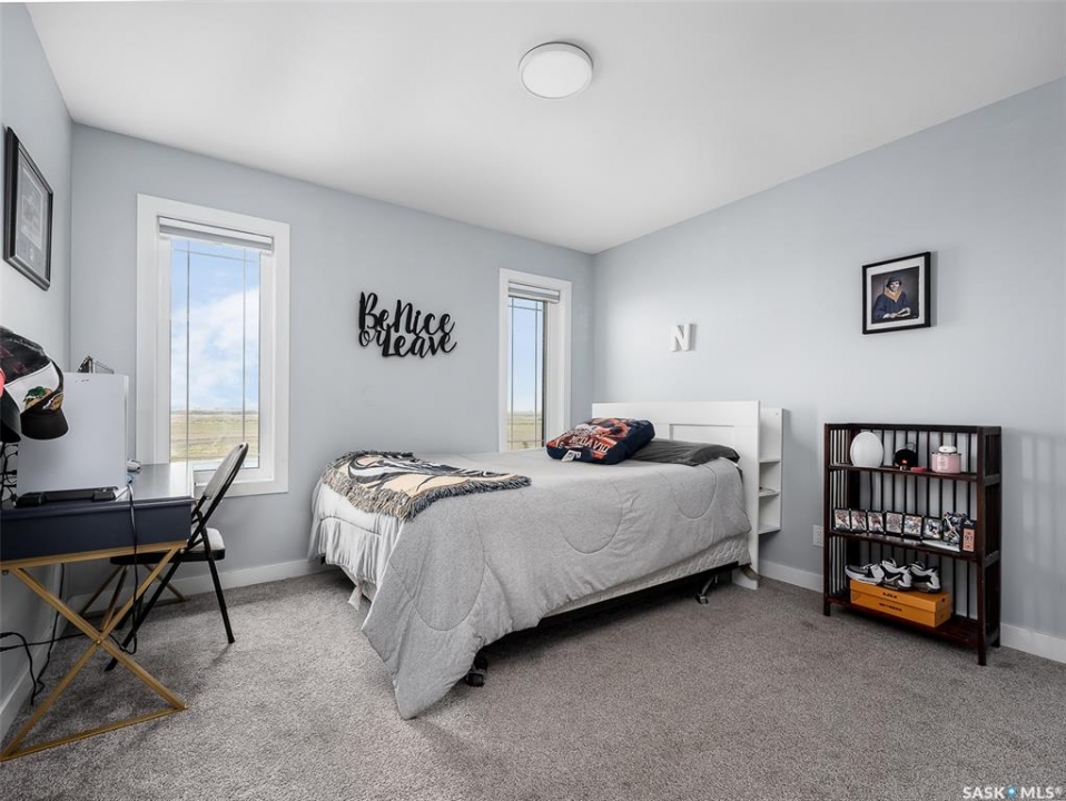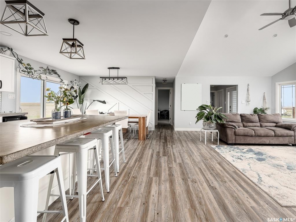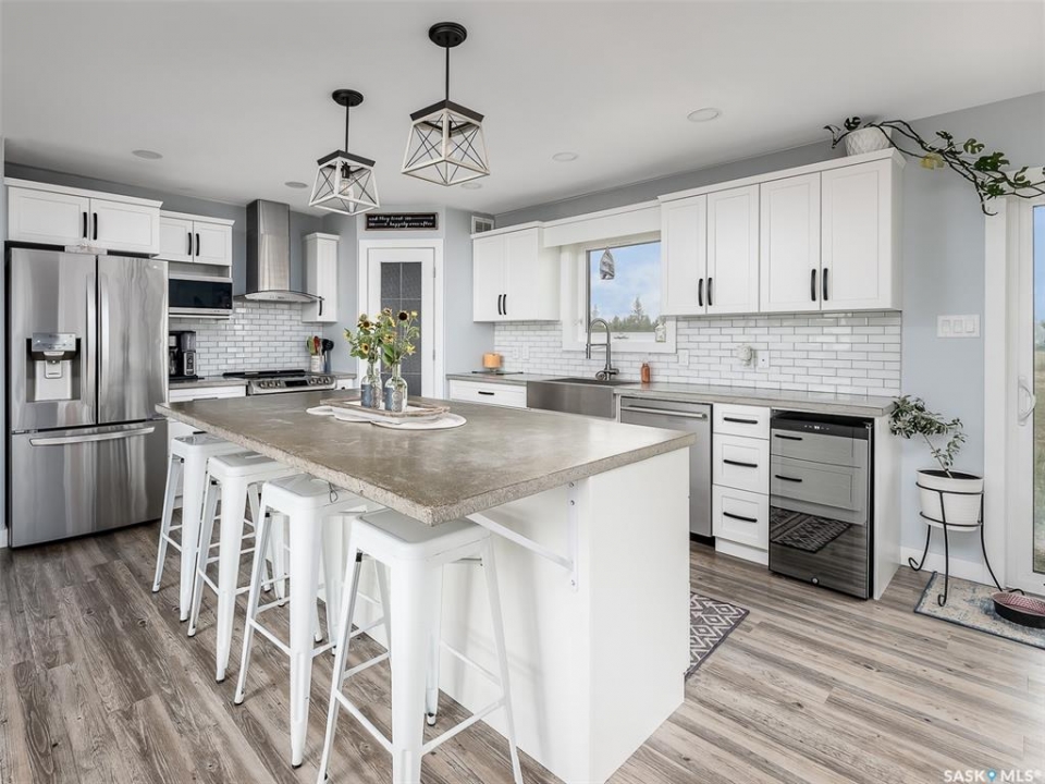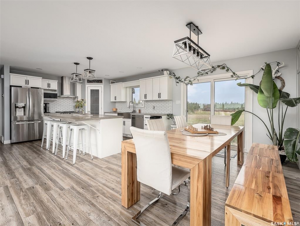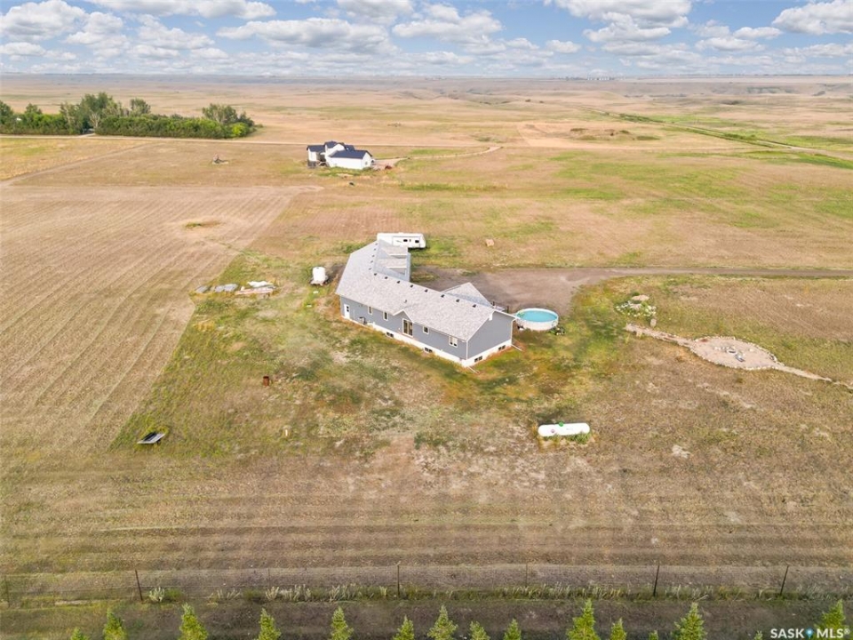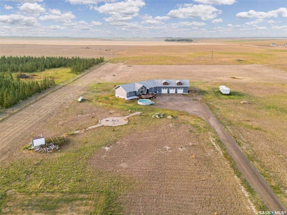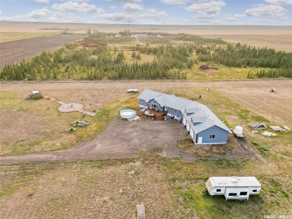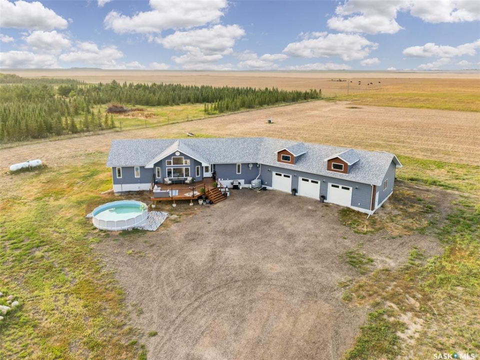 Dreaming of life in the country just minutes from the city?? Stargazing on your deck away from the city lights? Dreams do come true! This 10 acre parcel boasts a 1,600+ square foot home that is built with the best view in mind & the front deck will be your favourite place to soak up the sunrise! Inside, this home feels warm & welcoming with a modern farmhouse vibe! The view from the Living Room is stunning with huge south facing windows taking full advantage or the vaulted ceiling & is set off with a sleek Fireplace flanked by rustic built-ins. The open concept main floor is perfect for gathering with family & friends with the Kitchen boasting custom concrete countertops, deep farmhouse sink, corner pantry, stylish lighting & island with the Dining Room finished with feature wall & patio doors opening on to a new back deck. To one side of the home, you will find 2 spacious Bedrooms & full Bath with the Primary Suite (walk-in closet & 4pc Ensuite) on the opposite side of the house allowing for privacy. MAIN FLOOR LAUNDRY is adjacent to the MASSIVE HEATED GARAGE with soaring ceilings & dormers (future mezzanine??). The lower level is ready for your ideas with r/in plumbing for additional Bath & framing is set to begin to develop a Family Room, Bath & 2 Bedrooms (state of completion will depend on purchase timeline & is negotiable). Start planning your move to the country now & enjoy the peace & tranquility this change of address will bring! Directions: From MJ - Highway 1 East to Weyburn turn off. North on 301 to Twp Rd 172. East approximately 3kms to sign.
