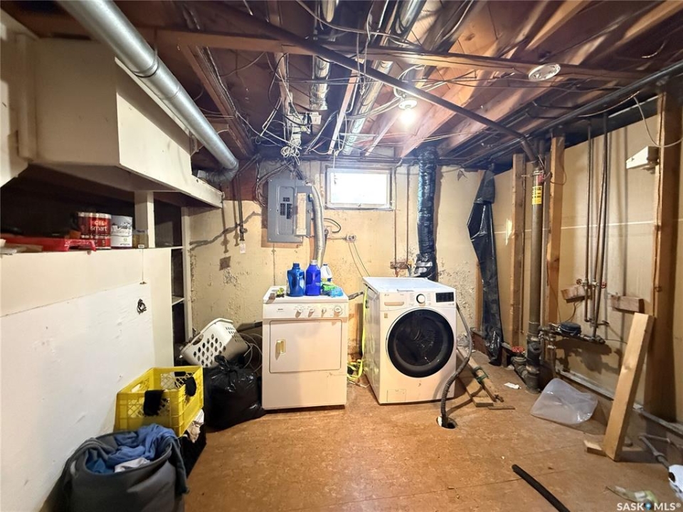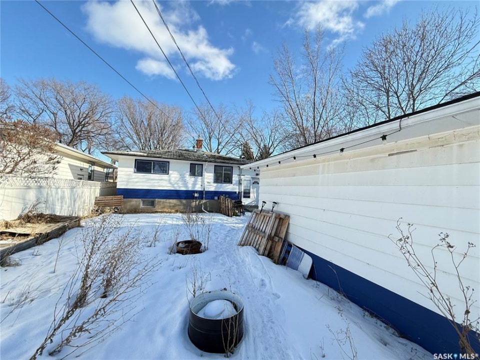 Welcome to this east-end home offering convenient access to shopping, schools, and Ring Road. The main floor features 2 good-sized bedrooms and a full bathroom. The basement includes a spacious rec room and a half bathroom, with potential for further development. With the addition of a wall and door, a third bedroom could easily be created, and there is space to add a full bathroom. Located in a quiet neighbourhood with friendly neighbours, this property presents a great opportunity for investors or buyers looking to build equity. Property is sold as is, where is and requires TLC. Great investment potential!