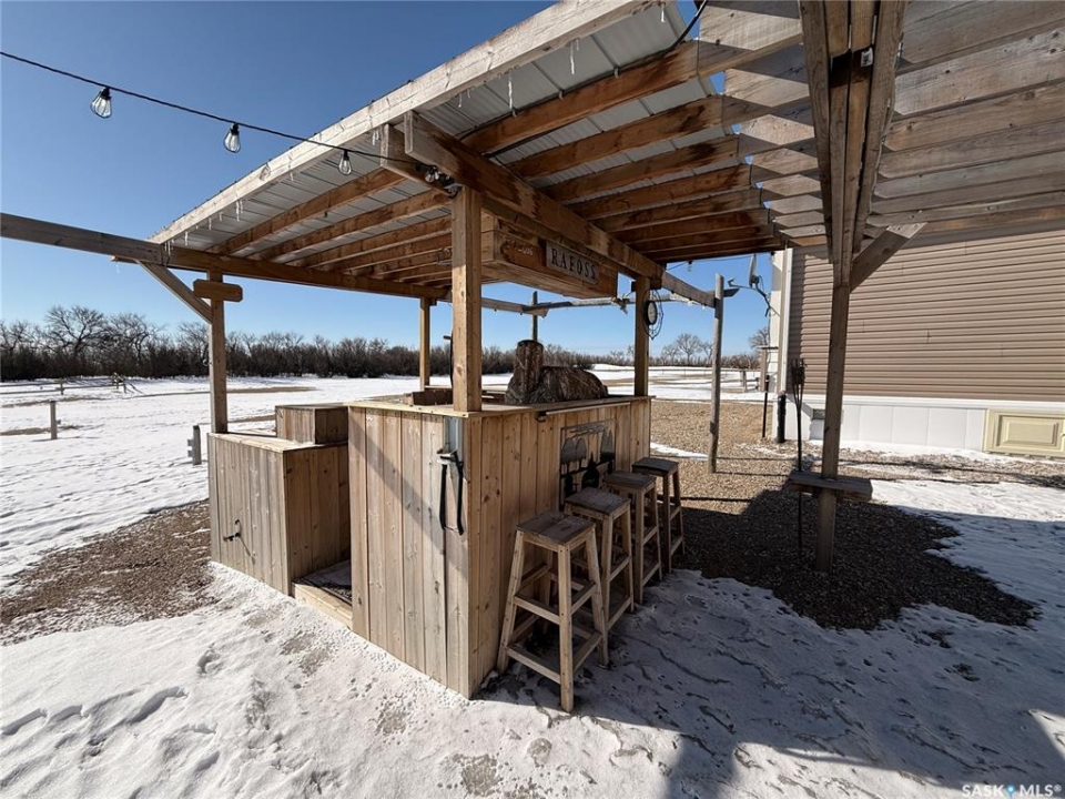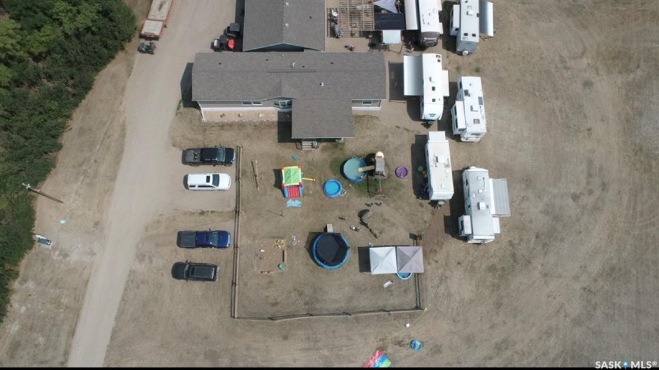 Tucked away on a no-thru road, just 15 minutes from the Town of Outlook with only 3 minutes of gravel...sits this move in ready, 4 acre West Outlook Acreage. This well-designed home features 3 Bedrooms and 2 Bathrooms with a thoughtful separate kids/parents floor plan that offers comfort and functionality. A dedicated playroom area gives families their own space while keeping the main living areas free and inviting. The heart of the home includes an open kitchen with breakfast bar seating just steps from the beautiful deck to take in those stunning country views! A true standout feature of this property is the impressive 30' x 34' heated garage/shop. Fully equipped with a half bathroom, sloped concrete floors, 220v plug, workbench, side-mount opener and even air conditioning, its perfectly set up for projects, storage, or a home-based business! Outdoors, the property continues to impress with a functional cook shack, 7 CAMPSITES (5 serviced with power, water, septic...2 only power and water) a propane hook-up for BBQ and a garden area with a trenched water line- offering both lifestyle and potential income opportunities! This is country living at its best- private, functional and packed with features!