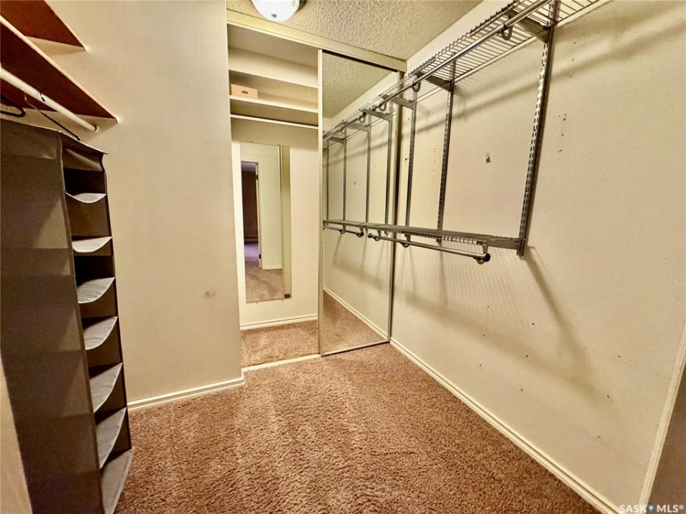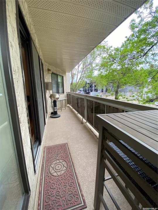 Ideal condo on 5th Avenue — perfectly situated close to City Hospital, the river, and downtown amenities. This quiet building offers beautiful second-floor corner unit for both comfort and convenience, with 2 parking stalls. Inside, you'll find a bright white kitchen with tile backsplash, quartz countertops, pot drawers, a pantry with pull-out shelves, task lighting, a window over the sink, & appliances included. The dining area features a wide window, and open to a spacious living room with patio doors leading to a 20' x 7' deck with plexiglass inserts and DuraDeck. The primary bedroom includes a large walk-in closet and a 3-piece ensuite. Additional features include a den with shelving and in-suite laundry. The bonus here of one underground parking stall (#14) and one surface parking stall (#31) plus storage is available in Storage Room #1-209. Call today for your personal veiwing.