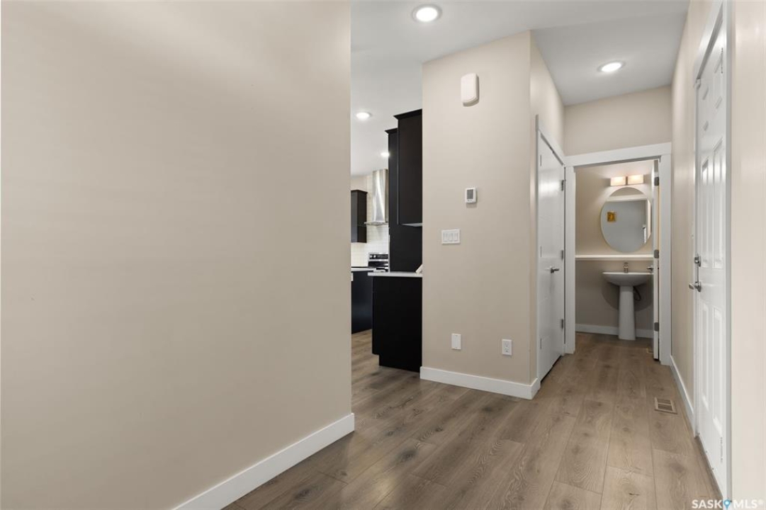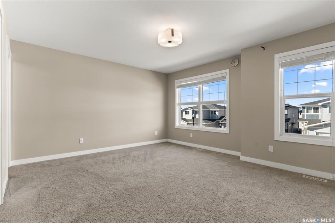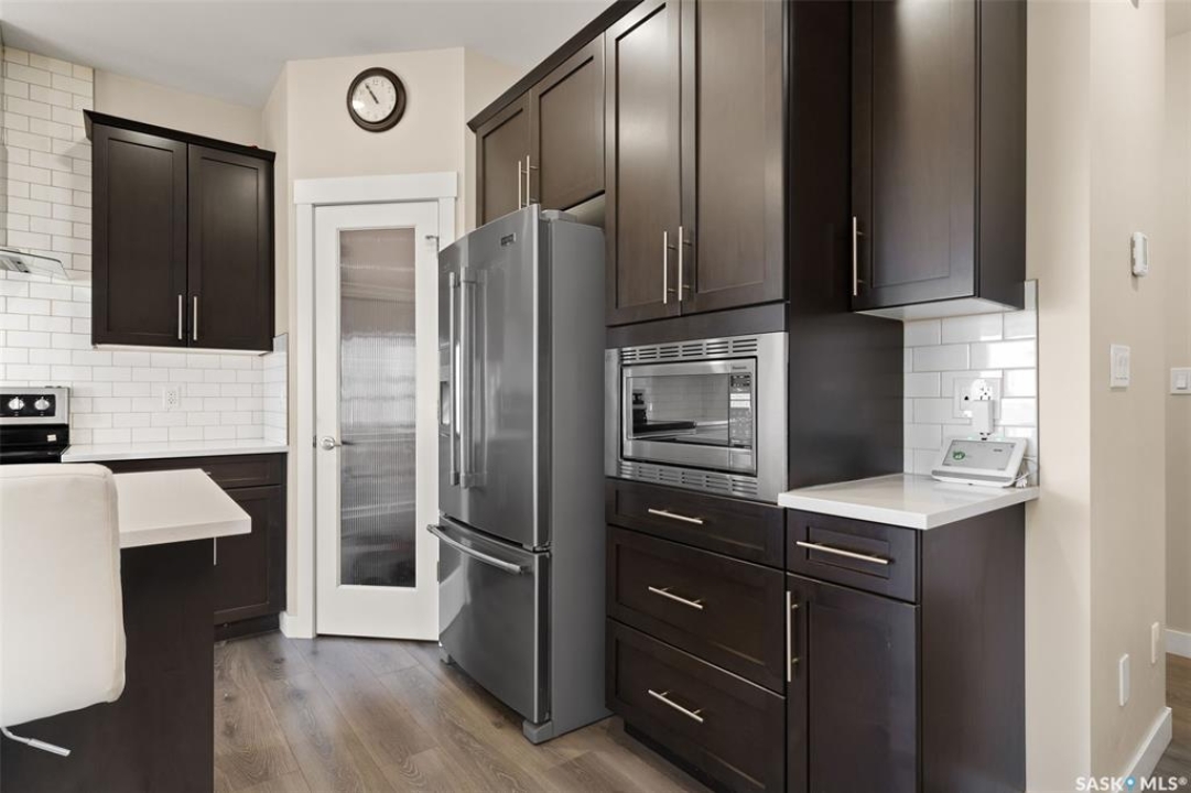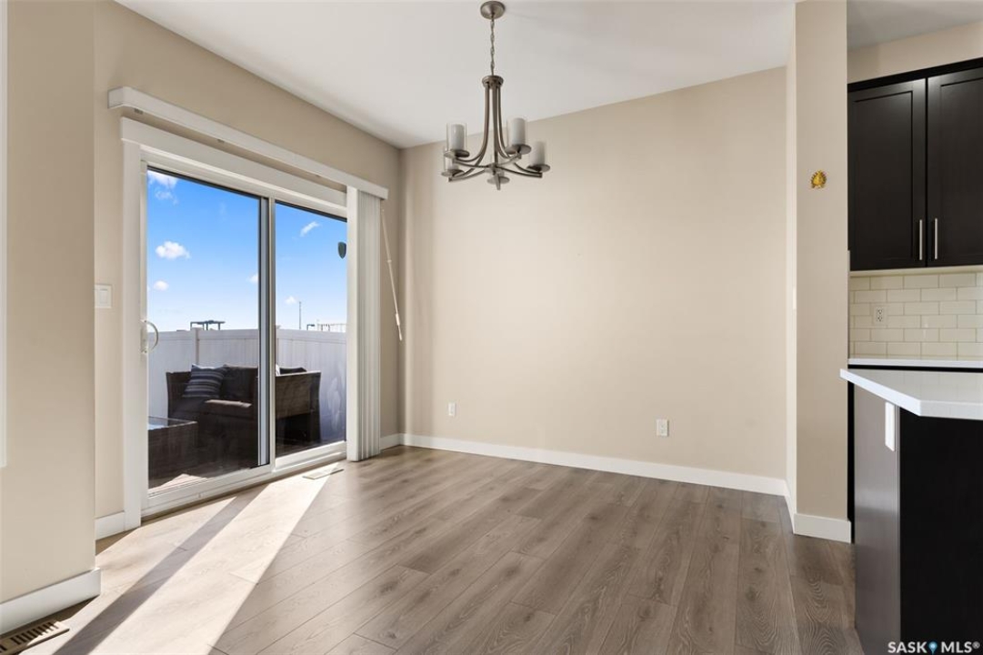 Welcome to this stunning 2-storey home in the highly sought-after Greens on Gardiner! Built in 2017, this well-maintained property offers 1,646 sq ft of thoughtfully designed living space, perfect for families or professionals alike. The bright, open-concept main floor showcases modern finishes throughout, including a stylish kitchen with dark cabinetry, tile backsplash, stainless steel appliances, and a large island with seating—ideal for entertaining. The adjoining dining area provides direct access to the fully fenced backyard, while the spacious living room is anchored by a sleek feature wall with a cozy gas fireplace. Upstairs, you'll find 3 generous bedrooms, including a primary retreat with a 4-piece ensuite, along with a second full bathroom and the convenience of second-floor laundry. The basement remains open for development, offering excellent future potential. Step outside to enjoy the large deck—perfect for summer gatherings—backing open space for added privacy and unobstructed views. Additional features include central A/C, natural gas heating, a double attached fully insulated garage, and a concrete driveway with ample parking. Ideally located close to parks, schools, and all east-end amenities, this move-in-ready home delivers the perfect combination of comfort, style, and location.