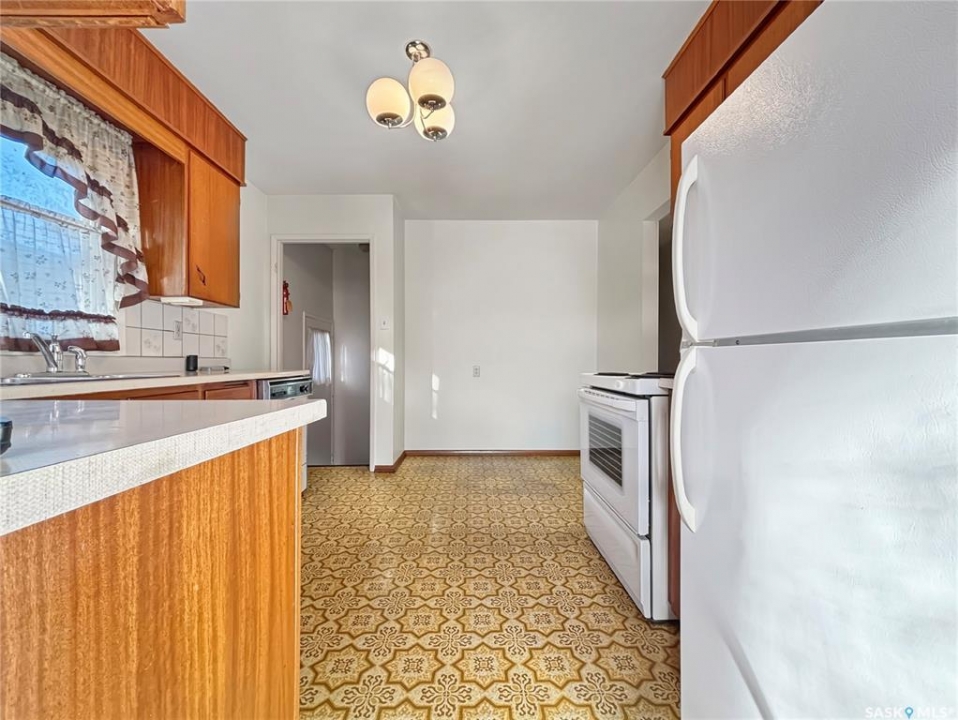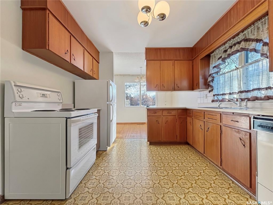 Solid 3+1 bedroom, 2 bath bungalow on a quiet crescent in Westview. Some newer windows. Hardwood floor evident in dining room, may be present in living room as well, buyer to verify. Open style mahogany kitchen with eating nook. Basement is fully developed with family room, bedroom, bathroom, workshop, and laundry/utility/storage area. Huge backyard. Single attached garage with door opener. Quick possession date is possible.