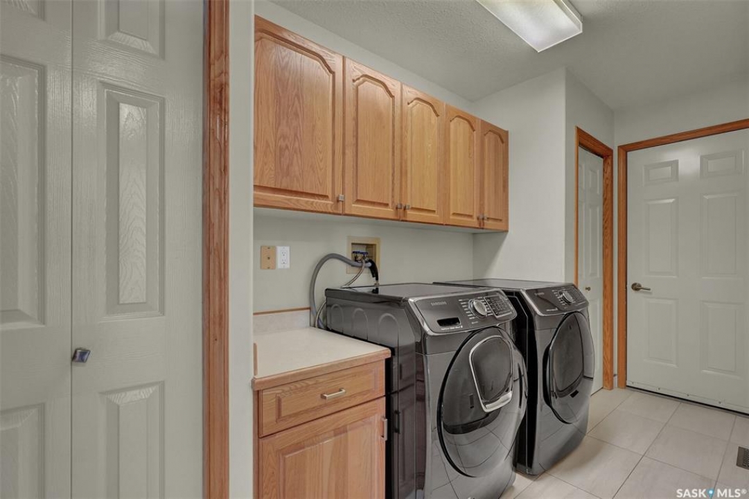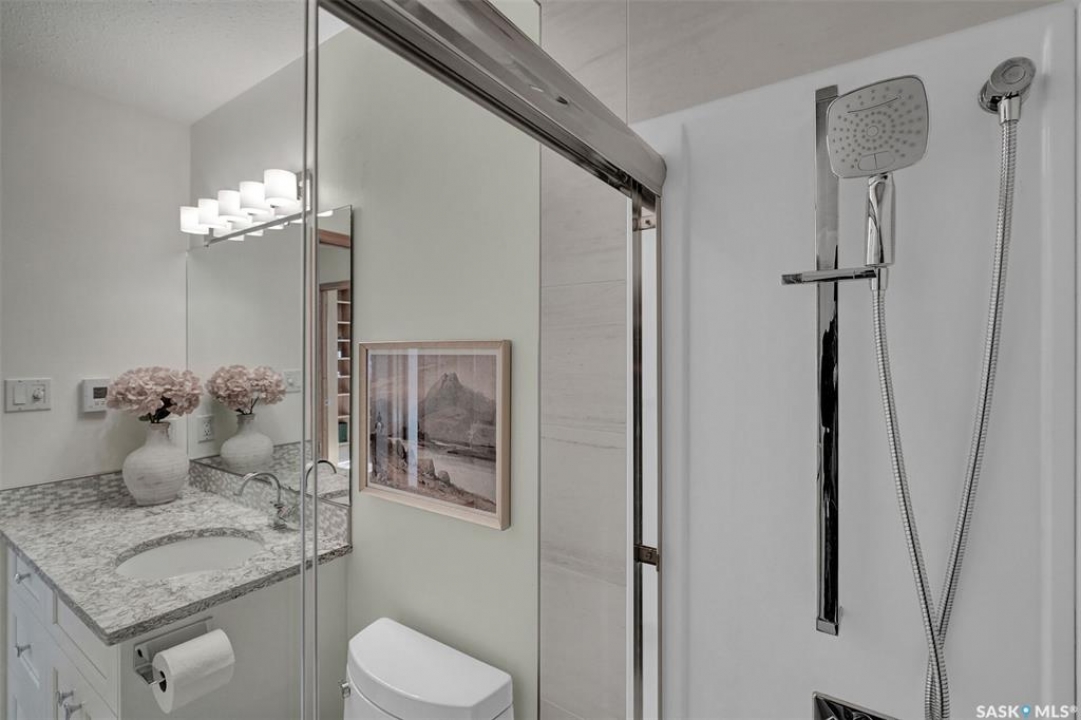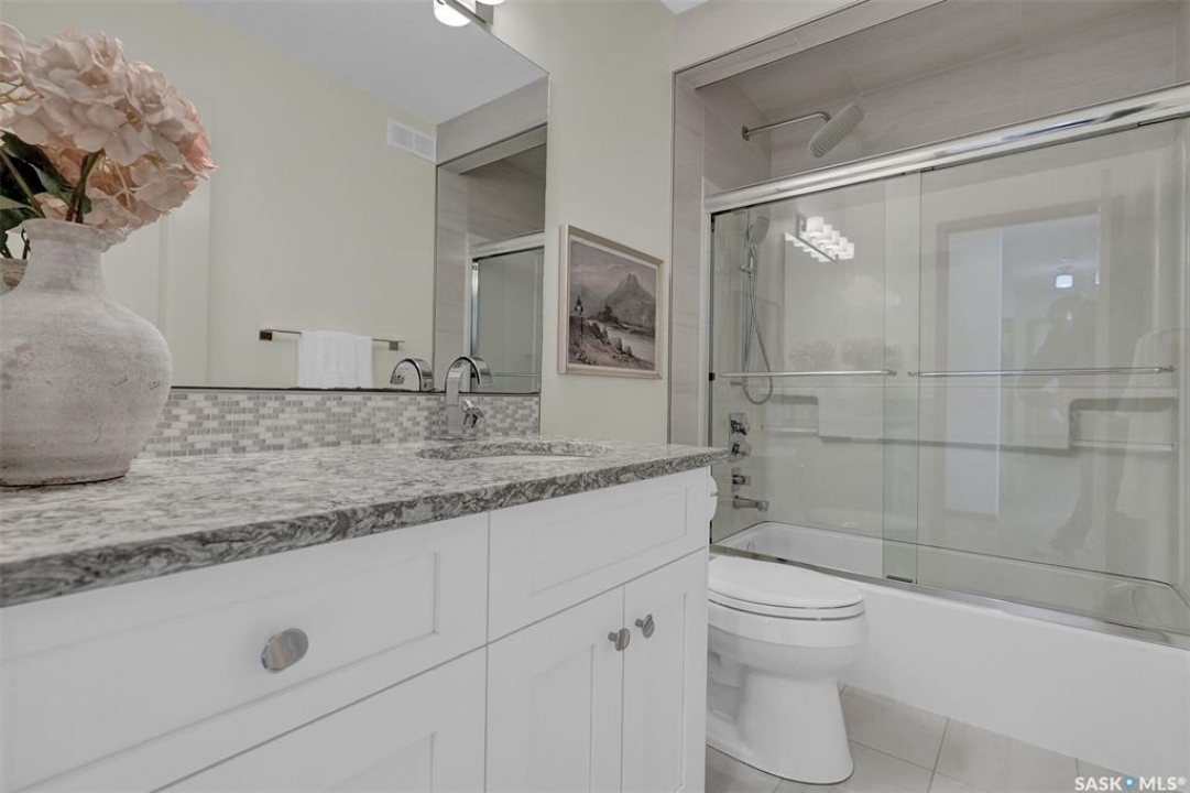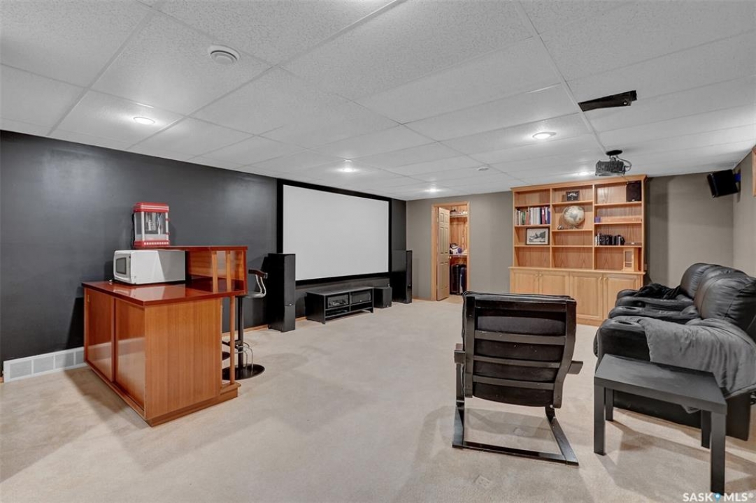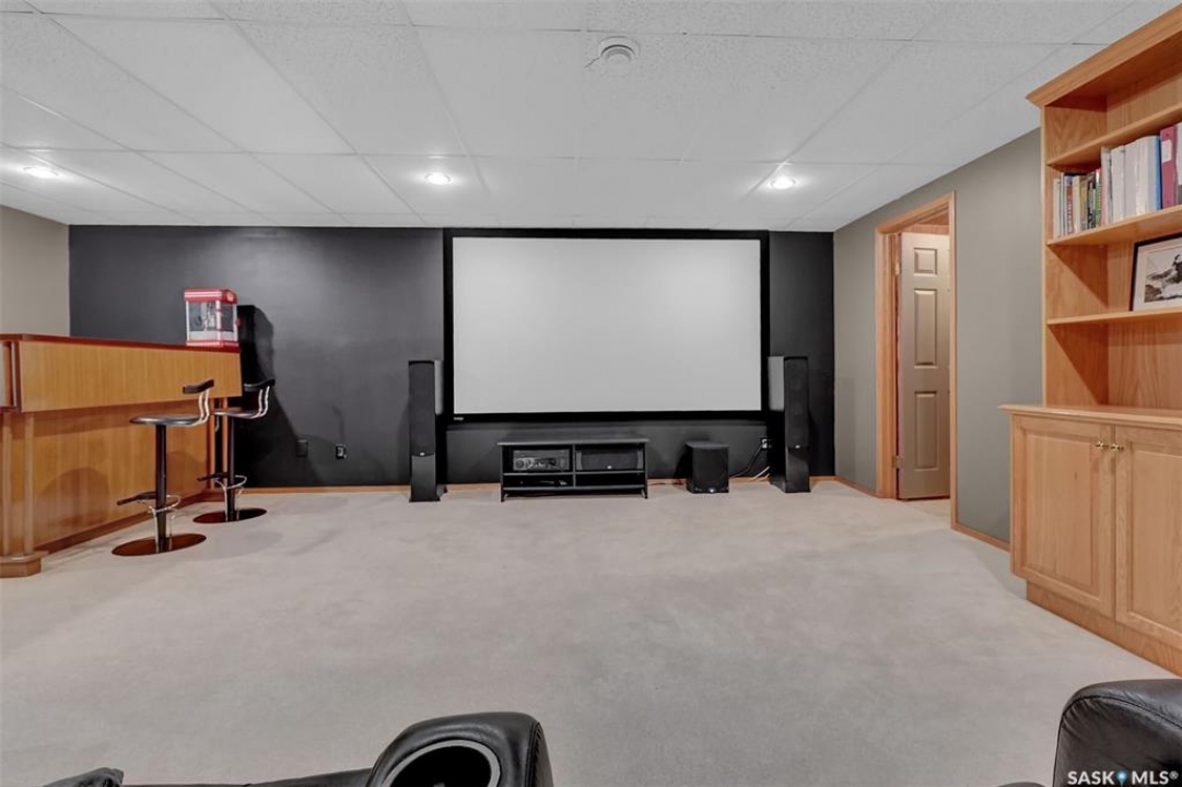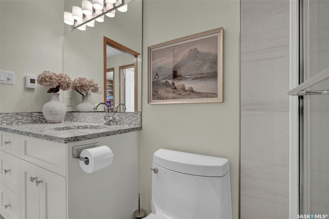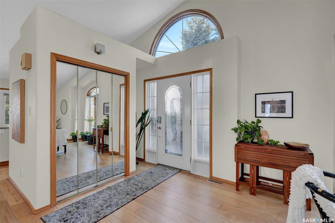 Welcome to sophisticated executive living in the prestigious gated community of Lakeshore Court. This timeless contemporary 3 bedroom plus office bungalow has been completely redesigned to offer a luxurious open concept layout with impressive vaulted ceilings and premium engineered oak hardwood flooring throughout the main level. The bright front living room welcomes you with a large picture window that fills the space with natural light. The beautifully designed kitchen is both stylish and functional, featuring maple cabinetry with soft-close drawers and cabinets, a large island with additional storage, stainless steel appliances, tiled backsplash, and Cambria quartz countertops. The elegant dining area is ideal for entertaining, highlighted by a skylight and stunning Swarovski crystal chandelier. The inviting family room offers a warm atmosphere with a fireplace adorned in classic Italian tile. The spacious primary suite is a private retreat with a wall-to-wall ergonomic closet system and a spa-inspired 5-piece ensuite featuring dual sinks, Cambria quartz countertops, heated tile floors, heated towel rack, a Kohler VibrAcoustic soaking tub, and a large 10mm glass tiled shower. A second bedroom, dedicated office with built-in bookshelves, and a conveniently located 4-piece bathroom complete the main level. The laundry room offers tiled flooring, abundant cabinetry, and direct access to the double attached garage. The fully developed basement is perfect for entertaining with a large recreation room currently set up as a home theatre with projector, built-in cabinetry, and bar area. This level also features a third bedroom, 3-piece bathroom, cedar storage room, and a large utility/storage area with HRV system, newer high-efficiency furnace, humidifier, air conditioner, steel beam construction, and web trusses. This exceptional home is located in one of the city's most exclusive communities and ready for new owners to call it home.