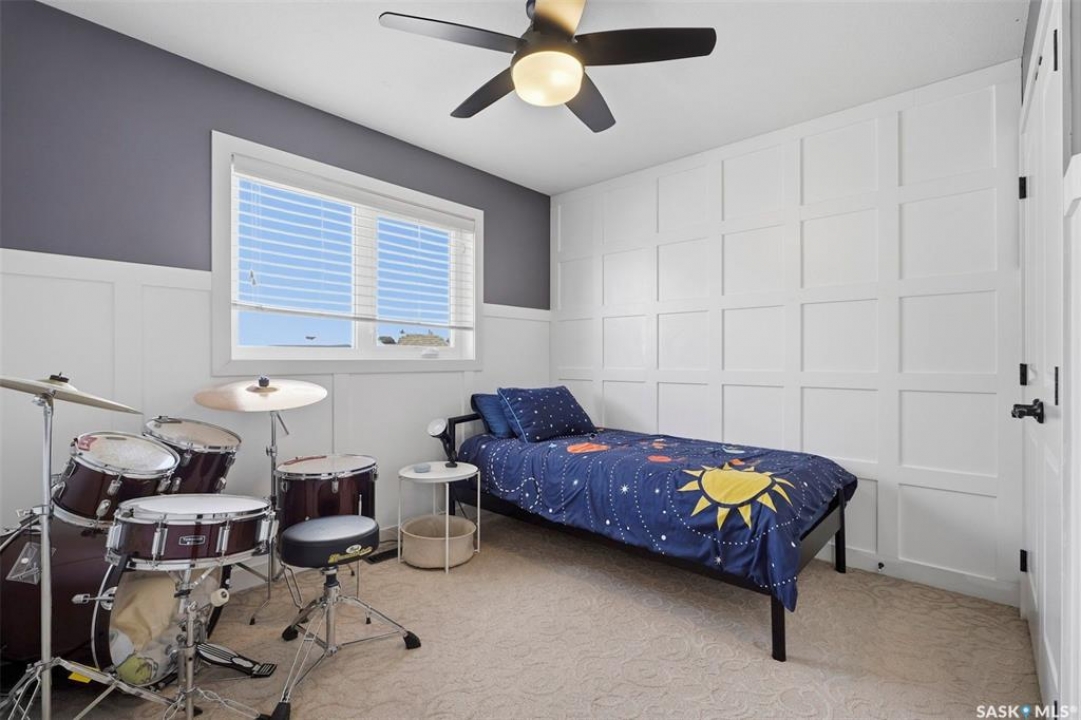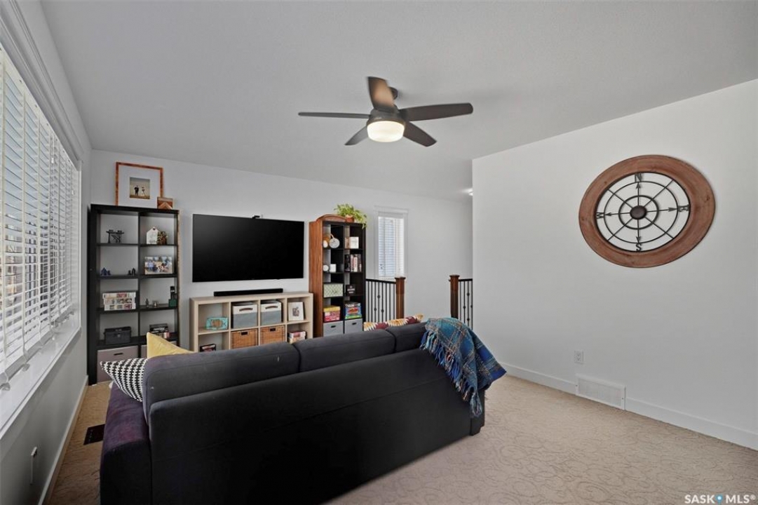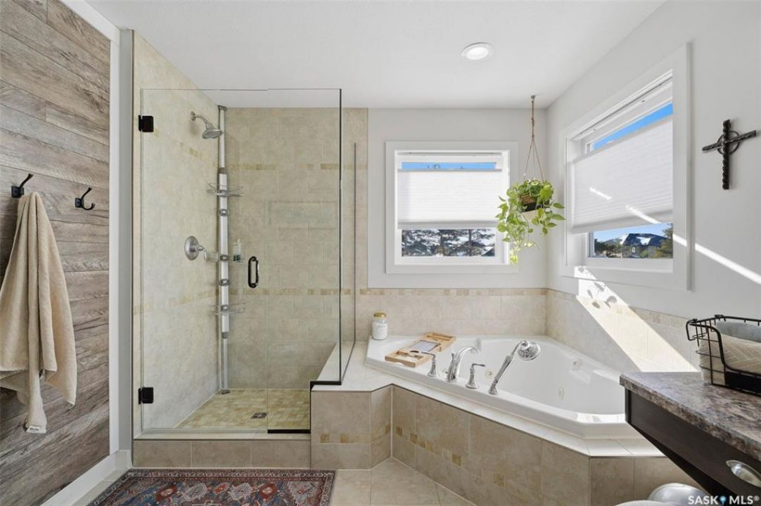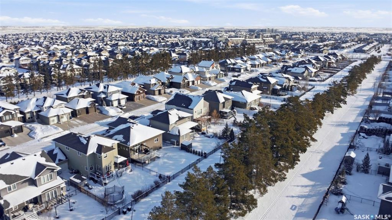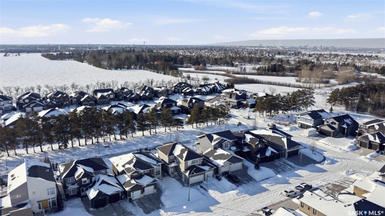 Welcome to 516 Atton Lane, ideally located backing the large, iconic trees on one of Evergreen's most sought-after streets, with nearby walking trails, northeast swale, forestry farm, and convenient elementary school bus stops just steps away! This 2,030 sq. ft. 3+1 bedroom, 4-bath home features a triple-garage and a bright south-facing backyard with beautiful views, perfect for recreation, gardening, and entertaining. The main floor features hardwood and tile flooring, with ample natural light and open-concept living, perfect for family gatherings. The kitchen features white shaker cabinetry, large central island, corner pantry, quality stainless steel appliances, including a gas range, corner sink, and plenty of storage. The living room includes a gas fireplace with a stone surround. The main floor of this home offers ample storage with two large closets and additional cabinetry in the laundry room. The second level features a large bonus room with huge windows, providing a versatile space; two good-sized bedrooms and large linen closet. The massive primary bedroom offers beautiful views of the green space, large walk-in closet with built-in cabinetry, and luxurious four-piece ensuite with separate tiled shower, vanity, and corner jetted tub. The fully developed basement could be used as a potential secondary living space with its own separate entry from the garage. The basement includes a family room with an electric fireplace, built-in speakers, and a fabulous wet bar with cabinetry, mini fridge, dishwasher, and 4th bedroom; an office/den; 3-piece bath with heated tile floors and walk-in shower. One of the standout features of this property is the finished, electric-heated triple-attached garage, with direct overhead door access to the backyard. Additional features include central air conditioning, central vac, on-demand water heater, composite decking, covered pergola, and a large shed. Call your Saskatoon agent today to view this amazing home before it's gone!
