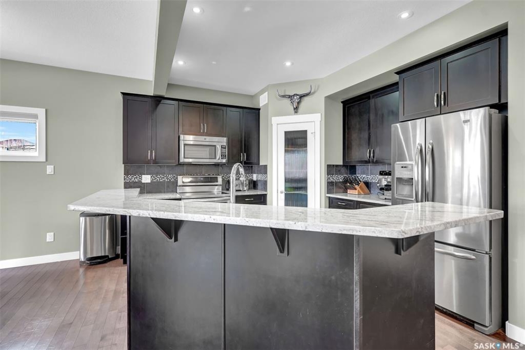 Step into this stunning family home by Daytona Homes, featuring the sought-after Benz floorplan that is designed with space, comfort, and style in mind. Upstairs, you'll find four generously sized bedrooms along with a massive bonus room, perfect for a growing family or additional living space. The home is loaded with upgrades, including stainless steel appliances, granite countertops, and a striking feature wall with expansive windows framing a cozy gas fireplace. The basement is already 70% finished, with a fifth bedroom framed and drywalled-offering great potential for future development. In addition, enjoy the convenience of a large heated garage and a spacious deck that's ideal for entertaining. Located in a fantastic neighborhood, this home truly has it all.