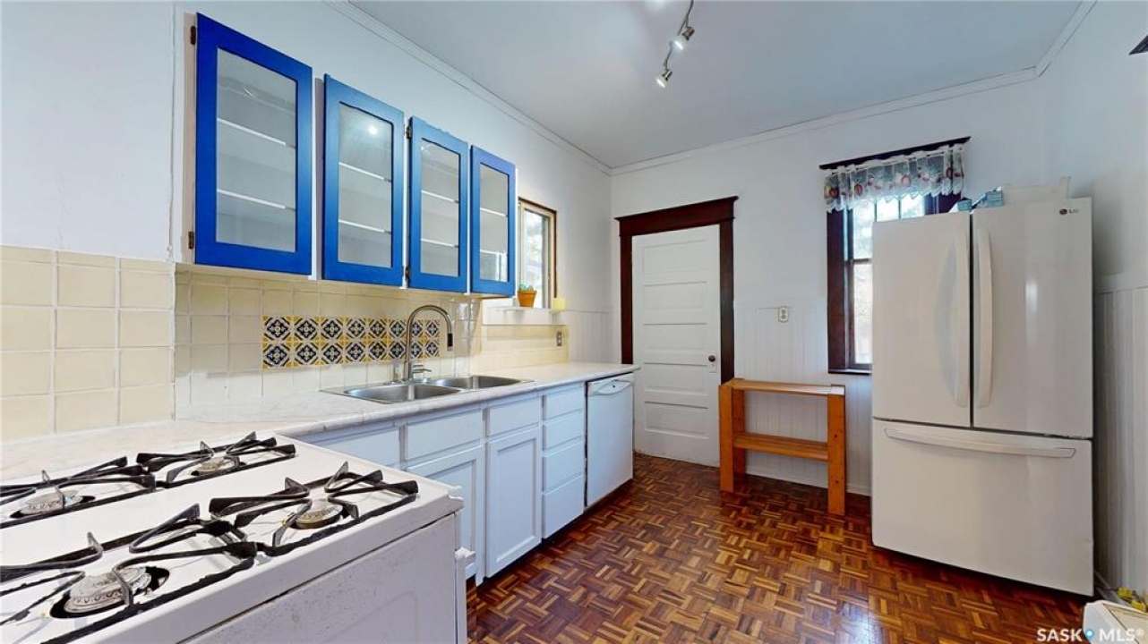 Location, Location, Location! Welcome to this charming character home in Regina's highly desirable Cathedral neighborhood. Known for its vibrant community and incredible walkability, this area boasts one of the best walk scores in the city. Enjoy tree-lined strolls to nearby coffee shops, restaurants, grocery stores, schools, and entertainment. Both Downtown Regina and Wascana Park are just a short walk away. Built to last, this home retains its original charm while showcasing thoughtful updates that enhance its timeless appeal. Beautiful hardwood flooring runs throughout, accented by freshly refinished doors and window frames. The spacious kitchen features a gas range, built-in dishwasher, and plenty of storage — ideal for both everyday cooking and entertaining. Vaulted ceilings in the main living spaces create an airy, open feel. Recent updates include fresh paint throughout, new faucets and lighting fixtures, and shingles replaced within the last 6 years. Upstairs you'll find three generous bedrooms, including a primary suite with a walk-in closet. Another large bedroom offers the opportunity to add a door leading to a potential balcony overlooking the tree-lined street. Step outside to your private backyard oasis, perfect for entertaining or relaxing. A large deck overlooks the lawn, outdoor fireplace, raised garden beds, and mature cherry and apple trees alongside blooming yellow roses. This rare Cathedral gem blends historic character with modern updates — all in a location that's second to none. Don't miss your chance to make it yours!