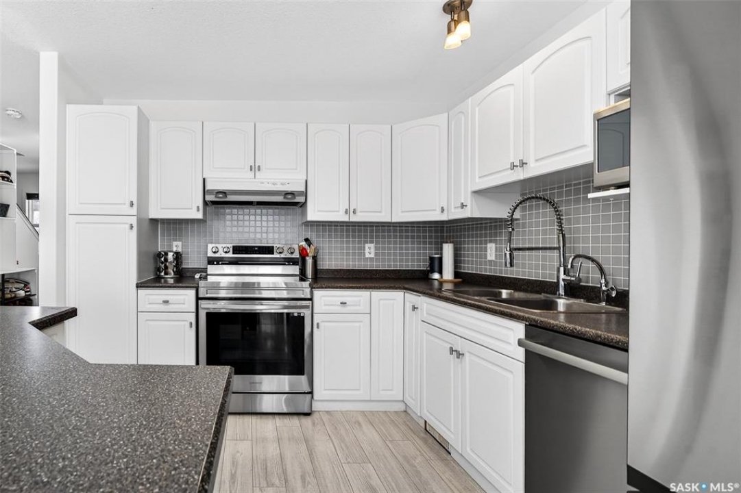 Welcome to this beautifully updated townhouse-style condo in the sought-after community of Chester Estates! Stylish, modern, and completely move-in ready! This is the whole package and even comes with Garage parking!! This home offers a bright open-concept main floor designed for comfortable living and entertaining. Newer flooring runs throughout the main level, while large windows fill the space with natural light. The contemporary kitchen is sure to impress with crisp white cabinetry, a tiled backsplash, and newer high-end stainless steel appliances. The open layout flows seamlessly into the dining and living areas, with patio doors leading to your private deck. The perfect spot to relax or enjoy summer evenings. A convenient main-floor bathroom and direct entry into your private garage completes the space. Upstairs you'll find two generous bedrooms, both featuring newer flooring. The primary bedroom offers a built-in desk area, a spacious walk-in closet, and a large ensuite bathroom creating a comfortable private retreat. The second bedroom is also well-sized and includes its own large walk-in closet. The fully finished basement adds valuable living space with a cozy family room, a convenient laundry area, and a mechanical room featuring a newer water heater. Located close to shopping, restaurants, and everyday amenities, this home offers the perfect balance of comfort and convenience. Condo fees include yard maintenance and snow removal, building insurance and water making this an ideal low-maintenance lifestyle opportunity. Don't miss your chance to own this beautifully updated home in Chester Estates!