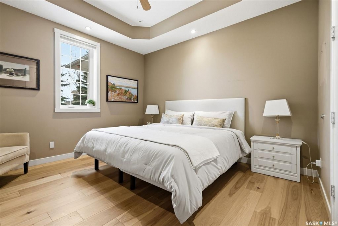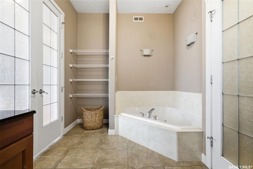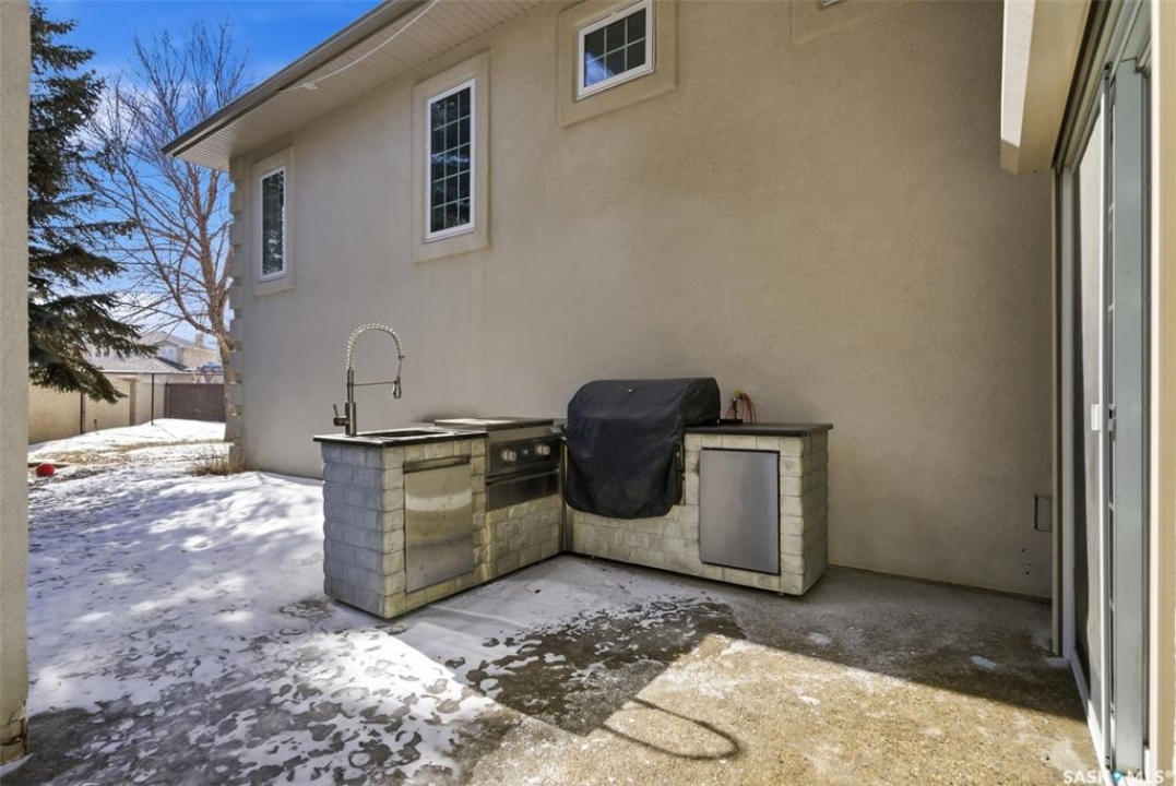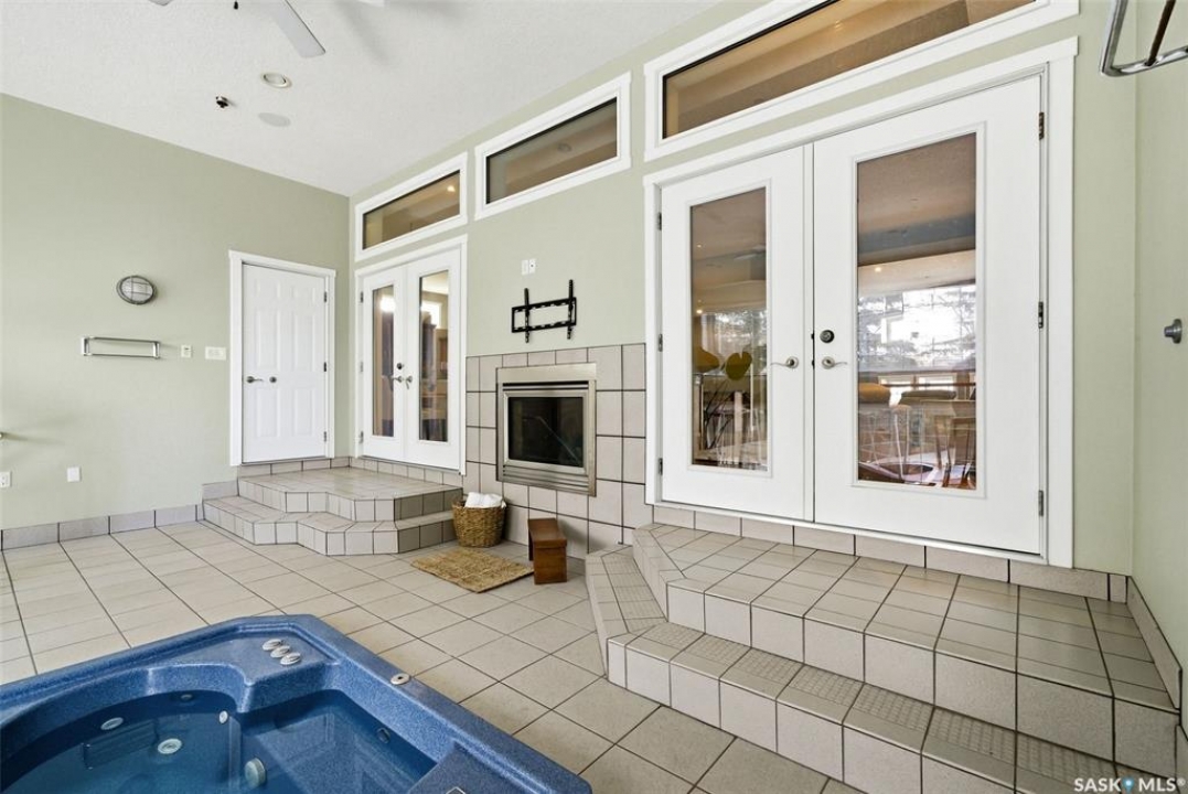 One of a kind in every sense, this custom built home was thoughtfully designed from the ground up. Offering over 3,600 sqft on the main level alone, from the moment you step inside, the scale and quality are undeniable. Featuring 10-ft ceilings & 8-ft doors throughout, hardwood flooring, dimmable pot lighting & expansive windows creating a bright, airy, space that feels more than grand. In the heart of the home, you'll find a chef's kitchen with cherry cabinetry, granite countertops, ceramic tile & walk-in butler's pantry. The open-concept kitchen, dining & living rm layout flows into the stunning four-season sunroom with poolspa, separated by a 2-way gas fireplace creating the coziest space. The main level is complete with 4 generous sized bedrooms with ceiling fans, walk-in closets & direct access to a bathroom. 2 more bedrooms & another bathroom on the fully developed lower level, where you will also find a projector & full-screen theatre setup, pool table, gas fireplace & wet bar complete with granite top, sink, mini-fridge & dishwasher. The perfect space for teenagers, a growing or extended family & friends. Comfort and efficiency were top priorities in the design with radiant in-floor heating, powered by a boiler system & furnace (2023), air exchanger & humidifier. Additional features include reverse osmosis. air exchanger &humidifier, built-in sound system, 200-amp service, backup generator, electric roll-up security shutters, cold storage &built-in fire sprinkler system. The oversized triple garage (tandem for 4 vehicles) includes a separate 125-amp panel, floor drain, side overhead door for backyard access, and a loft space ideal for a workshop. Outside, the expansive crescent lot is fully fenced yard with mature trees, fenced garden & outdoor kitchen. Located on a quiet cul-de-sac & steps from Jack Mackenzie &St.Gabriel, Sandra Schmirler Leisure Centre &all east-end amenities. A truly distinctive property in one of Regina's most established neighborhoods.