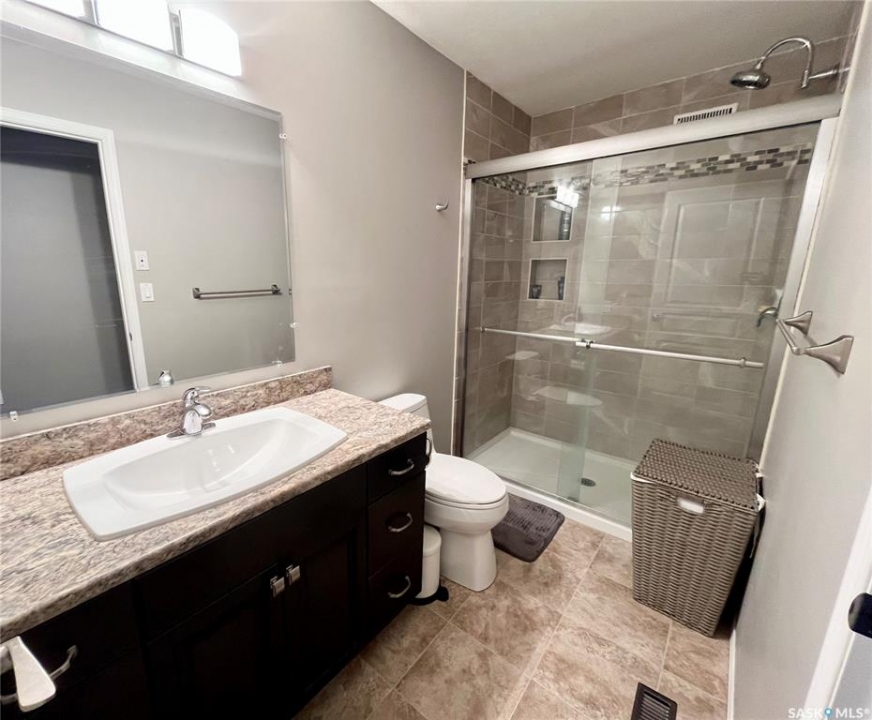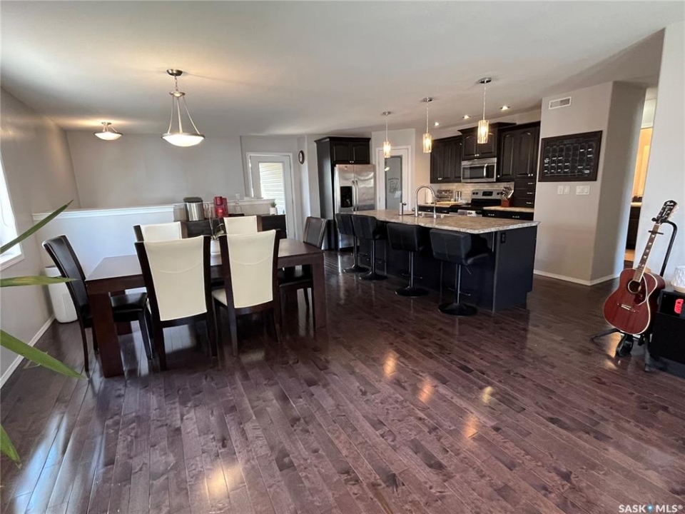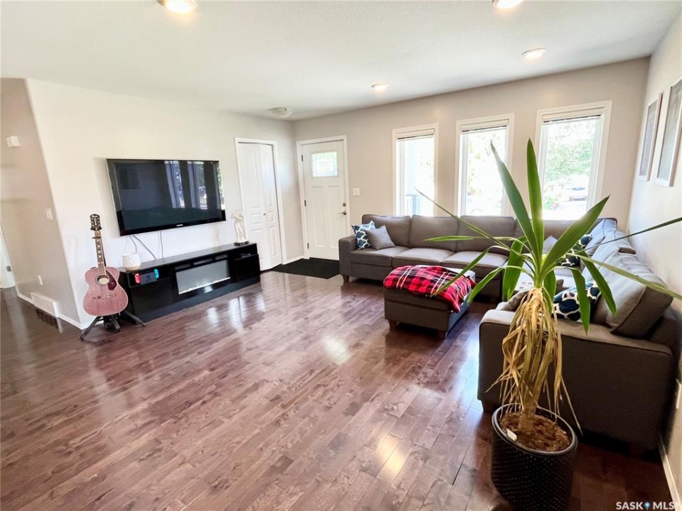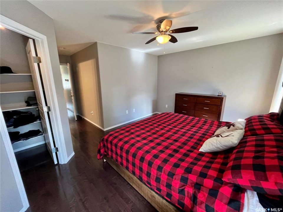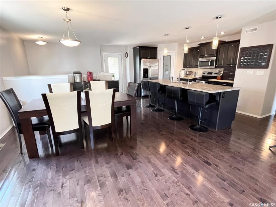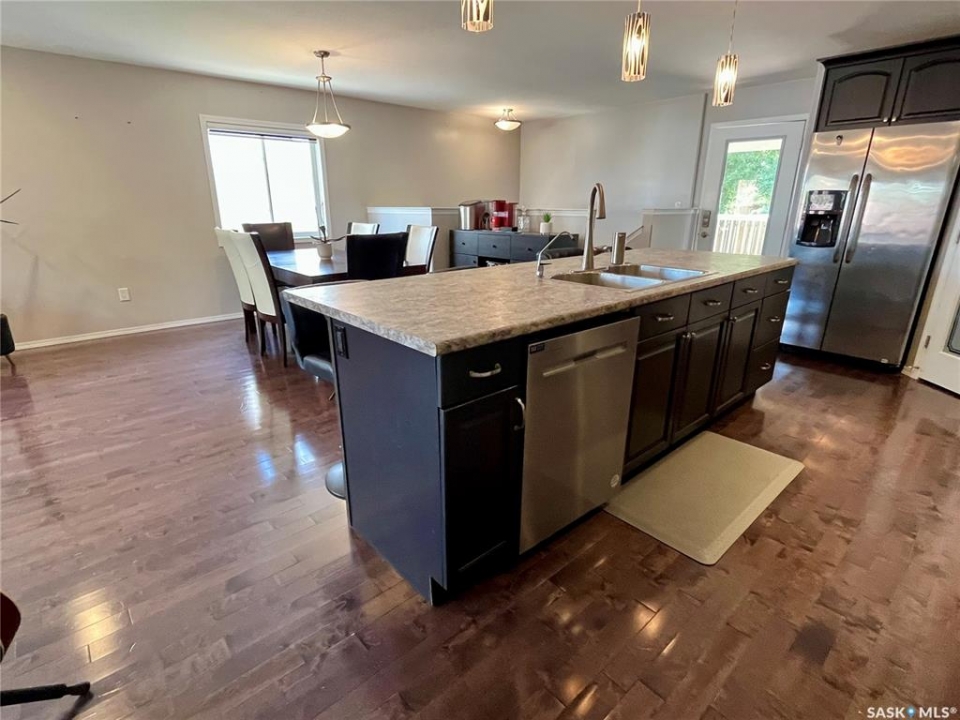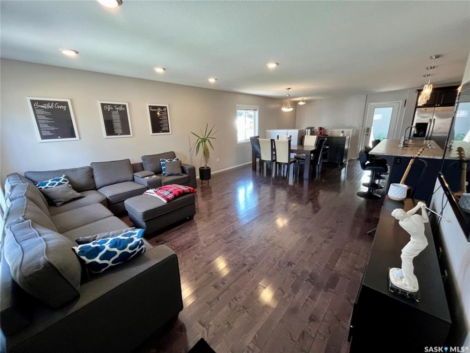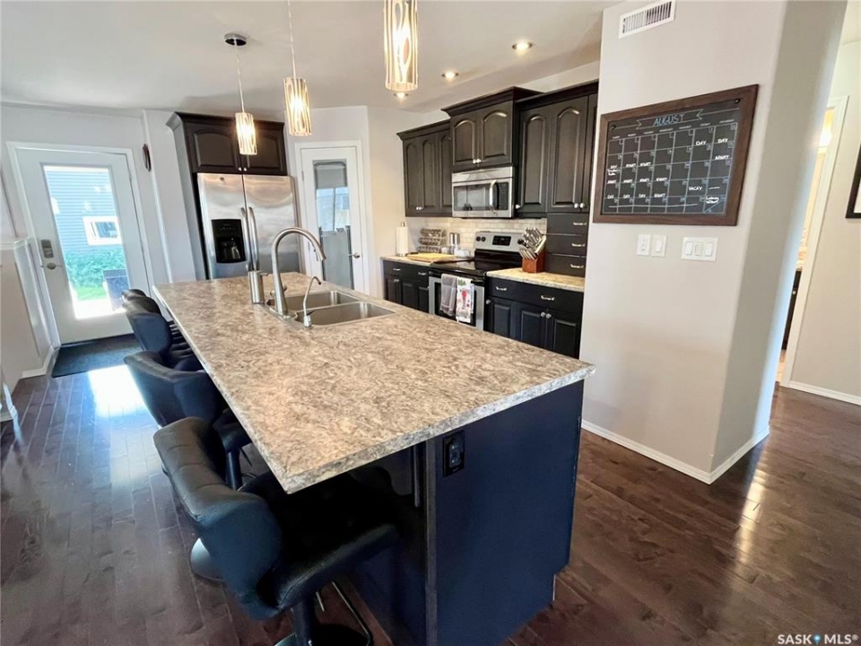 Step into this beautifully maintained 2013-built home offering 1,268 sq ft of thoughtfully designed living space, perfectly blending comfort, style, and functionality. The open-concept main floor features a stunning kitchen and living area anchored by a large hosting island complete with sink, garburator, and a reverse osmosis drinking water system (2021), also connected to the fridge. A convenient corner pantry, sleek stainless steel appliances, and rich hardwood flooring throughout elevate the space. The main level boasts two spacious bedrooms and two full bathrooms, including a dreamy primary retreat with double closets, a walk-in closet, and a beautifully appointed 3-piece ensuite featuring a full walk-in tiled shower with glass enclosure. Downstairs, the bright and fully finished basement offers a generous recreation room, two large bedrooms with large windows, a full bathroom with linen storage, and a combined laundry and utility room—perfect for growing families or hosting guests. Additional highlights include central air conditioning, air exchanger, new hotwater tank (2024), and a water softener installed in 2021. Outside, you'll find a 24' x 24' heated detached garage (built in 2014). Private yard and 10' x 14' covered deck with a natural gas BBQ hookup and retractable privacy screen, overlooking a fully fenced and beautifully landscaped backyard. Major updates include underground water and sewer line replacement from the home to the street (2021), along with concrete driveway (2021).