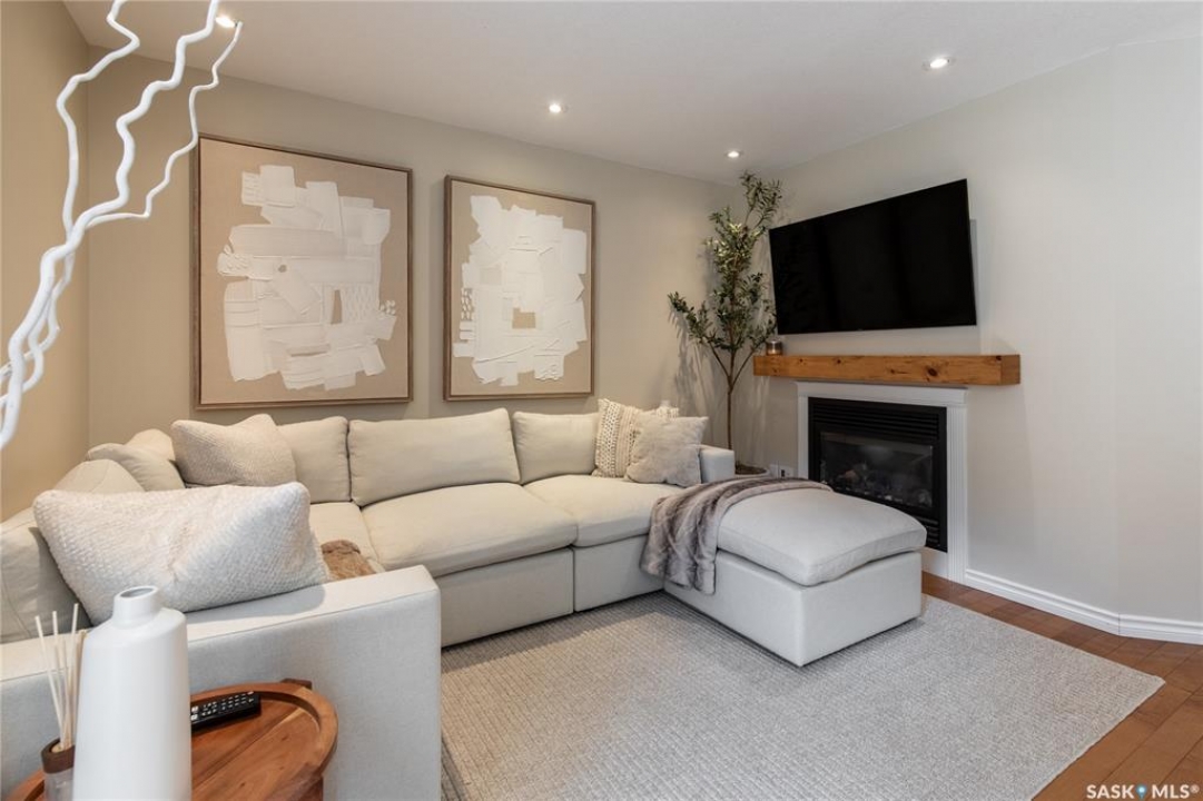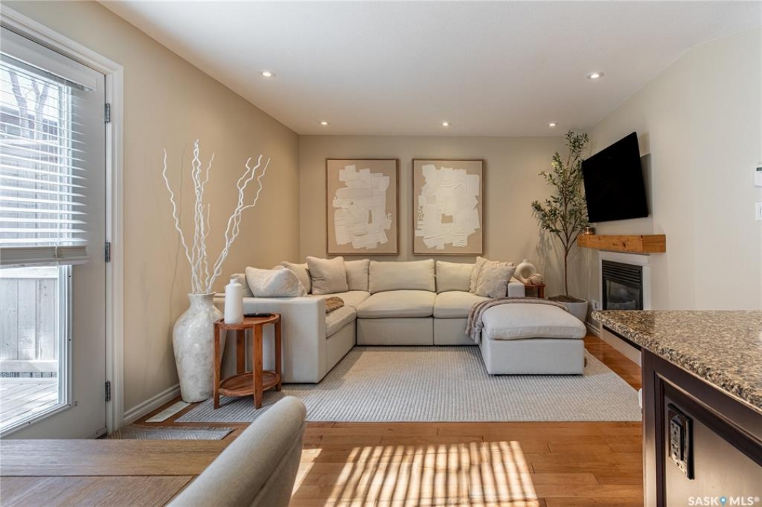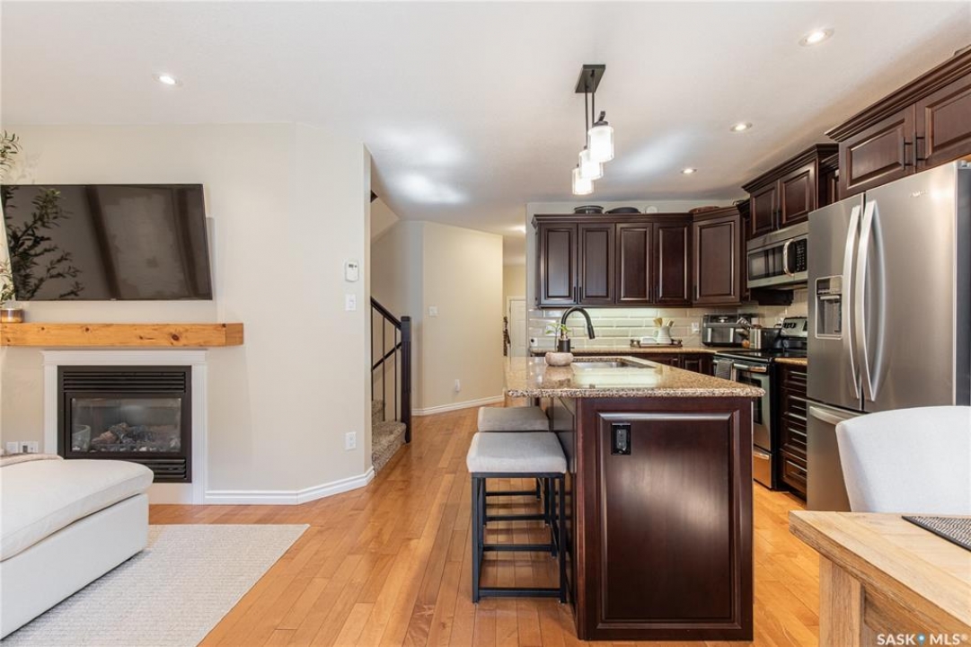 Modern, elegant, and effortlessly functional. This 3-bedroom, 4-bathroom condo truly stands out. Step inside to a bright, welcoming foyer that leads into a stylish powder room and then into an open concept, sun-filled kitchen, dining room, and living room. The entire home has just been professionally painted, giving it a fresh, move-in-ready feel. The kitchen has quartz countertops, a glass subway tile backsplash, a new fridge and dishwasher, a custom pantry, updated cabinet hardware, and modern taps and faucets, giving it a clean, elevated look. The cozy living room, anchored by a gas fireplace, opens onto a private little deck—perfect for relaxing at the end of the day. Upstairs, you'll find a serene primary retreat with a spacious closet and a roomy 4-piece ensuite, along with two additional bedrooms. The fully finished basement adds even more versatility, offering a great flex space for a media room, home gym, or office, plus extra storage and a modern 3-piece bathroom. Additional features include an attached single-car garage, new light fixtures throughout, and convenient guest parking. This well-managed condo has a $350/month fee that includes water, sewer, and snow removal, making for easy, low-maintenance living.