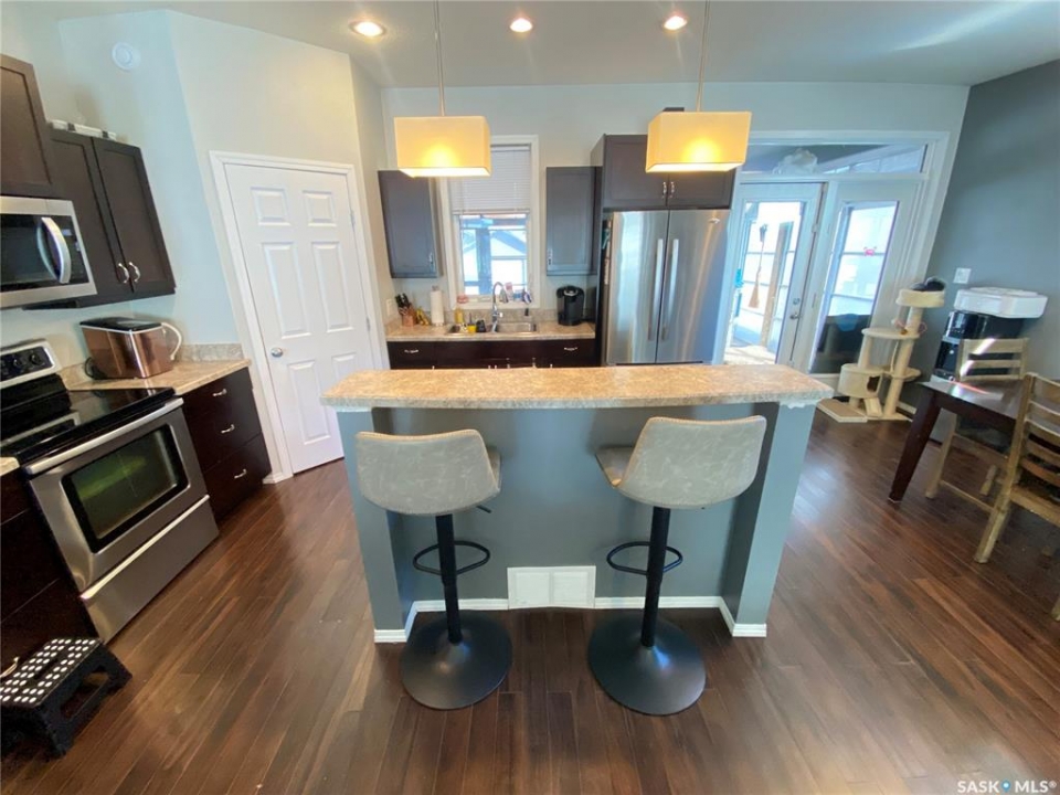 Terrific opportunity for your family located at 703 Barber Crescent. This raised bungalow features your attached double car natural gas heated garage along with your enclosed backyard deck overlooking your fenced property. As you enter the home, there is a large foyer area with direct entry access to your garage. The open concept design offers tremendous amounts of space, large windows in the living room allowing natural light to fill up the main floor. Gas fireplace in the living room also for your comfort. The dining area off the kitchen, which contains a sit-up island offers generous amounts of cabinet and countertop space. Full line up of stainless-steel appliances along with access to your enclosed deck to fire up the smoker or BBQ. The primary bedroom allows for king-size furniture, walk in closet along with your 4-piece ensuite bath. Also contains access to your covered deck outside. 2 additional good-sized bedrooms with walk-in closets in each room. to host your queen beds along with your 4-piece main bath and laundry on the main floor. Downtairs the large rec room provides terrific space for the home theatre and games tables to enjoy with the family. 2 additional bedrooms along with another 4-piece bath. Central Air, Water Softener, Air exchanger additional features in your home along with additional storage space. Located close to Assiniboia Park Elementary School. Terrific location for your family. Make it yours today!