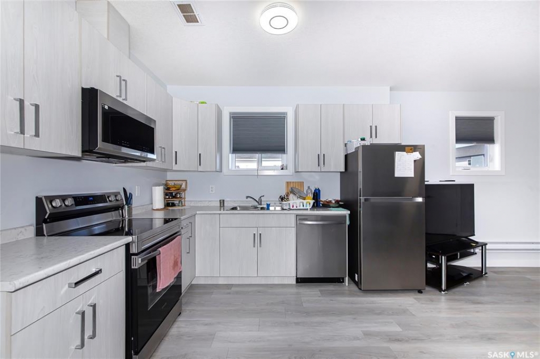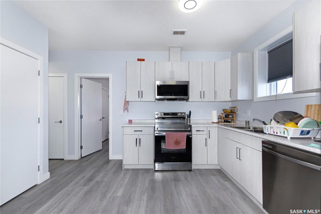 Elevate your lifestyle in this stunning 1,351 sq. ft. bi-level that perfectly blends modern style, functional design, and income potential. Featuring 3 bedrooms and 3 bathrooms, along with a bonus living/family room in the basement and the added benefit of a 2-bedroom legal basement suite, this home offers both comfort and financial flexibility. The bright, open-concept living space is thoughtfully designed, highlighted by a spacious kitchen with an oversized island and stainless steel appliances. A cozy fireplace anchors the living area, creating a warm and inviting setting for family and friends. The main level includes a primary bedroom with its own ensuite, offering a private retreat, along with two additional bedrooms and a full bathroom to accommodate the whole family. The basement features a dedicated living/family room and a 3-piece bathroom reserved for the primary owner's use—ideal for entertaining or additional living space. What truly sets this property apart is the fully developed legal basement suite, complete with two bedrooms, a well-equipped kitchen, and a separate entrance—perfect for guests, extended family, or generating rental income. A double-attached garage provides added convenience and protection during Saskatchewan's winters. Combining modern finishes, a versatile layout, and a legal suite, this home presents an excellent opportunity for both homeowners and investors. Measurements are taken from blueprints; buyers and their agents to verify. The main floor has never been lived in, and the basement suite is currently rented.