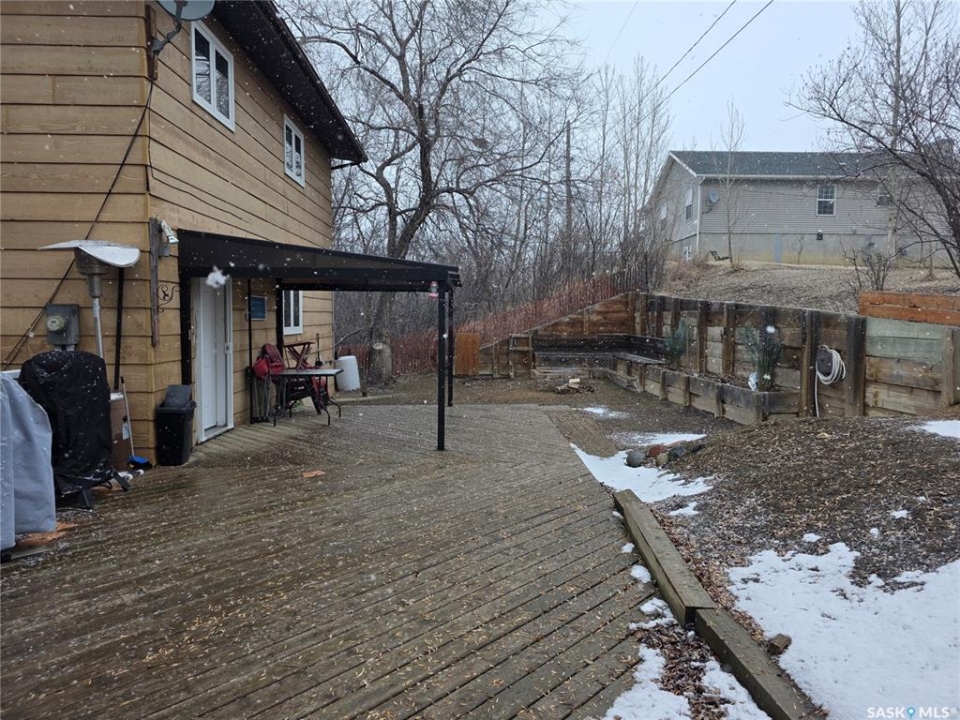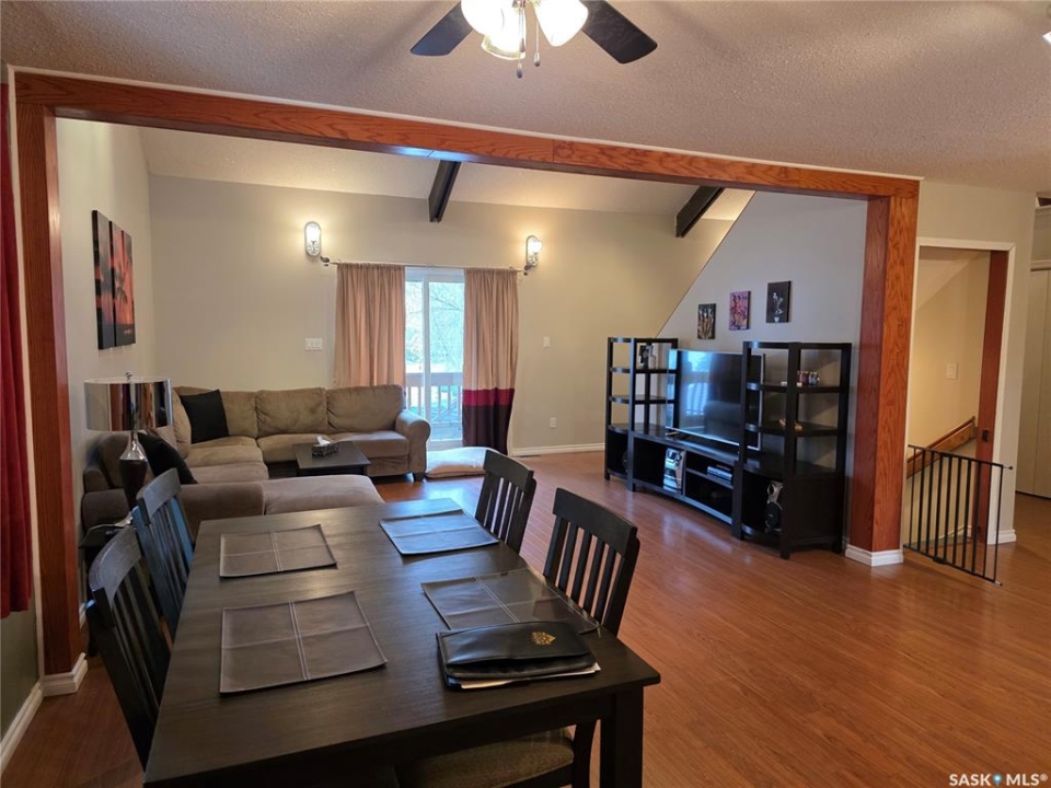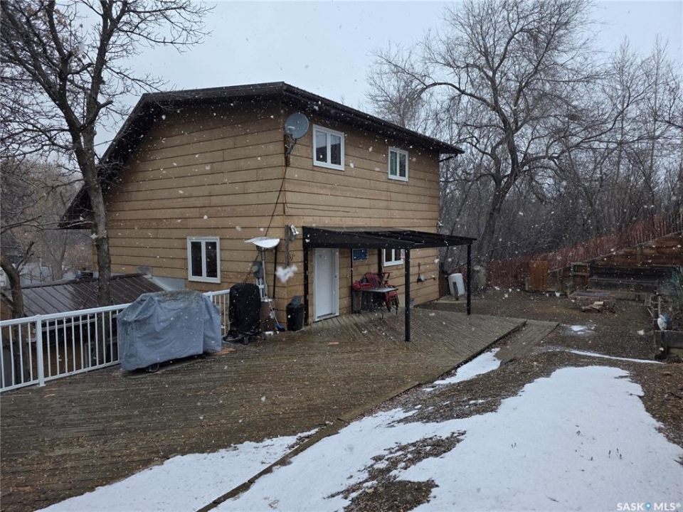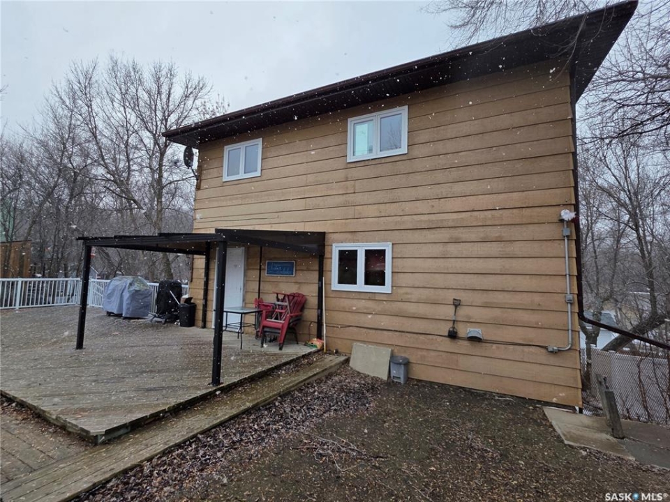 Welcome to your family's ultimate lake escape; where every weekend feels like a getaway & every gathering becomes a lasting memory. Located in the Resort Village of South Lake on Buffalo Pound Lake, this year-round home is the perfect blend of comfort, space, & lifestyle. Designed with a spacious 2-storey walk-out layout, there's room for everyone to relax & feel at home. Pull into the heated double attached garage with workshop space, unload the lake toys, & step into a home made for connection. The lower level is an ideal guest retreat, featuring a cozy family room, 2 versatile dens, & a full bathroom; perfect for hosting family & friends. Upstairs, the main living space is bright & inviting with soaring vaulted ceilings, exposed beams, & large windows that fill the room with natural light. The open-concept design flows seamlessly from the living room to the dining area & spacious kitchen, making entertaining effortless. Main floor laundry & a half bath add everyday convenience. The top floor offers 2 comfortable bedrooms & a full bathroom; perfect for unwinding after a day at the lake. Step outside to your private backyard oasis, complete with a large deck & bonfire area; made for summer nights, laughter, & making memories. There's plenty of space for boats, RVs, & all your lake lifestyle extras. Enjoy quiet mornings with coffee on the deck, afternoons watching the kids & dog play, & evenings spent with the people who matter most. Ideally located just a short walk from the park, boat launch, & beach. This isn't just a home, it's your year-round lake retreat.