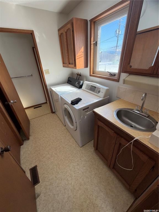 Welcome to this solidly built and well-maintained home offering 1,064 square feet on each level—perfectly suited for a growing family or those looking to downsize without compromising space. The main floor features a bright, open-concept layout that creates a warm and inviting atmosphere. The spacious kitchen is the heart of the home, complete with a large island and ample cabinetry, seamlessly flowing into the dining and living areas—ideal for everyday living and entertaining. Conveniently located just off the foyer, you'll find main floor laundry along with a handy 2-piece bathroom. Also on the main level are two comfortable bedrooms and a generously sized 4-piece bathroom, offering both functionality and comfort. Downstairs, the fully developed basement expands your living space with a large family room, an additional bedroom, and a 2-piece bathroom located within an oversized storage area—perfect for all your seasonal items or future development potential. Outside, enjoy a private lot with room to relax or garden, along with a single detached garage for added convenience. This home combines solid construction, thoughtful layout, and versatile space—making it an excellent option whether you're starting out, settling down, or investing.