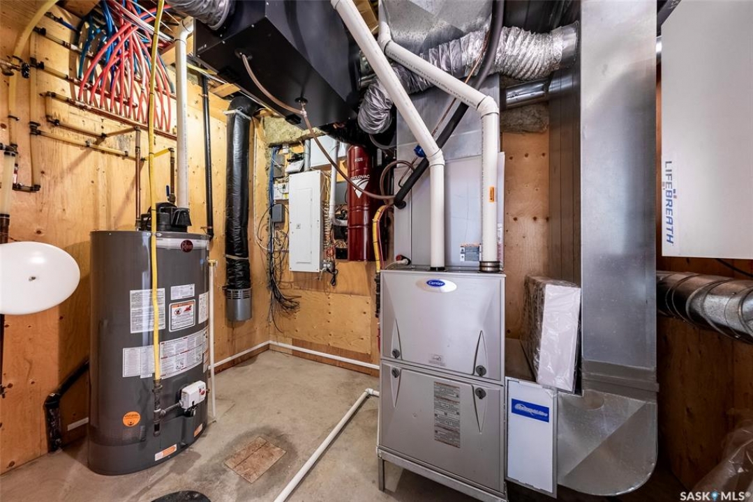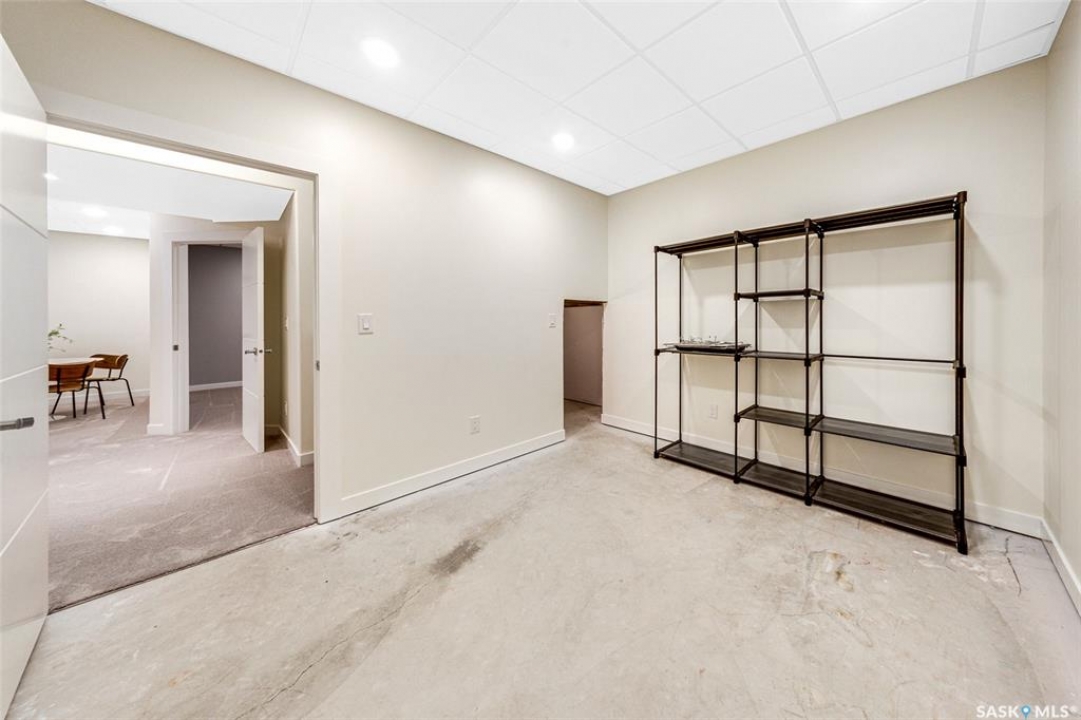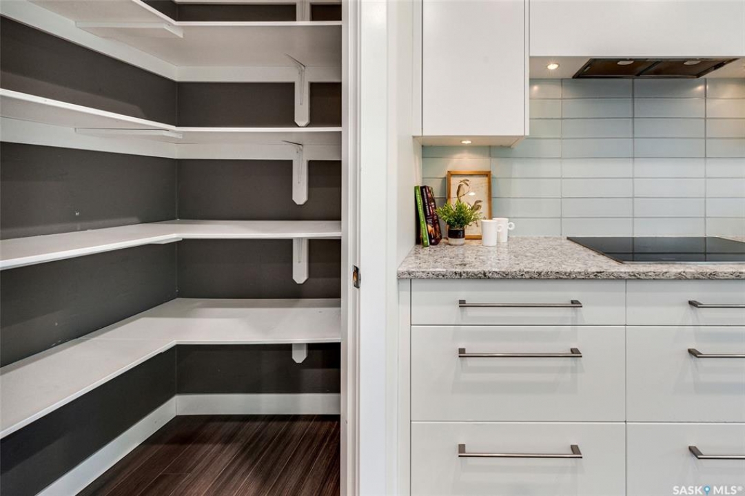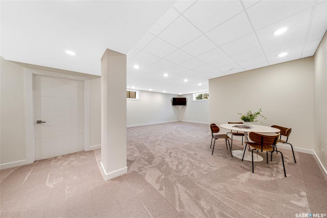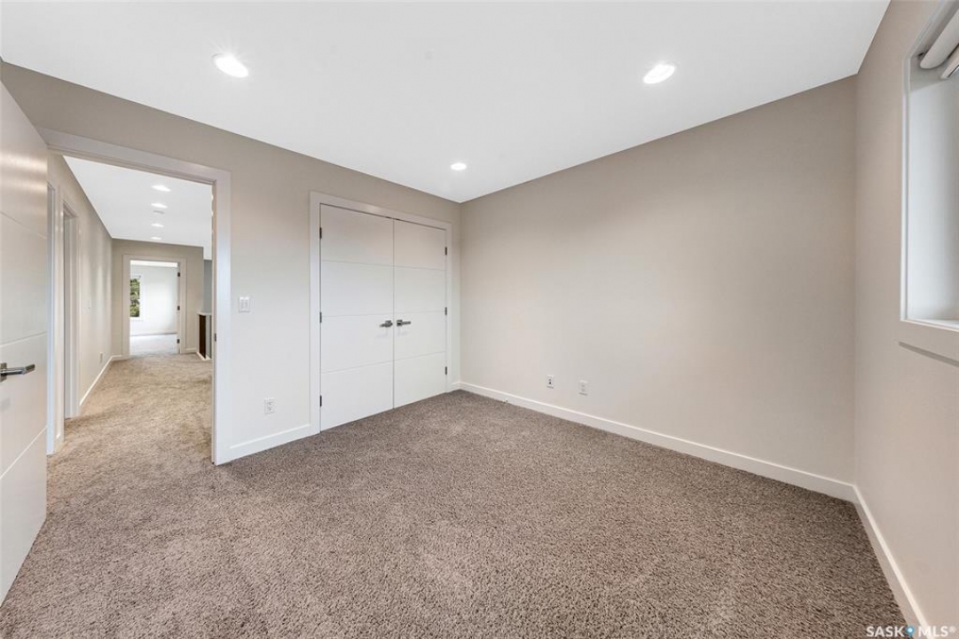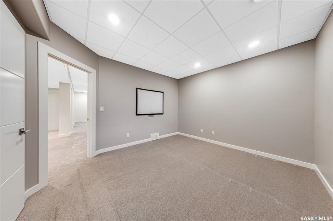 Tucked away on one of Evergreen's most desirable crescents, this exceptional two-storey home blends luxury, function, and timeless elegance on a massive pie-shaped lot backing the walking trails lined with mature Scots pine trees. From the striking curb appeal to the timeless finishes and extensive list of custom upgrades, every detail has been thoughtfully designed. Inside, a grand foyer leads into a living room with soaring ceilings and expansive windows that fill the space with natural light. At the heart of the home, the gourmet kitchen showcases Redl custom cabinetry, built-in Miele dual ovens with induction cooktop, quartz countertops, tile backsplash, and a large island with additional seating, seamlessly connected to the dining area overlooking the private backyard. The main floor also offers a dedicated office, a 2-piece bath, and a mudroom with direct access to the oversized heated staggered bay garage ( 28' x 22'/26') with 220v plug and hot/cold water taps. Upstairs, four spacious bedrooms await, including a luxurious primary suite with a custom walk-in closet and a spa-inspired ensuite featuring a jetted tub and steam shower—the perfect retreat after a long day. A full bathroom and convenient second-floor laundry complete this level. The fully developed basement adds versatility with a large family room and games area, a fifth bedroom, 4-piece bath, storage, mechanical room, and a future wet bar nook. Notable extras include central AC, HRV, HEPA air filter, “hide-a-hose” central vac, Control4 audio with built-in speakers throughout, and more. Outside, the expansive backyard offers endless potential for entertaining, a future pool, or simply enjoying the serenity of your private outdoor escape. Ideally situated near the Forestry Farm and zoo, an array of amenities, school bus pick up, elementary and high schools, this rare property offers the perfect balance of comfort and lifestyle in one of Saskatoon's most coveted neighbourhoods.