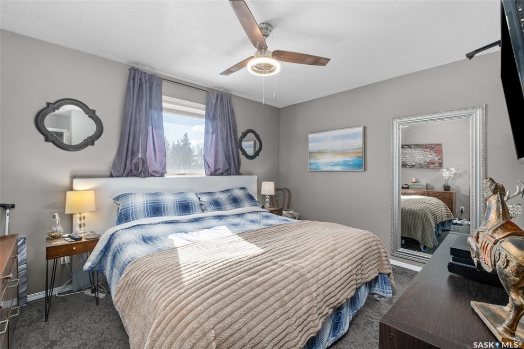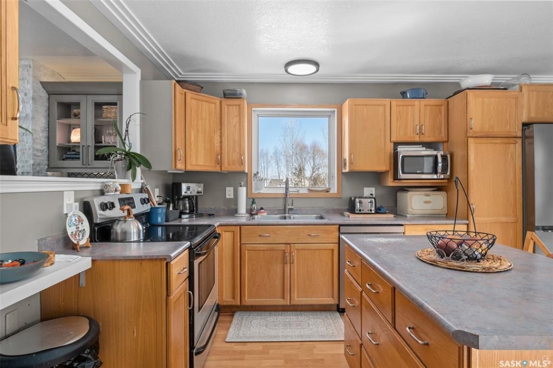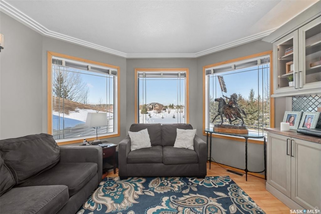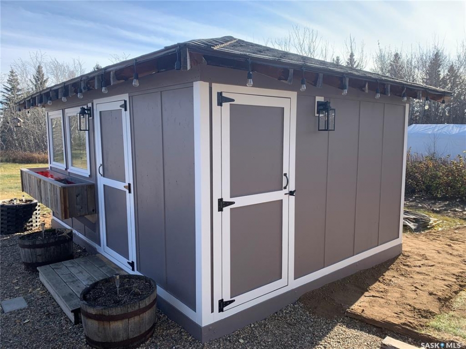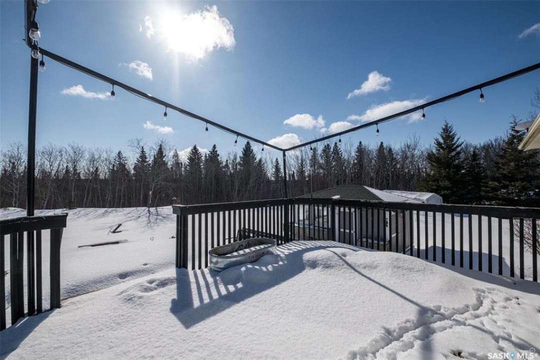 Beautiful Rm of Buckland acreage! Move in and do nothing to this tastefully re-imagined bi-level that supplies 4 bedrooms, 3 bathrooms and rests on 3.99 acres of land. The main level of the residence provides a spacious oak kitchen with a dine-at island, combined dining area and a cozy front living area that features custom built-ins and a wonderful natural gas fireplace. The lower level comes fully developed and is an entertainers dream! With a full stock kitchen/bar the lower level allows for grand entertainment and recreation within a massive family room. Additionally the lower level is equipped with loads of storage space, has high ceilings and is pouring with warm natural lighting. The exterior of the property provides the privacy acreage living has to offer, a south facing treated deck, ground level firepit and a covered hot tub hut.