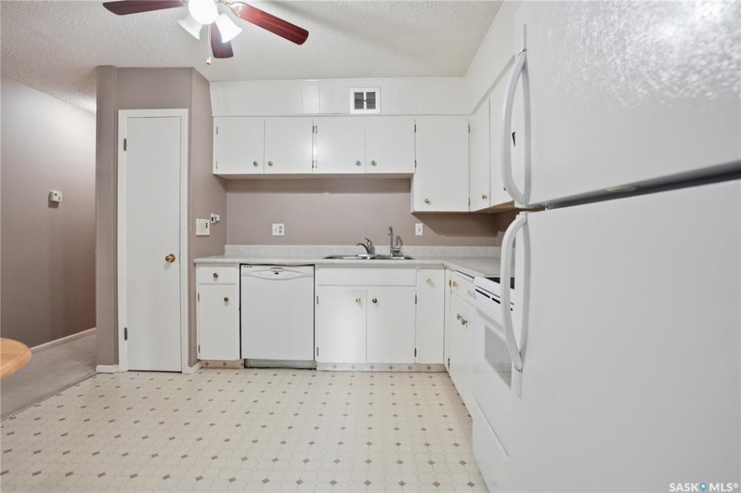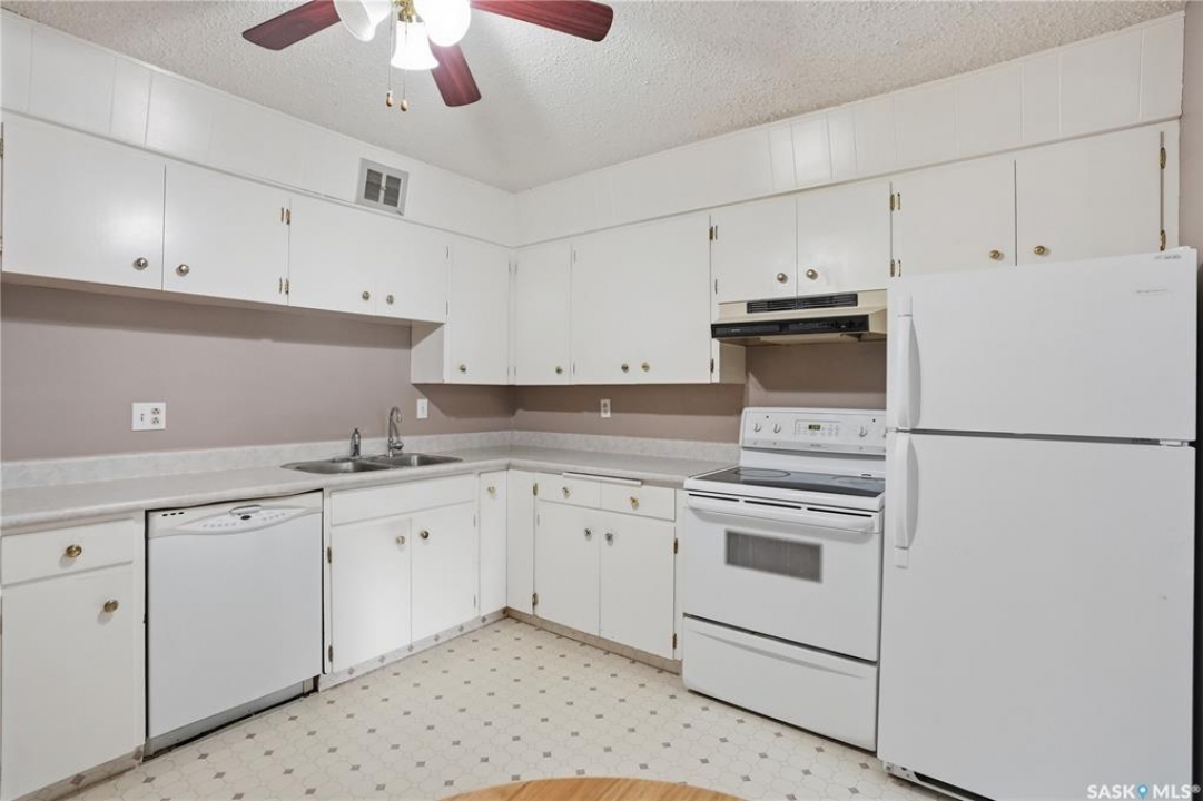 At Over 1100 sq ft this great 3 bedroom condo offers a bright living space with both West and North facing windows. Kitchen with white cabinets and included appliances, large semi-formal dining and living room. This spacious 3 bedroom unit has had the 3rd bedroom converted with double french doors into living room, the other 2 bedrooms are generous in size and the primary bedroom also offers a 2 piece ensuite. Main 4 piece bath with 3 wall tub surround and In suite laundry. Located close to many South end amenities.