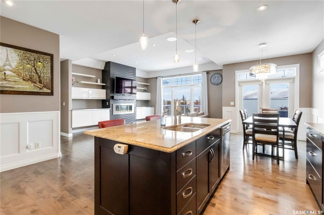 This custom 1,617 sq. ft. walkout bungalow in Willowgrove, perfectly positioned on a quiet terrace and backing the park. Bright, open main floor with den off the foyer, large living and dining spaces, and a gas fireplace with custom cabinetry overlooking green space. Kitchen offers ceiling height cabinets, granite countertops, a large island, walk in pantry, and built-in oven. Primary suite features a soaker tub, tiled shower, and walk in closet second bedroom and full bath complete the main level. Hardwood flooring throughout all main living areas and bedrooms no carpet. The walkout basement is spacious and filled with natural light, featuring a 3 sided gas fireplace, custom wet bar with sink and dishwasher rough in, two additional bedrooms, and a full bathroom. High quality laminate installed on the stairs and throughout the lower level. Additional upgrades include 9' ceilings on both levels, built in sound system in most rooms, granite throughout, central air, and central vac. Low maintenance front landscaping, upper deck and lower patio for enjoying park views and sunsets. Close to schools, walking paths, and shopping an ideal blend of location, luxury, and functionality.