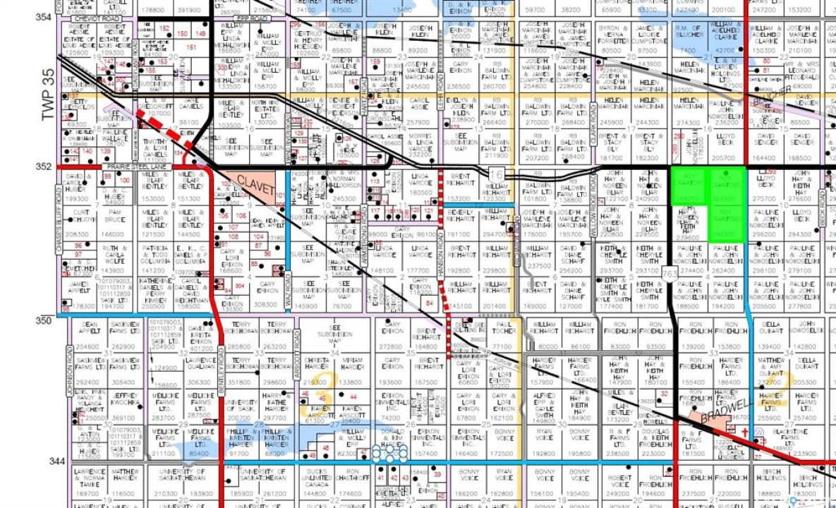 Located just 6 miles east (approximately 11 km) of Clavet, SK. This productive agricultural property sits at the corner of Highway 16 and Road 763 to Bradwell (NW 9). Parcel Options: NE 9-35-22 W3 ($881,000) NW 9-35-22 W3 ($652,500) SE 9 -35-22 W3 ($720,000) This is a solid opportunity to acquire productive farmland with a character home, established yard site, and multiple outbuildings. Ideal for expanding an existing farming operation or long-term investment. Right of First Refusal (ROFR) The land is currently rented and subject to a Right of First Refusal (ROFR) in place until February 28, 2027. Residence Built in 1916 1 � storey, wood-frame construction 5 bedrooms, 1 bathroom Full, unfinished basement Natural gas boiler heating system with radiator hot water heater Functional wood and coal range in the kitchen Wood siding exterior Storm windows and doors (approximately 60 years old) Asphalt shingle roof replaced within the last 5 years Water & Services Drilled well (105 ft deep) located on the east side of the house Shallow stock well (~20 ft deep) at the northwest corner of the farmyard (not currently in use) Septic tank located on the west side Liquid surface disposal Sewage pump requires replacement Outbuildings & Improvements Steel Quonset-style building approximately 40' x 80' with cement foundation (partially leaking) Sliding doors on one end Power was previously run from the pole but is currently disconnected Two barns (1910) Former granary currently used for hay storage (requires new shingles) Large dog pen 20' x 40' x 8' constructed with heavy chain link Two smaller heavy chain link dog pens Six older plywood bins (no contributory value) One steel bin (no contributory value)