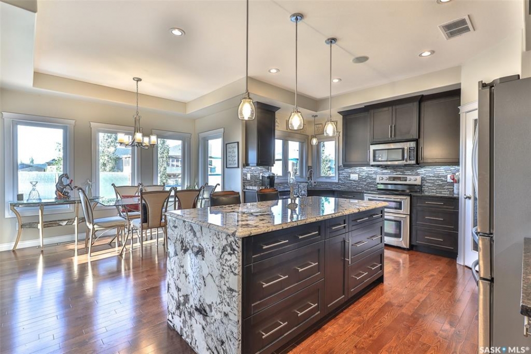 Welcome to 200 Clubhouse blvd! Conveniently located close to the Legends Golf Course, this beautiful family home is near the sports centre, grocery stores, walking trails & other amenities. Value everywhere, starting outside. Notice the massive rubber finish driveway (parks 6 cars), cozy covered front porch (South facing) & gorgeous plants/shrubs which are all on drip lines. Backyard also has an abundance of plants/shrubs (full automated irrigation system). 2 tier composite deck (partially covered), w/ built in hot tub & much privacy w/ fog glass panels. Also, a garden area, open grass area for kids to play, big shed, & a 16' gate at the back corner for pulling in boats/RV's/ trailers with ease. Main level inside has an functional layout with high-end hardwood & tons of natural light giving it a bright/crisp feel. Kitchen boasts large island w/ waterfall granite surface, under cabinet lighting & backsplash. Nat gas line plumbed in behind stove & has closed permit. Stunning white stone wall w/ nat gas fire place in living room. 3 bedrooms on 2nd level, one of which is the primary bedroom w/ big walk-in closet & luxurious en-suite bathroom (double sinks/shower/ oversized soaker jet tub). Notice the glamorous light fixture when you walk up to the 2nd level. More features: projector (included), dimmer lights, granite throughout bathrooms, main level laundry/mudroom, & nat gas to BBQ. Seller is original owner & has updated many fixtures and blinds to top notch quality. Basement has a thoughtful plan w/ cozy living room (2nd nat-gas fireplace), nook for an office area, & lots of storage. 4th bedroom can be done by simply adding one wall. Glamorous 3 piece bathroom down w/ tile walk-in shower & heated tile floor. All new carpet upstairs, new dishwasher and custom shelving in closets. Triple attached garage (finished/heated).. perfect for storing toy's. Wonderful street appeal needs to be seen in person to fully appreciate pride of ownership. This home has it all!