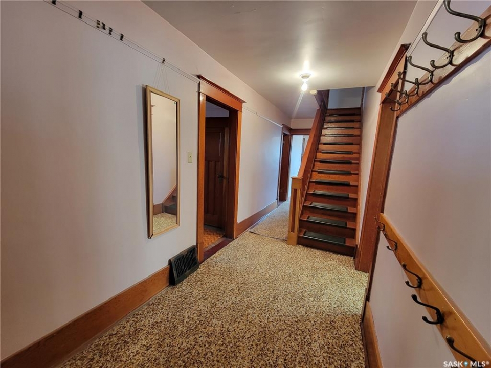 Where Timeless Craftsmanship Meets a Lifetime of Memories” Timeless Character, Cherished for Generations. Step into a home where every room tells a story and every detail reflects a lifetime of care. Lovingly maintained by one family over the years, this beautifully preserved property offers a rare blend of craftsmanship and warmth that's hard to find today. Rich fir woodwork and hardwood floors flowing throughout the home, creating a sense of continuity and charm. Sunlight pours through classic dormer windows, adding character and cozy appeal to the upper level where you'll find four inviting bedrooms, each echoing with memories of years gone by. The main floor offers a thoughtful layout designed for both everyday living and quiet moments, featuring a functional kitchen, charming butler's pantry, 3 piece bath, main floor laundry, primary bedroom, and versatile spaces like a study and sewing room. At the front of the home, a covered sun veranda invites you to slow down, sip your morning coffee, and take in the peaceful surroundings. Set on four lots, this property offers space, privacy, and future potential, all anchored by a solid poured concrete foundation that has stood the test of time. This is more than just a house, it's a home that flows with warmth, history, and heart… ready for its next chapter. Will you be the next proud owner? Call to schedule your private tour today! This Property is Sold as is* remaining contents included * Added mentions: electrical panel is 70 amp service, water supply is town water, seller states sewer is 2 stage septic tank system, old cistern in floor in basement to east side of stairs, gas water tank 2017 and mid efficient gas furnace (year unknown).