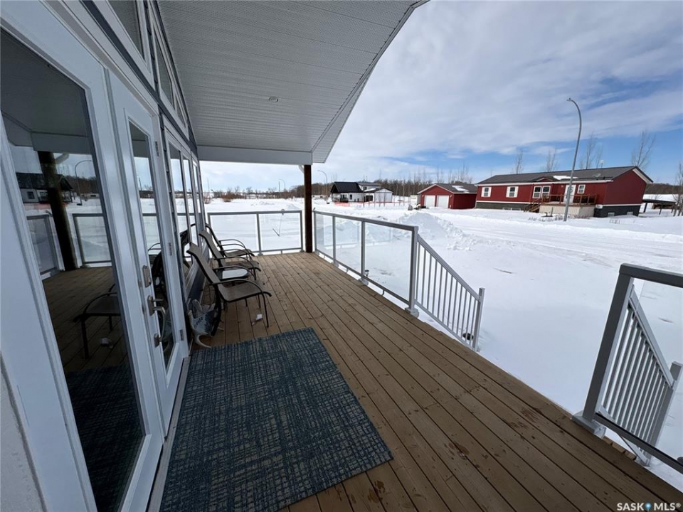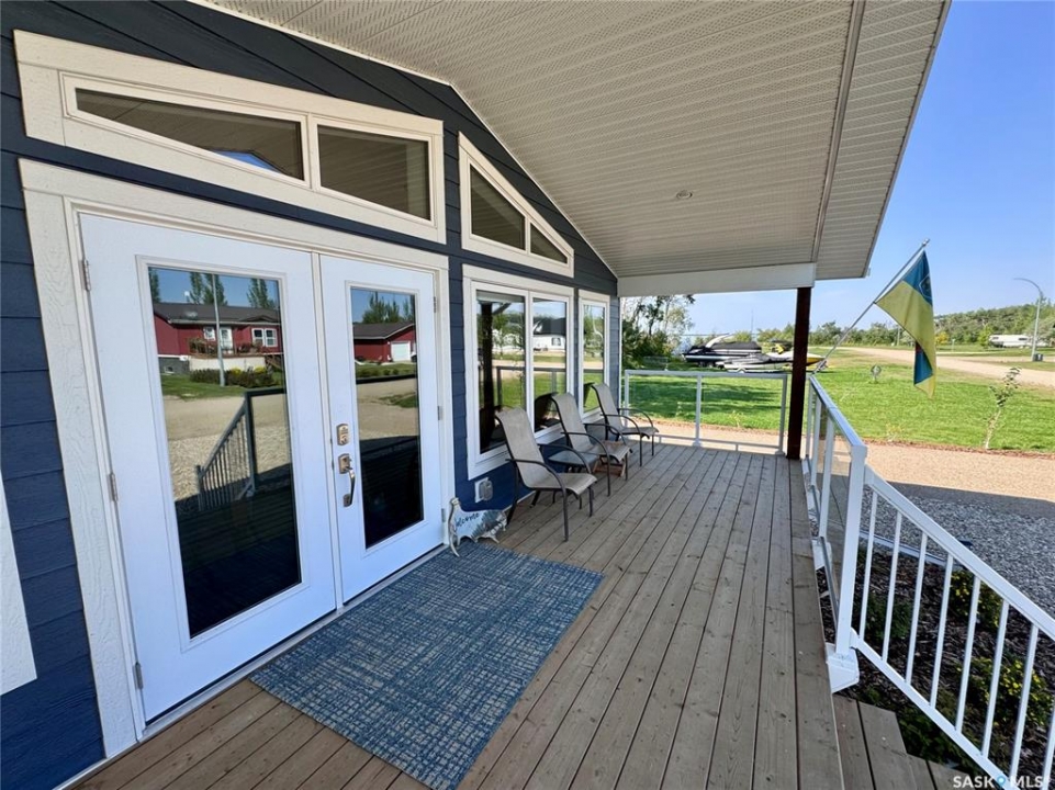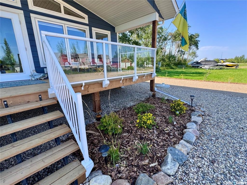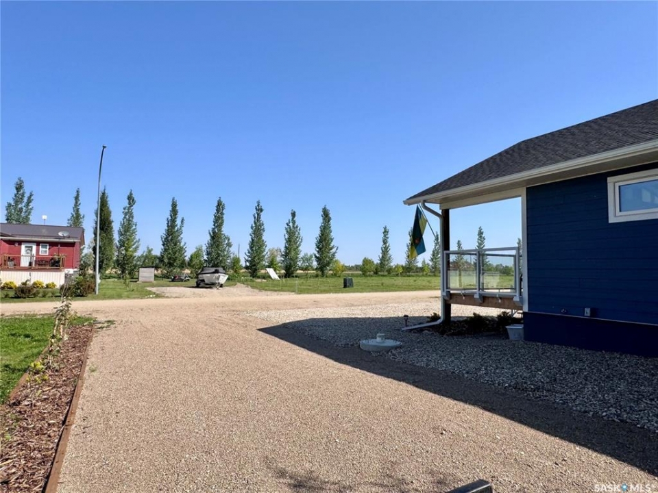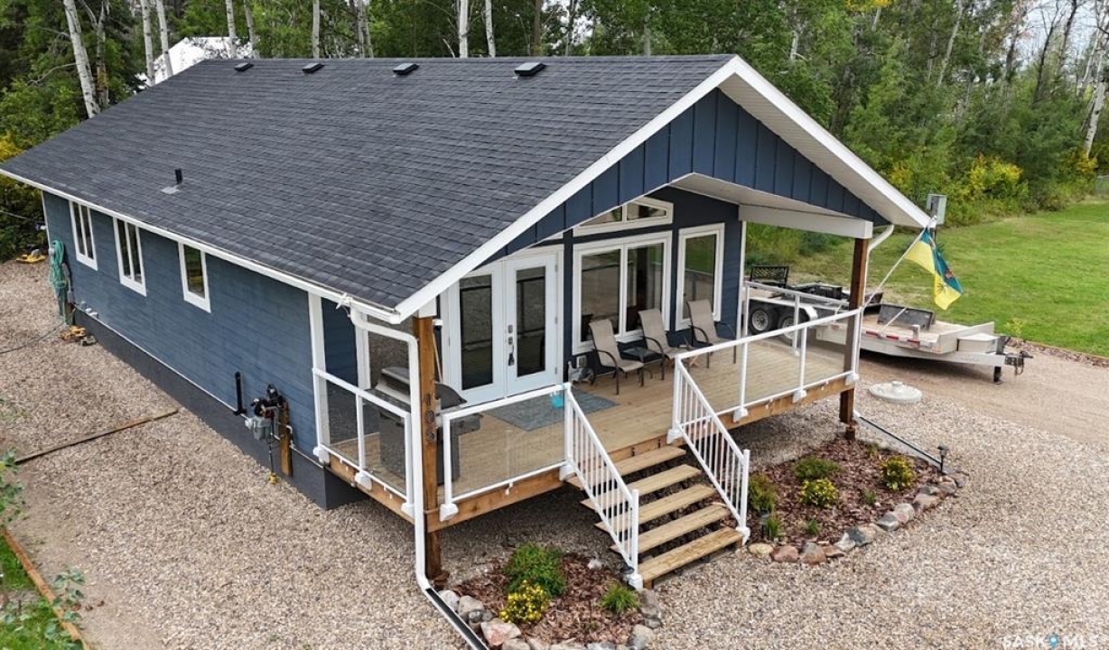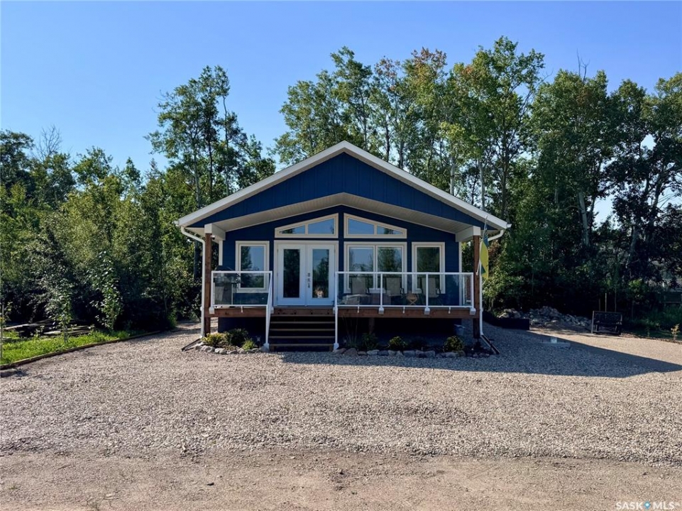 This 2025 3-bedroom RTM is located near Buckhorn Bay on Fishing Lake, SK. This 1092 square foot home features a bright and light modern interior design with luxury vinyl plank flooring, quartz countertops, soft-close cabinet doors and drawers, and other high-end finishes. Off the front is a covered deck—perfect for storm-watching and wildlife viewing—that provides excellent shade on the north side during hot summer days and leads to an open-concept dining, living, and kitchen area. Down the hall you'll find a laundry closet with stackable laundry, a full bathroom, and three bedrooms, including an ensuite off the primary bedroom. The home includes central air conditioning, a WiFi-enabled thermostat, window coverings (blinds) included, natural gas BBQ hookups at front and back, and comes move-in ready to enjoy. The back features a well-treed area with a public space buffer between the property and the lot behind, plus a firepit area. The lot is low-maintenance with crushed rock/gravel surfacing and finished landscaping including flower beds, perennials, trees, and shrubs. This property is in one of the newer developments in the area, with vacant lots and fairly new builds nearby. Larger lots than older developments offer more space for lake life. The home includes good-quality appliances (including dishwasher) and has hookups set up for an RV (power and water), with septic conveniently close—plus room to park a camper/RV next to the home. There's also room to expand and add a garage if needed. Property is in RM of SASMAN land NOT North Shore Fishing Lake effecting bylaws. Additional features include upgraded leaf guards over the gutters and an ICF crawlspace foundation for durability. Fishing Lake offers excellent fishing, watersports, golf, snowmobiling, ice-fishing, skating, and more. North Shore has a recently upgraded (since 2020) recreational area with a new ball diamond, beach volleyball, picnic area with stage, pickleball court, and basketball court.