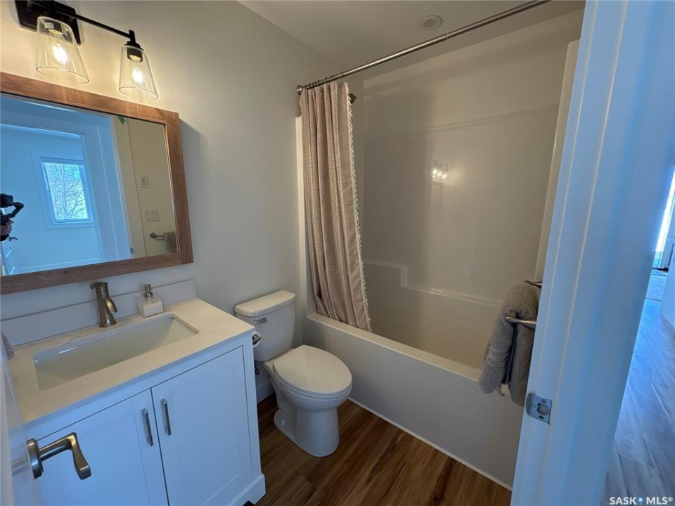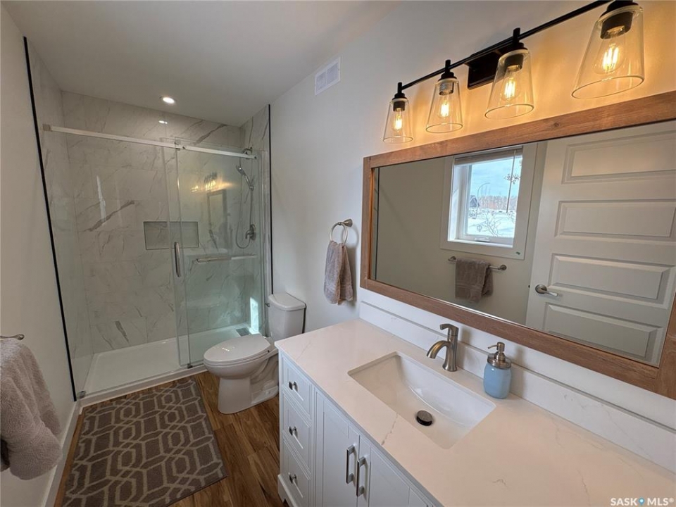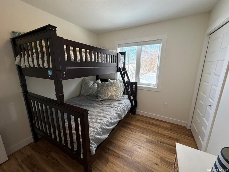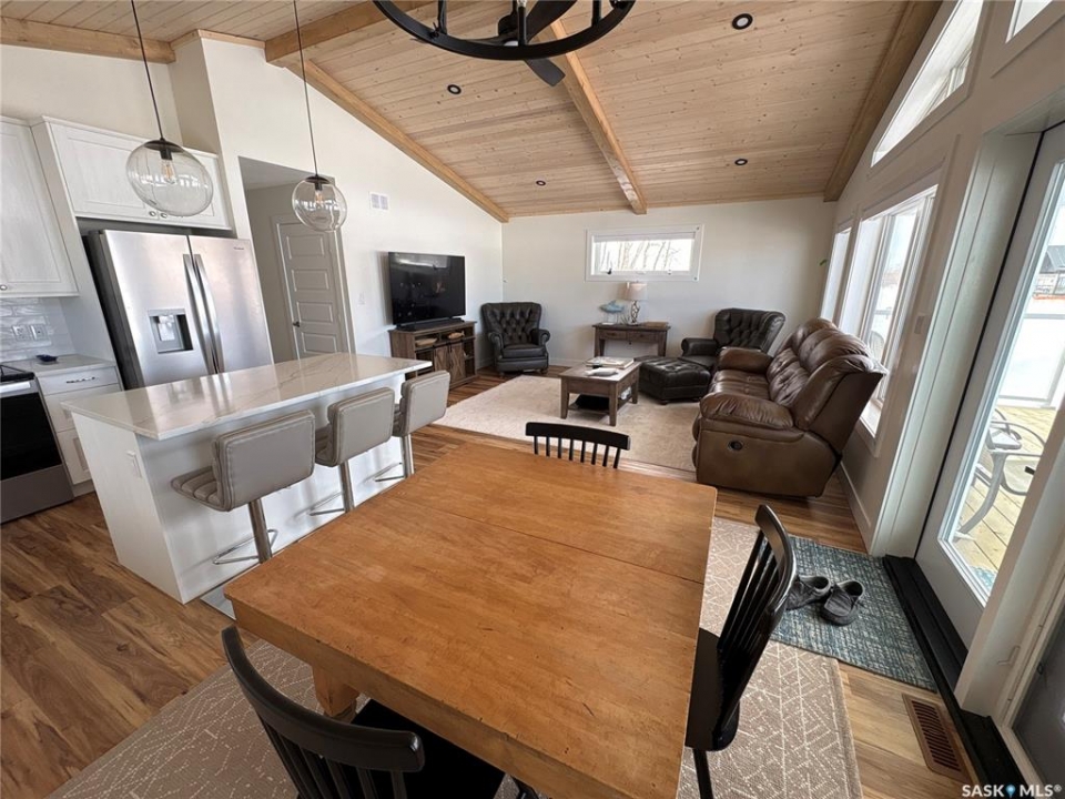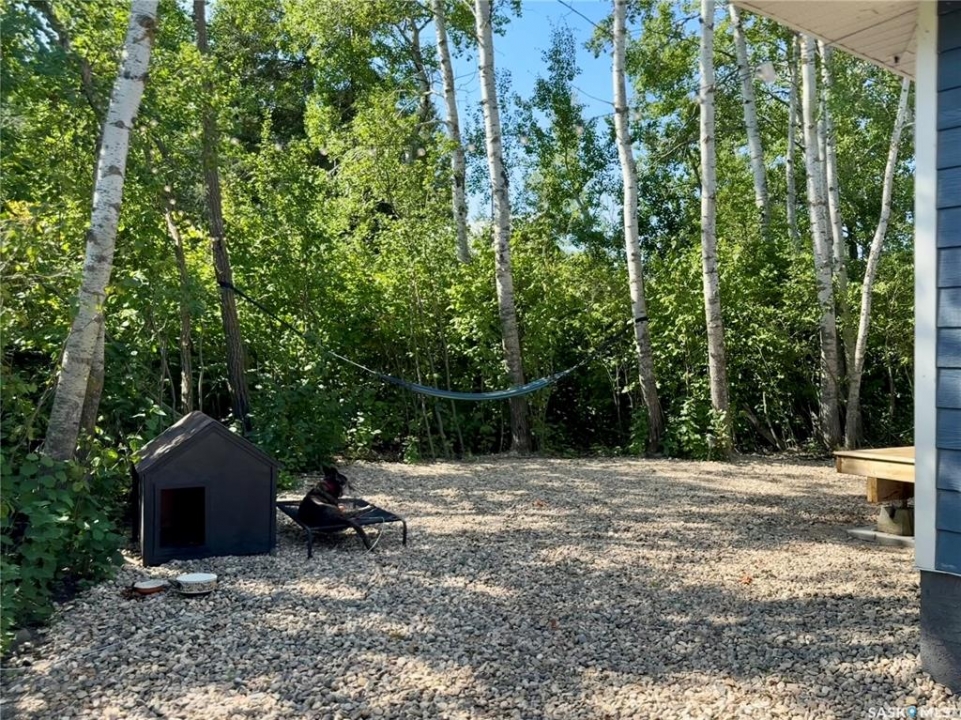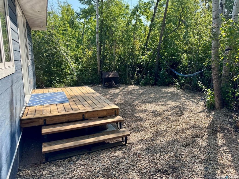 This 2025 3-bedroom RTM is located near Buckhorn Bay on Fishing Lake, SK. This 1092 square foot home features a bright and light modern interior design with luxury vinyl plank flooring, quartz countertops, soft-close cabinet doors and drawers, and other high-end finishes. Off the front is a covered deck—perfect for storm-watching and wildlife viewing—that provides excellent shade on the north side during hot summer days and leads to an open-concept dining, living, and kitchen area. Down the hall you'll find a laundry closet with stackable laundry, a full bathroom, and three bedrooms, including an ensuite off the primary bedroom. The home includes central air conditioning, a WiFi-enabled thermostat, window coverings (blinds) included, natural gas BBQ hookups at front and back, and comes move-in ready to enjoy. The back features a well-treed area with a public space buffer between the property and the lot behind, plus a firepit area. The lot is low-maintenance with crushed rock/gravel surfacing and finished landscaping including flower beds, perennials, trees, and shrubs. This property is in one of the newer developments in the area, with vacant lots and fairly new builds nearby. Larger lots than older developments offer more space for lake life. The home includes good-quality appliances (including dishwasher) and has hookups set up for an RV (power and water), with septic conveniently close—plus room to park a camper/RV next to the home. There's also room to expand and add a garage if needed. Property is in RM of SASMAN land NOT North Shore Fishing Lake effecting bylaws. Additional features include upgraded leaf guards over the gutters and an ICF crawlspace foundation for durability. Fishing Lake offers excellent fishing, watersports, golf, snowmobiling, ice-fishing, skating, and more. North Shore has a recently upgraded (since 2020) recreational area with a new ball diamond, beach volleyball, picnic area with stage, pickleball court, and basketball court.