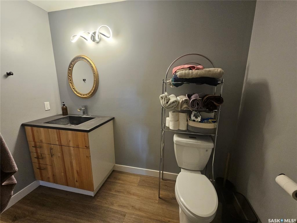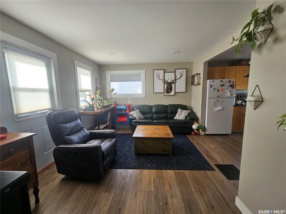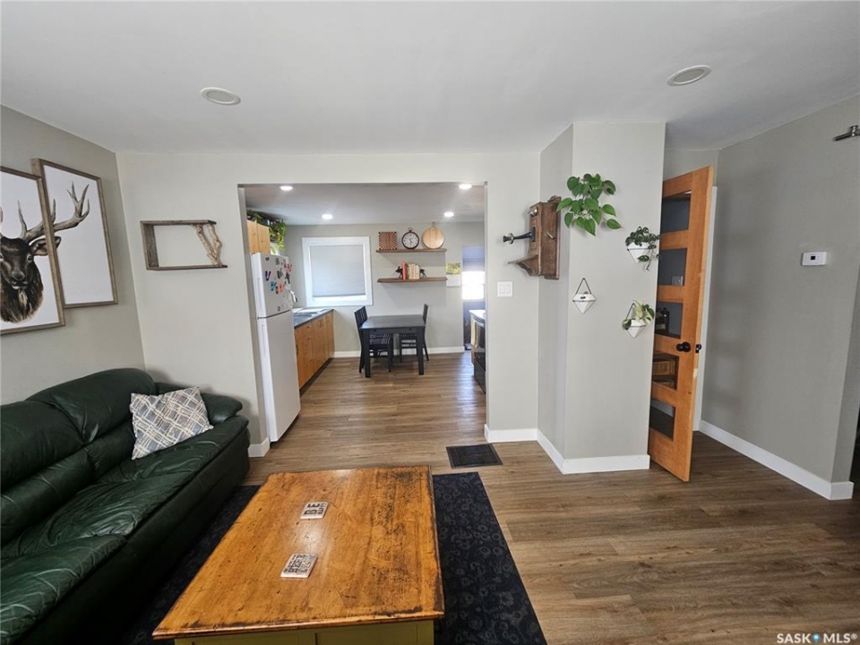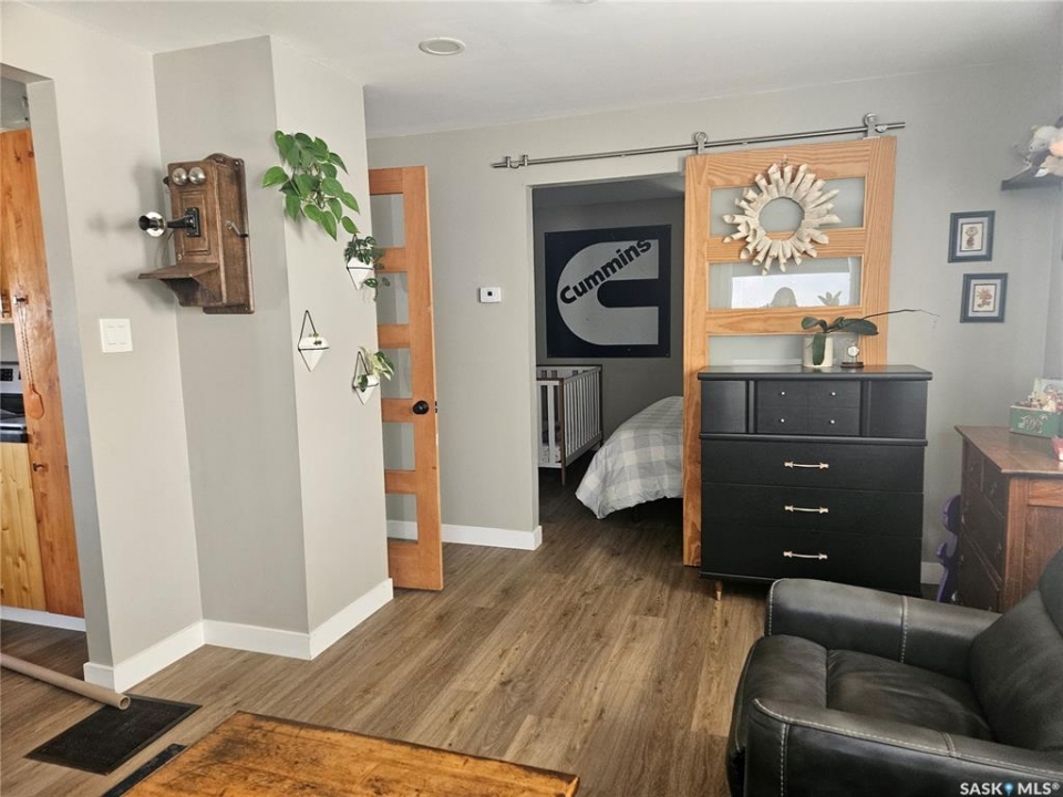Step into this beautifully updated home where character takes center stage. The open concept kitchen and dining with ample cupboard and counter space flows seamlessly into the bright living room. This unique 1 bedroom layout features a spacious primary bedroom separated from the living room area by a stunning 5 -panel barnwood door with glass inserts. A beautiful accent door off living room brings you into a 4 piece bathroom completing the main floor. The basement offers a finished bonus room suitable for an office, craft room or additional living space with a door leading to the laundry and utility area with ample storage. This home has updated plumbing and electrical , newer water heater and furnace. The property is not connected to city water or sewer services but has its own well and septic. This home is a great option for buyers seeking privacy, outdoor space and modern touches in a smaller home.