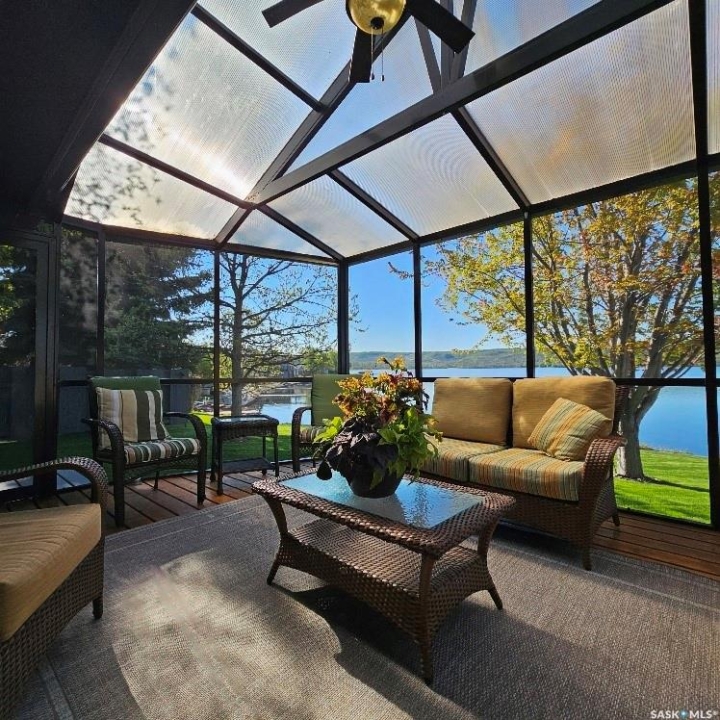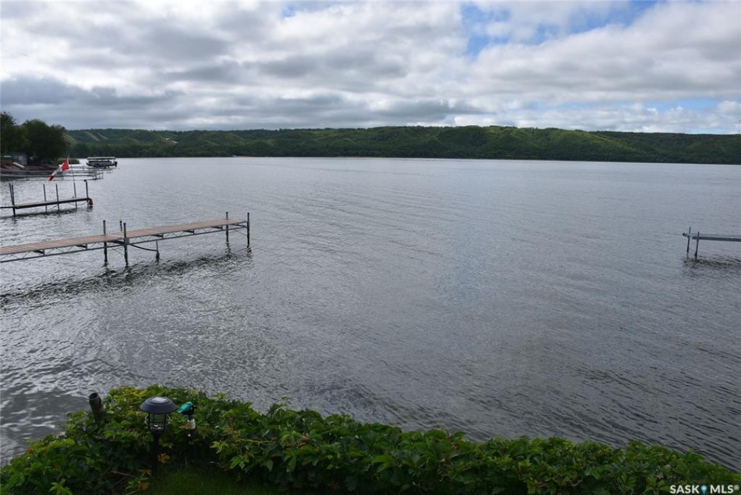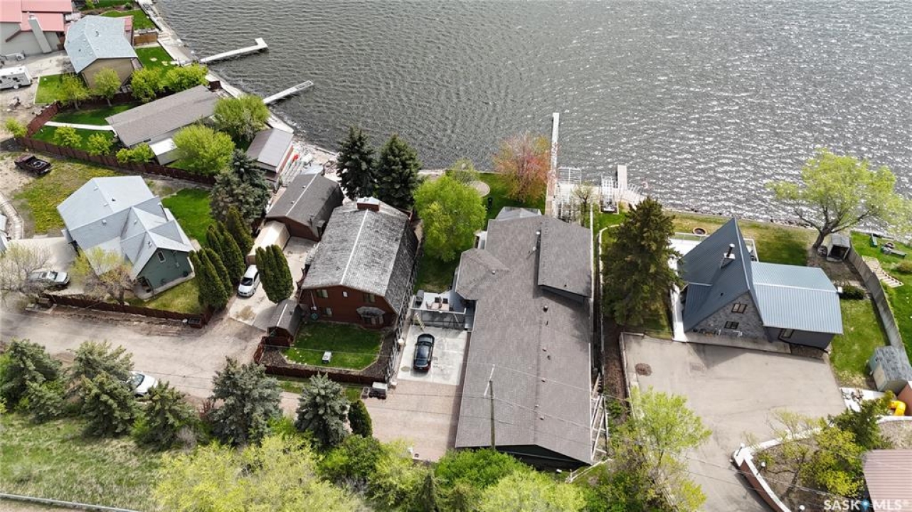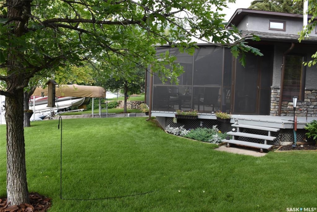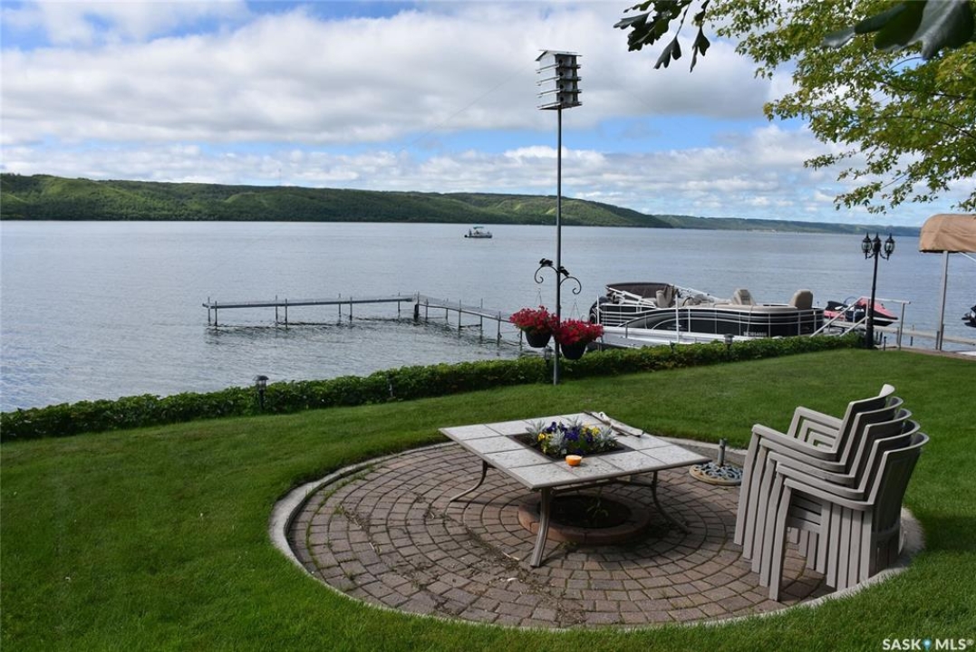 This outstanding lakefront property is located on the East end of Pasqua Lake and has been offered for sale. The property has a level private drive which leads to this stunning lake shore home. When you approach the house, you will notice the real stone and stucco siding and the large parking area. Once inside the kitchen and dining room offers an open concept with vaulted ceiling, beautiful, appointed kitchen with ample storage space. The Dining room is spacious and bright with access to the private deck. The Living room is relaxing with a gas fireplace, vaulted ceiling, hardwood flooring and access to the beautiful screened in sunroom with panoramic views of the lake and is a fantastic spot for your morning coffee or just relaxing with friends. There are four bedrooms on the main with the primary having a large walk-in closet and 3-piece ensuite. The laundry room is conveniently located on the main floor with an amazing amount all new cabinets. The large second floor office has views of the lake and ample space for a workout area or murphy bed for large groups, and the bonus room has a 3-person sauna. The attached heated, 28 x 32 garage is completely finished with PVC interior panels for a clean look, polyaspartic flooring, 10-foot ceiling, 8x10 and 8x12 garage doors, slatwall panels and storage and metal garage storage cabinets. There is a new 18-kilowatt Generac generator ,chemical free iron filter. This property is complete with pier, track, boat dolly, winch with remote, and canopy for the boat dolly. The grounds are immaculate and offer 70 feet of level shoreline with underground sprinklers, flower beds, large lake front grassed area for the kids to play and a beautiful firepit next to the shoreline. There is parking space for 6 vehicles. This is one of the closest properties to the city and is only 1 km to the new convenience store and gas bar. This is one of the premium properties in the valley and must be viewed to appreciate all the upscale amenities.